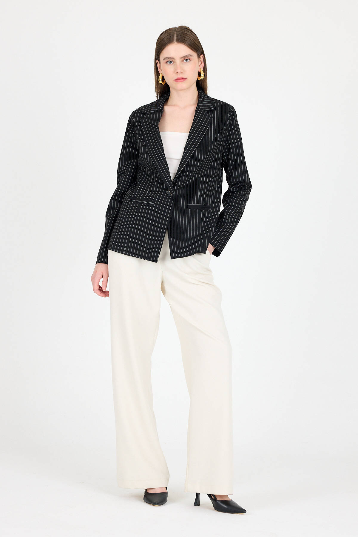 Siyah Çizgili Tek Düğmeli Blazer Ceket 4594A