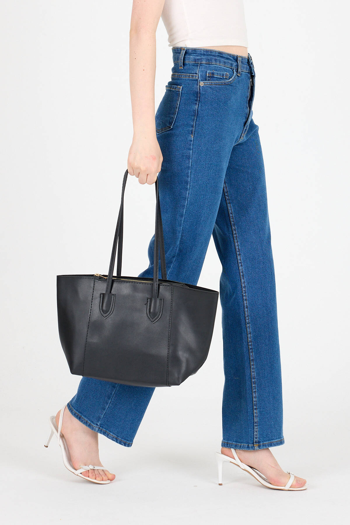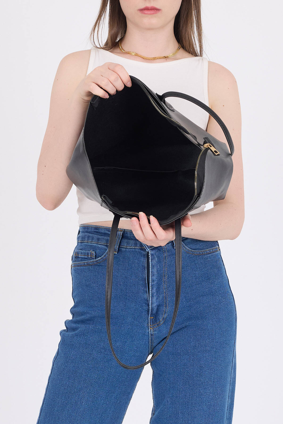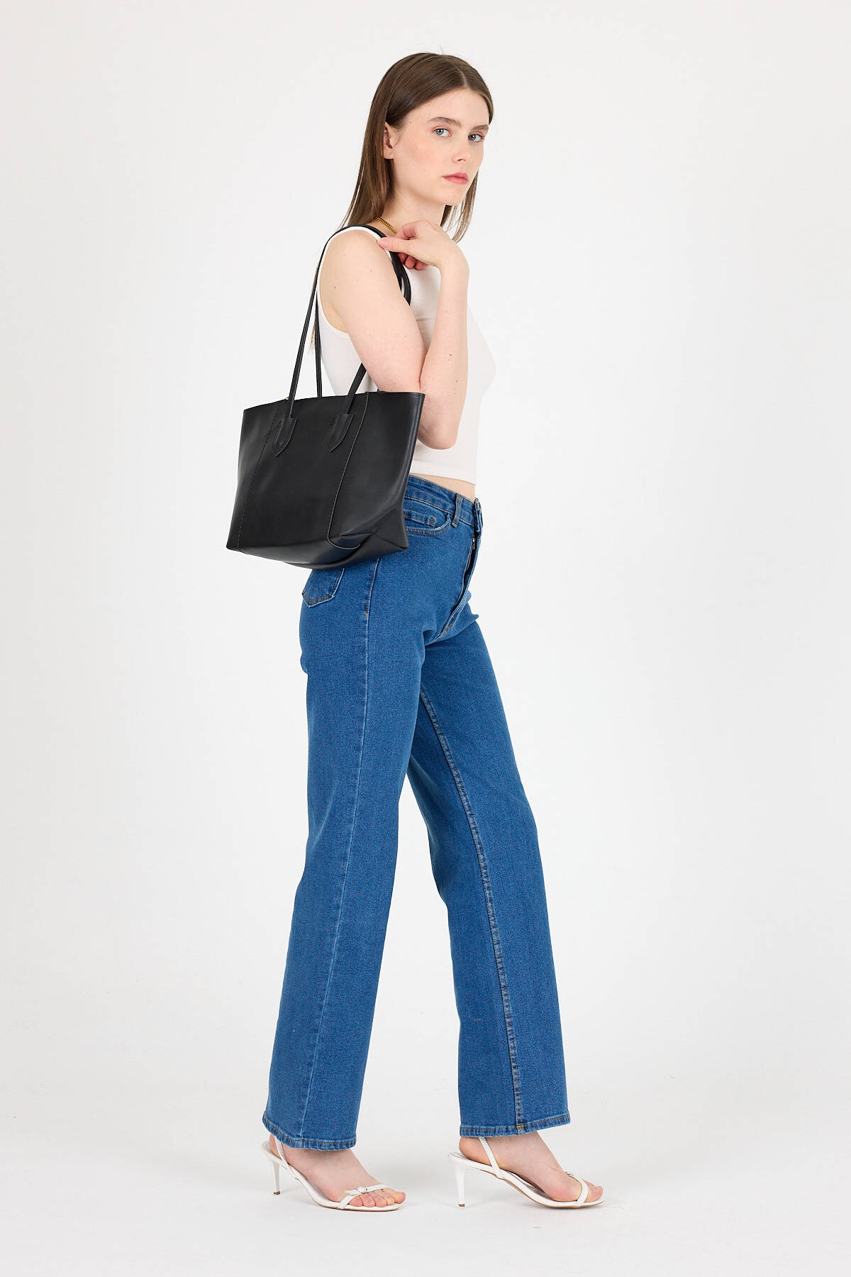 Siyah Dikiş Detaylı Omuz Çantası 9212