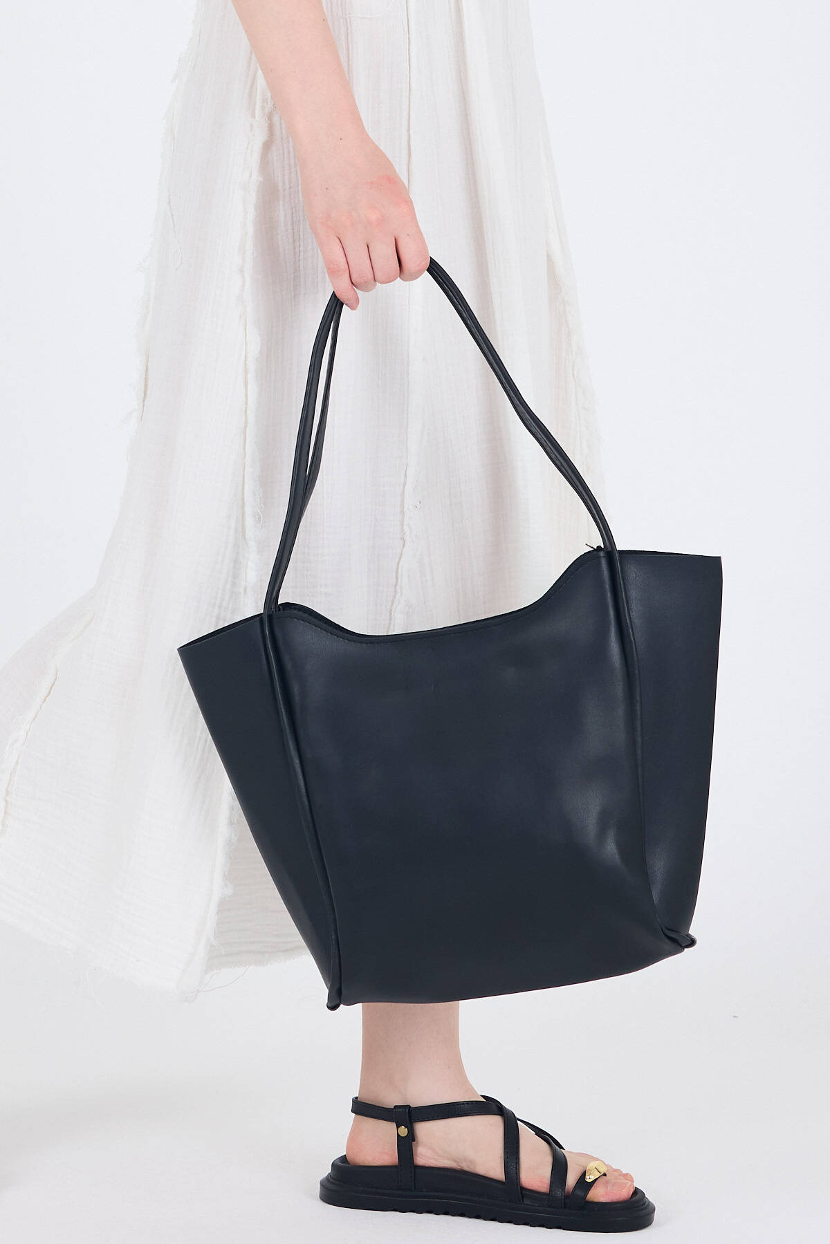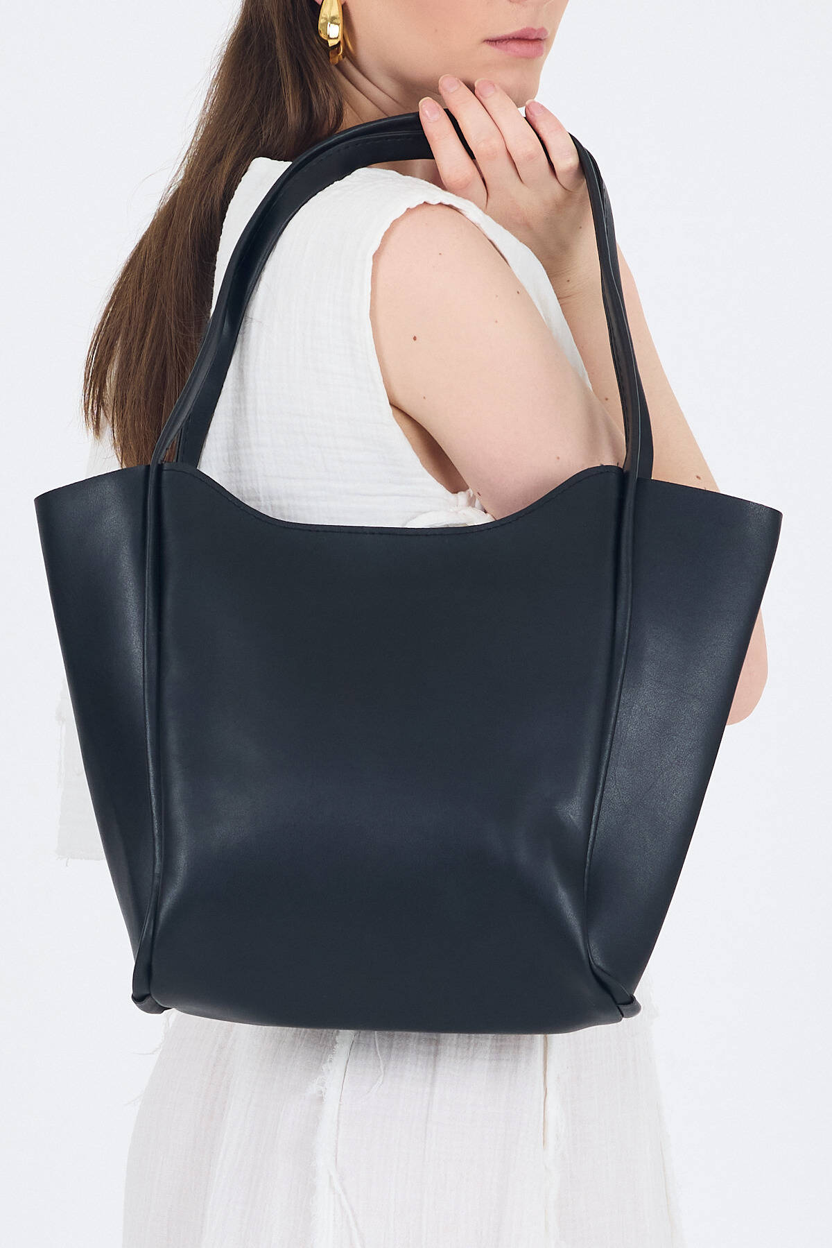 7149A Belden Bağlamalı Uzun Kaşe Kaban Siyah