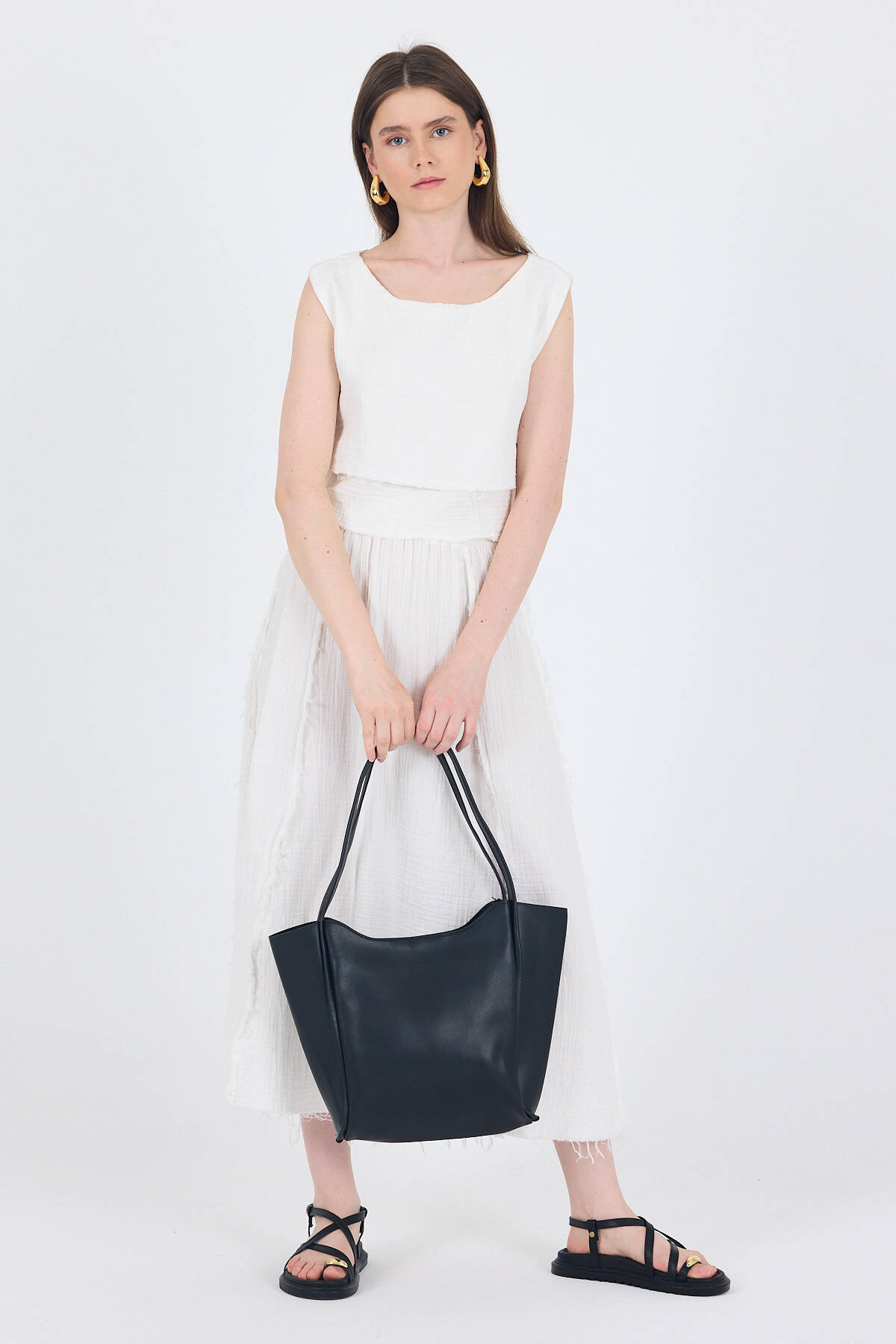 Beyaz Deri Kemer Detaylı Etnik Desenli Kimono 4363A