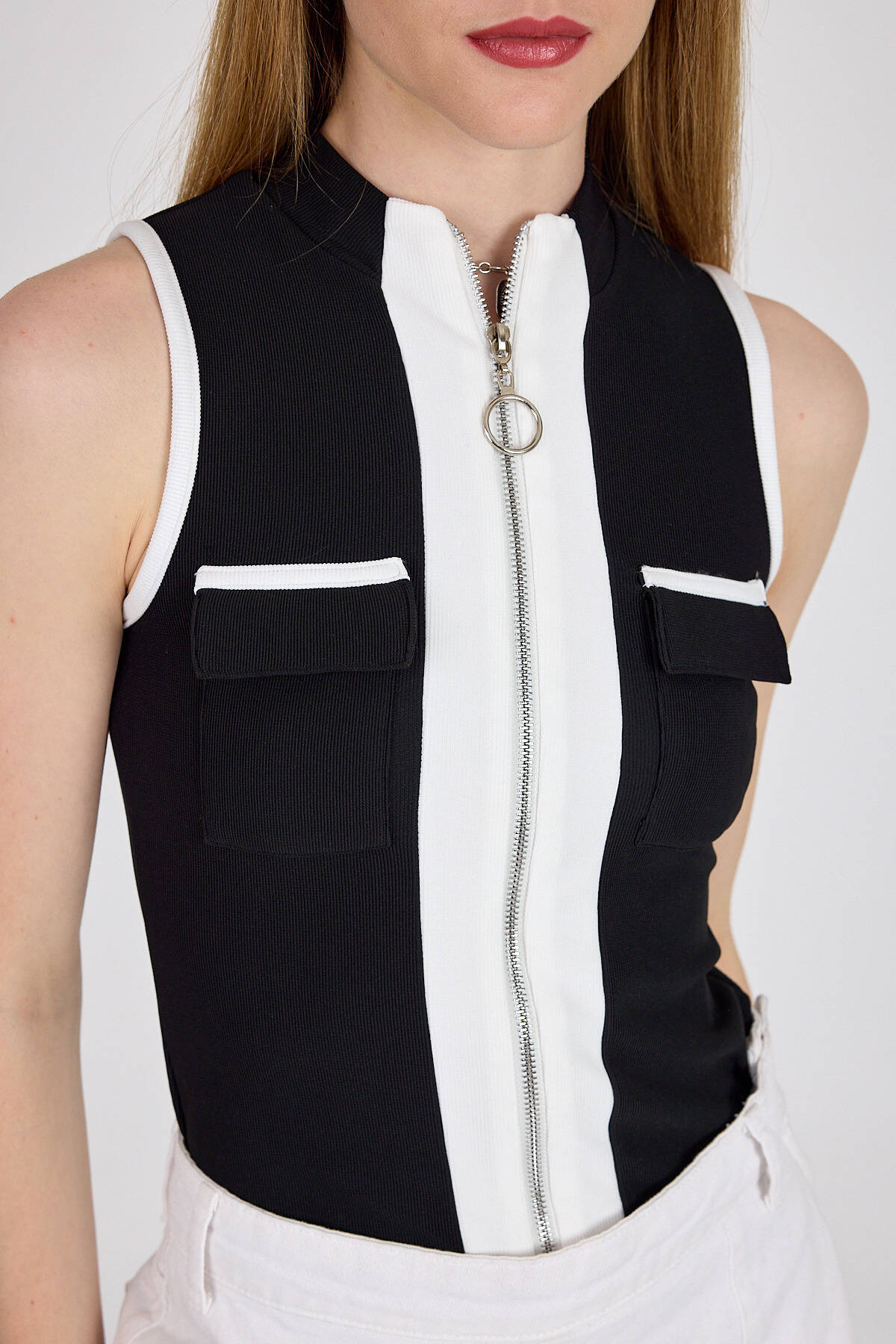 Siyah Kapüşonlu Cepli Fermuarlı Kap 4572A