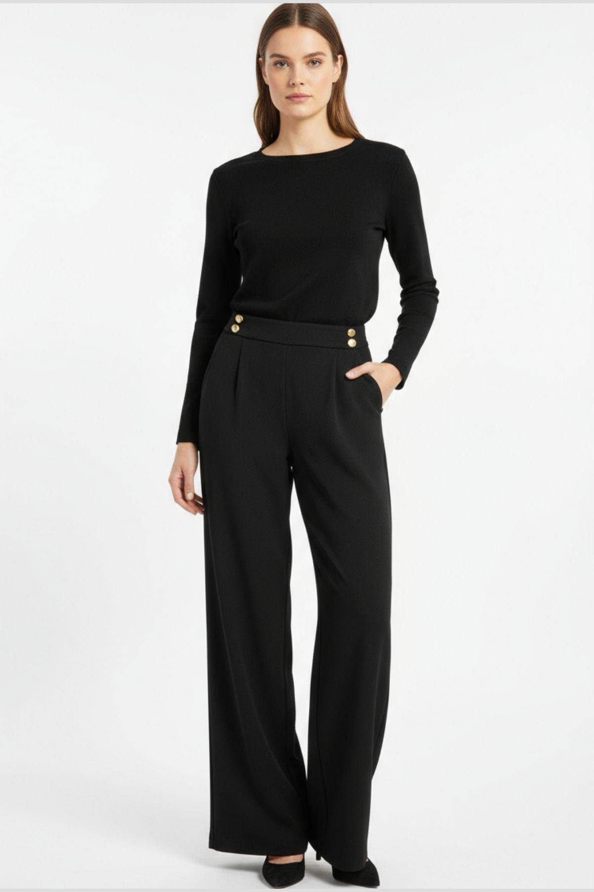 Siyah Gold Düğme Detaylı Bol Paça Kadın Pantolon 8111A