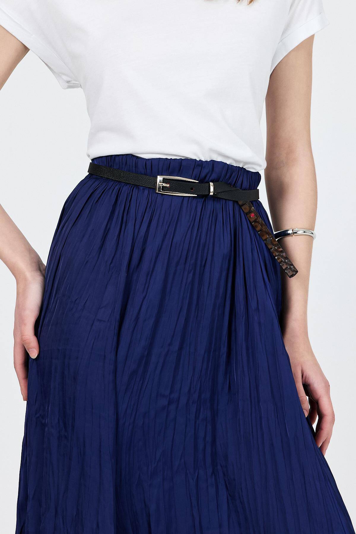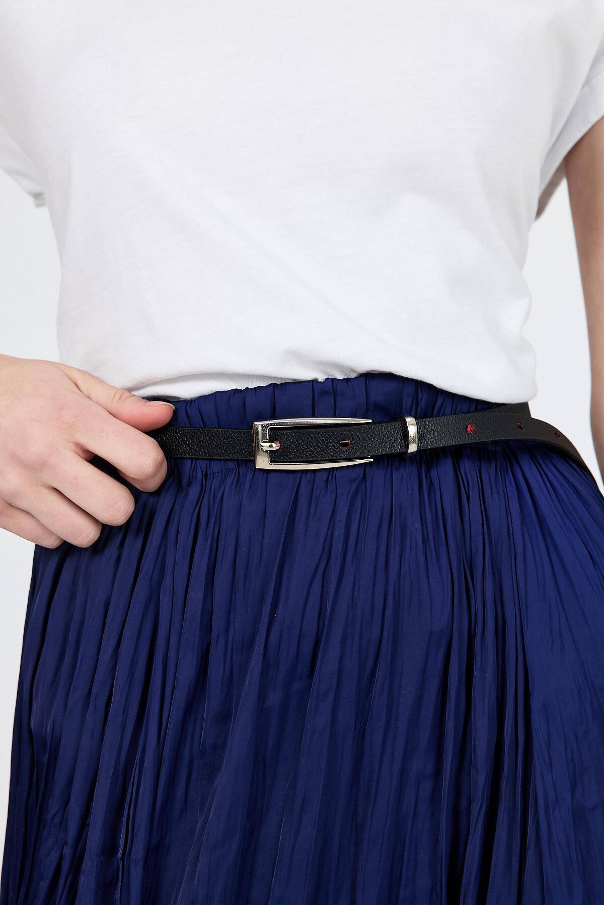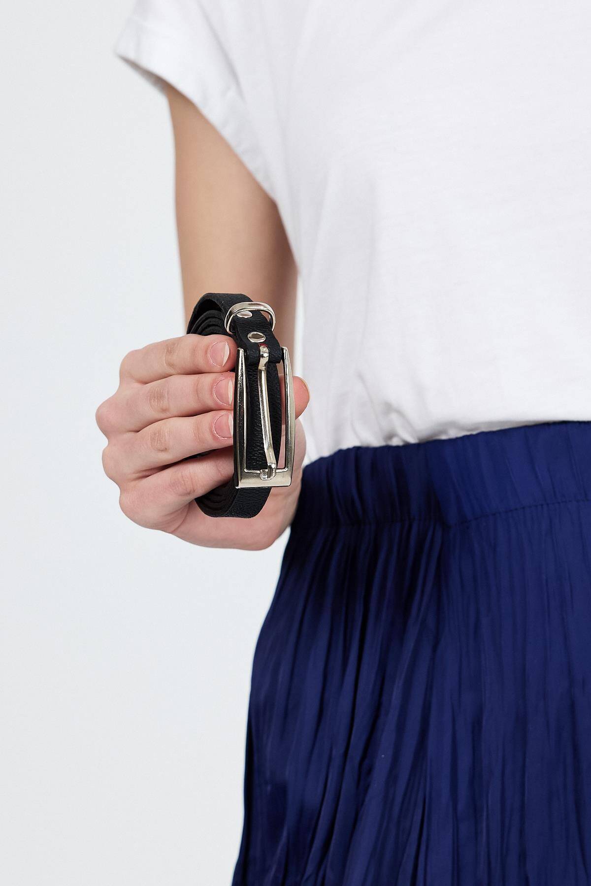 Siyah İnce Gümüş Toka Detaylı Kemer 413