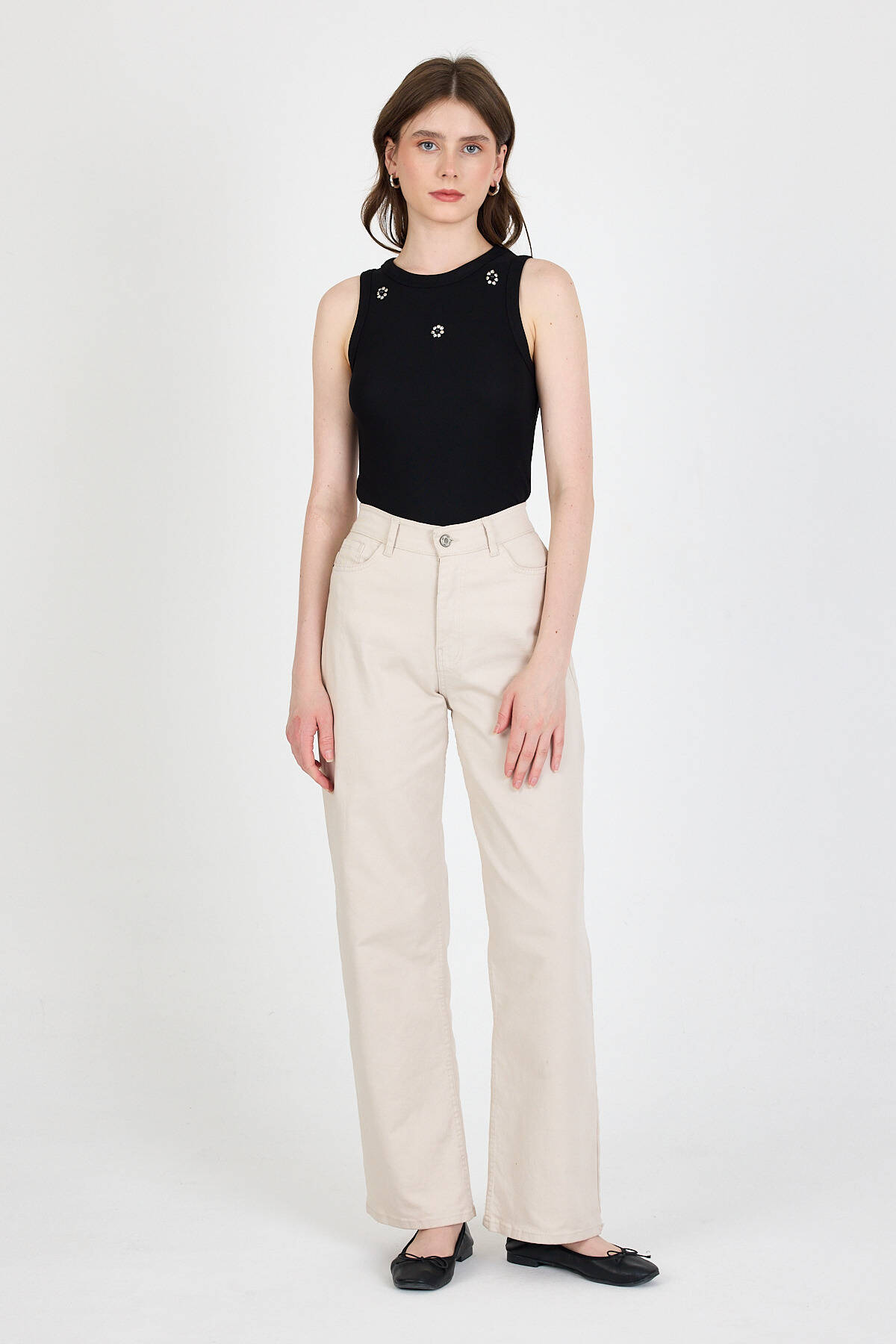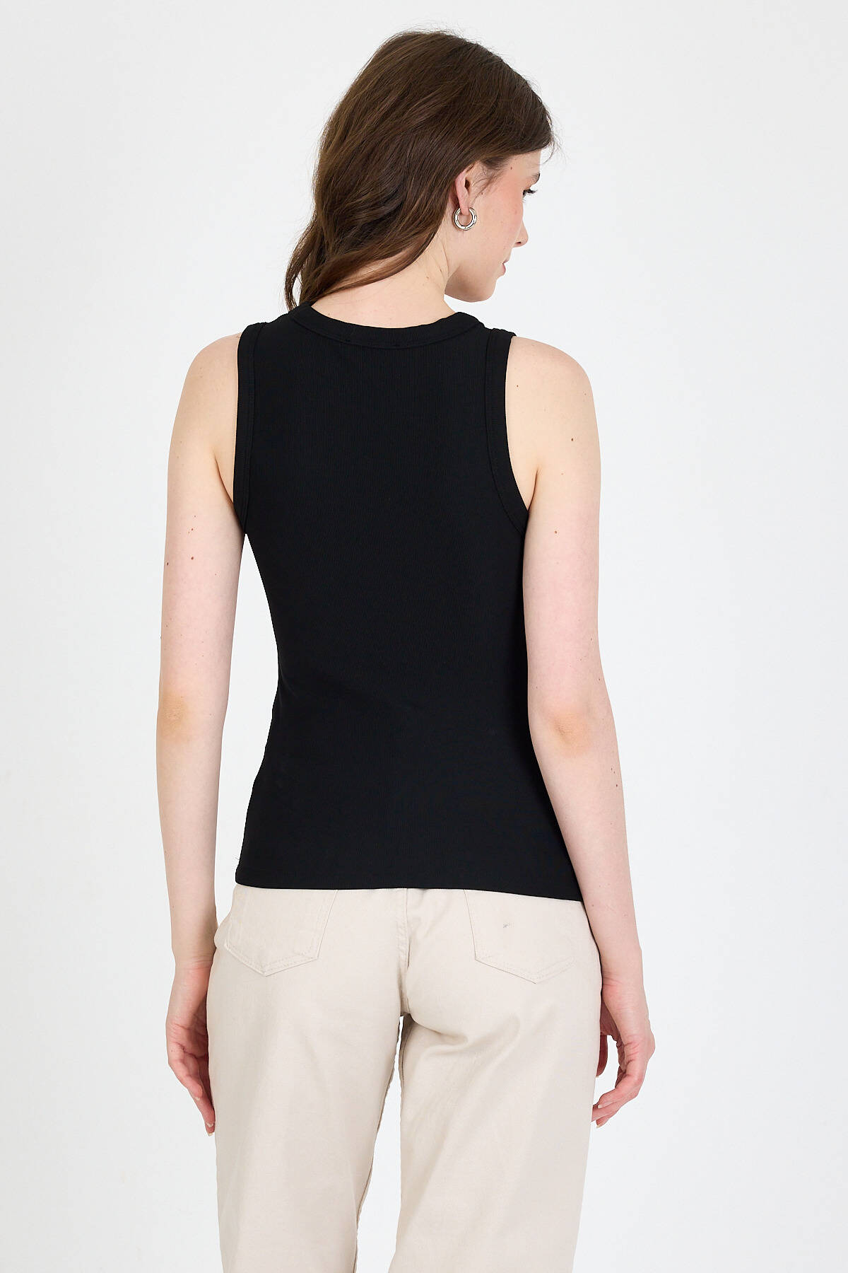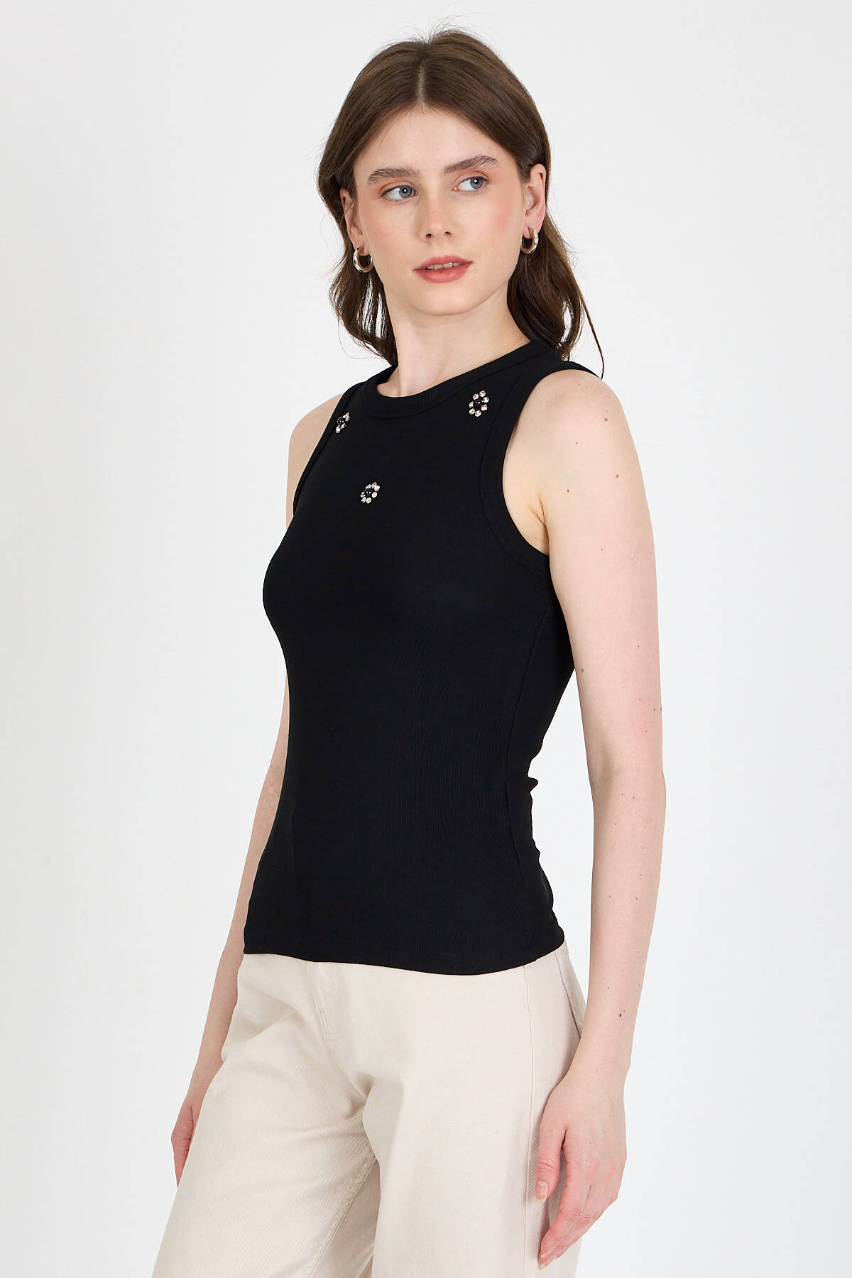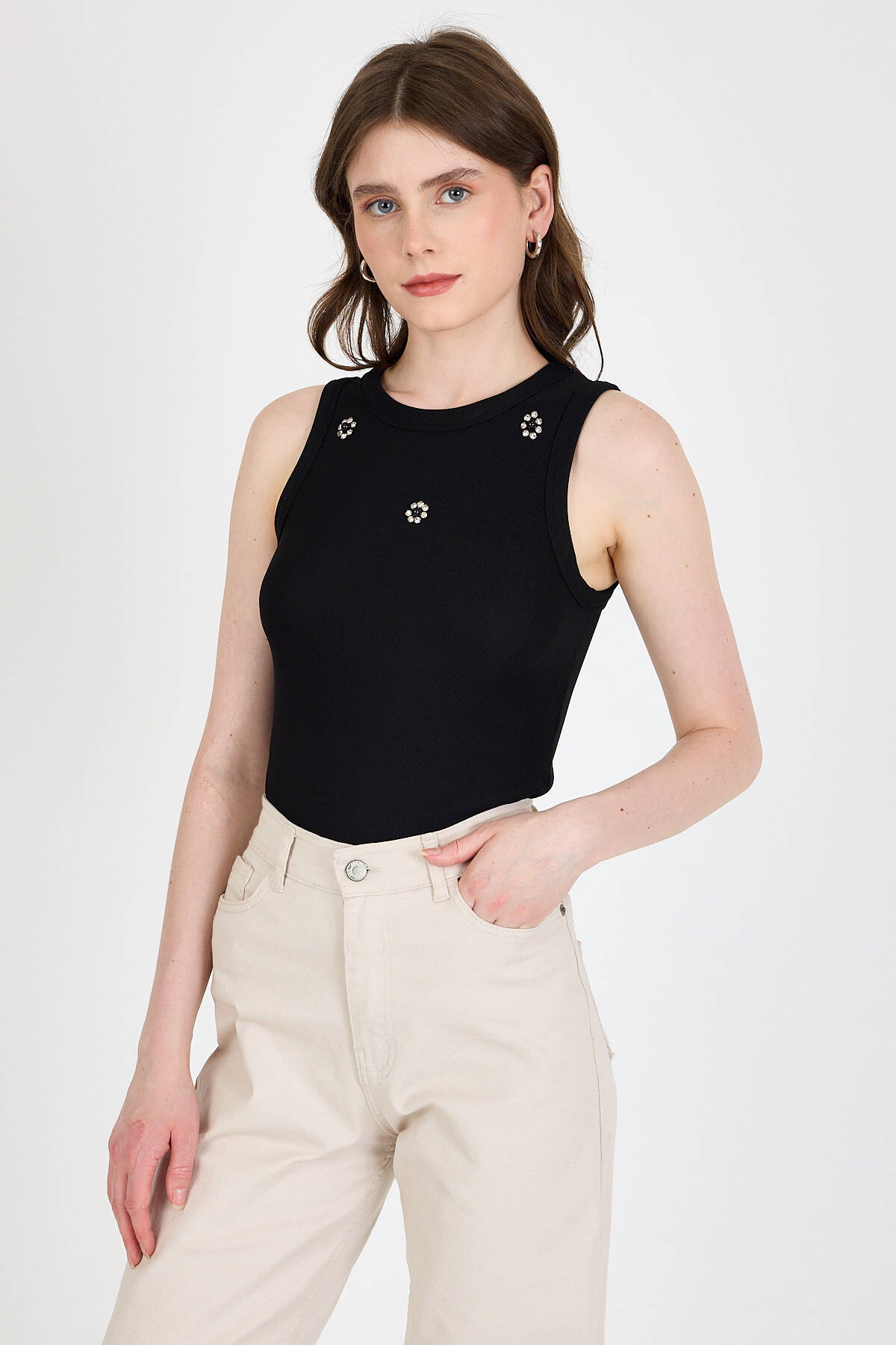 Siyah İnci Taş Detaylı Halter Yaka Ribanalı Atlet 0649