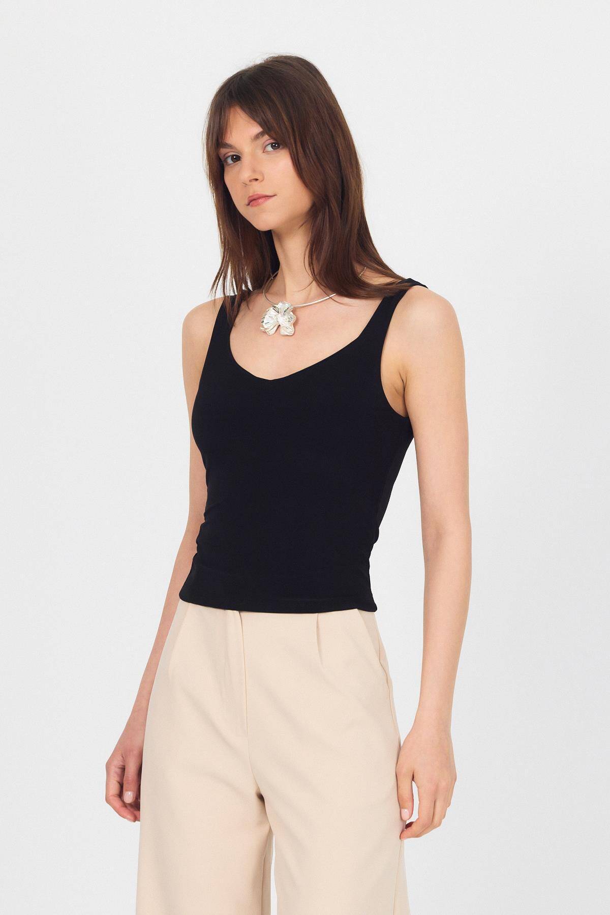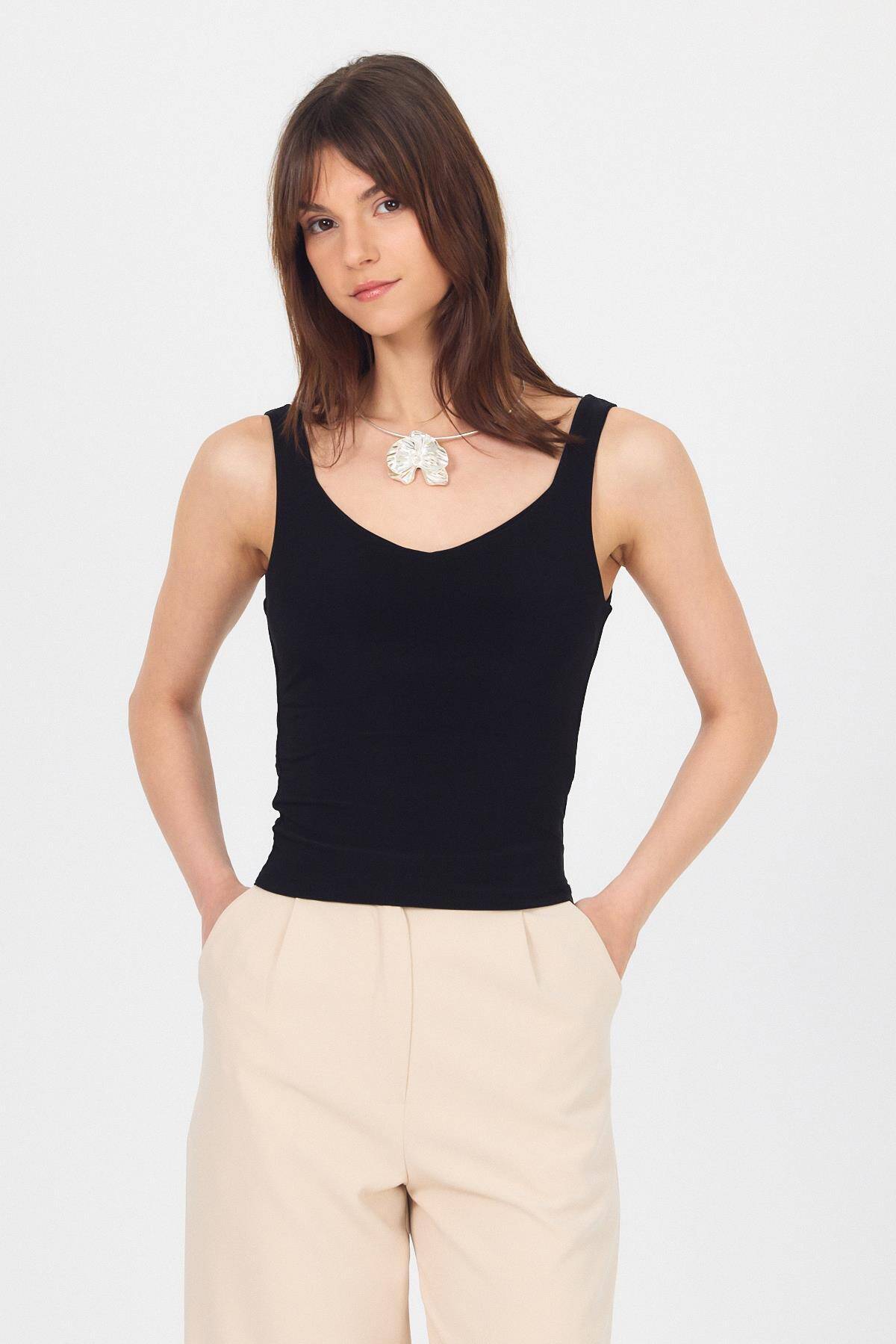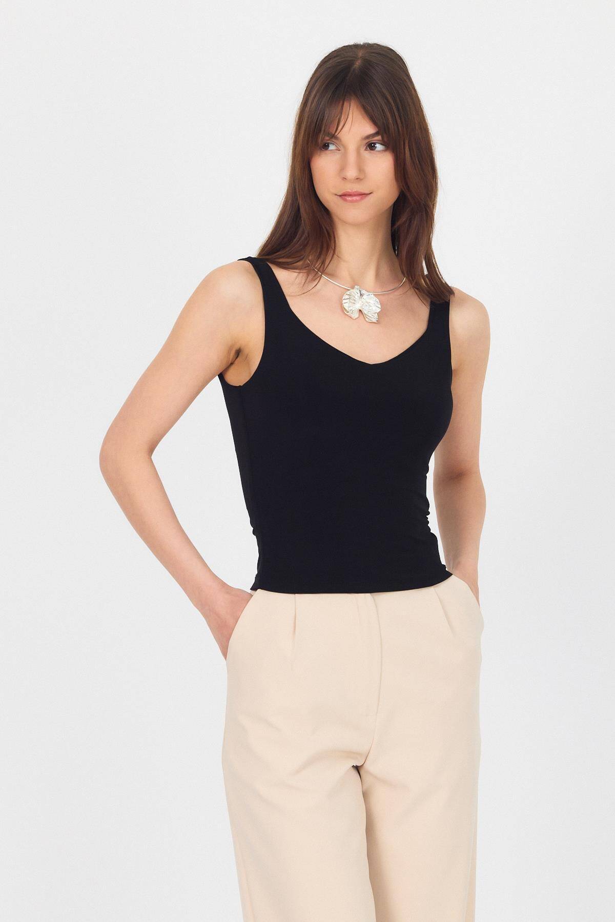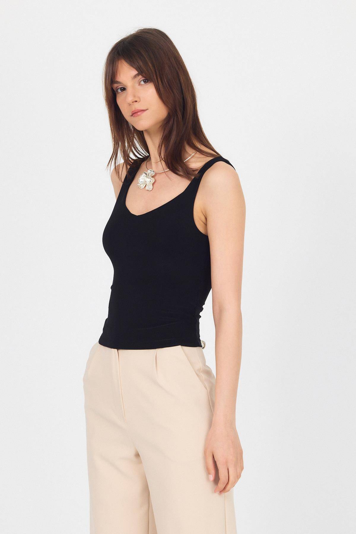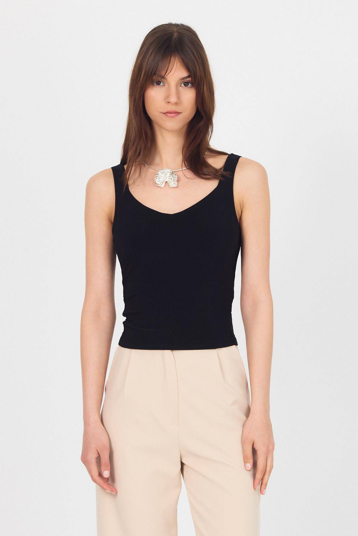 Siyah Kalın Askılı V Yaka Bluz 13293