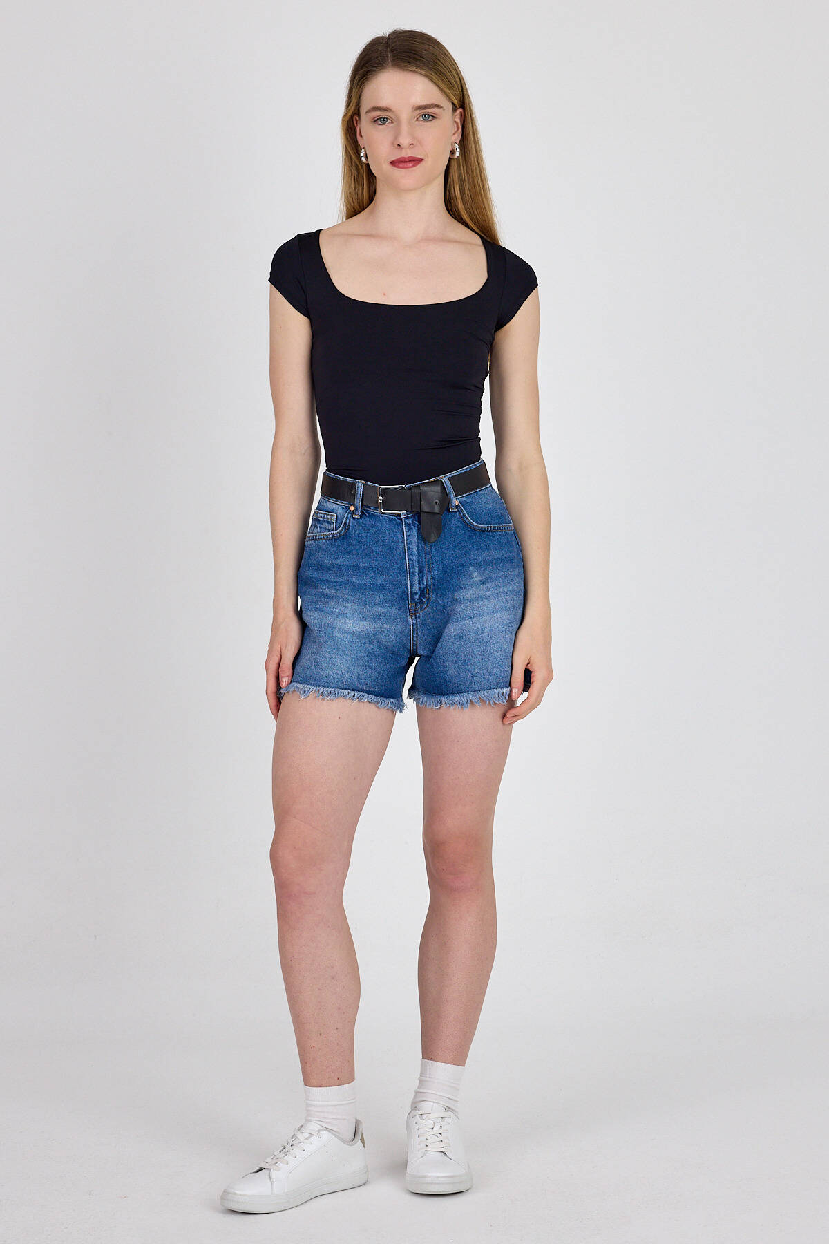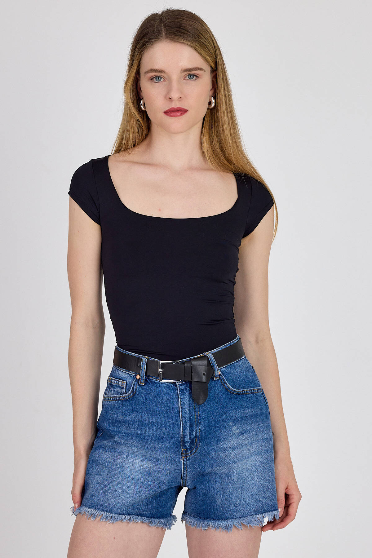 Siyah Kare Yaka Kısa Kol Body 3116