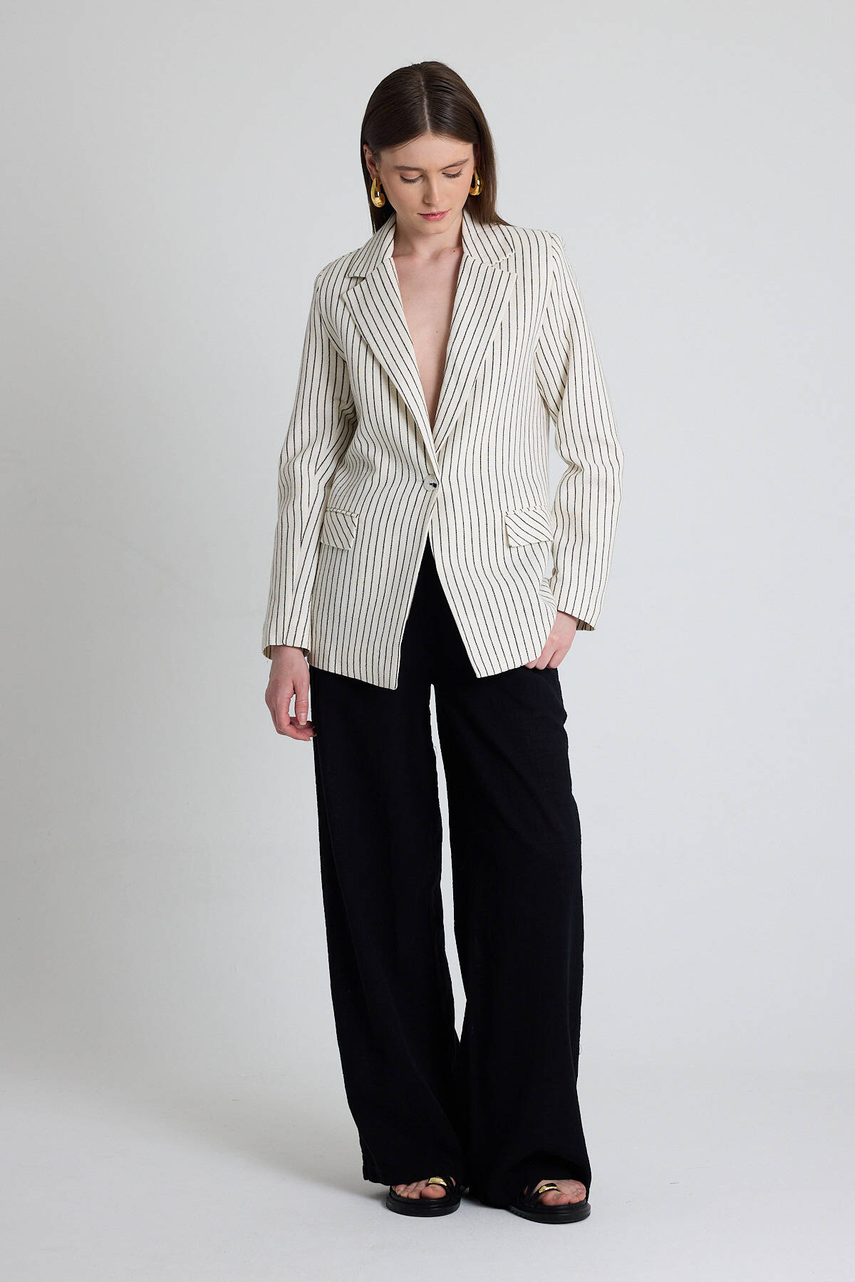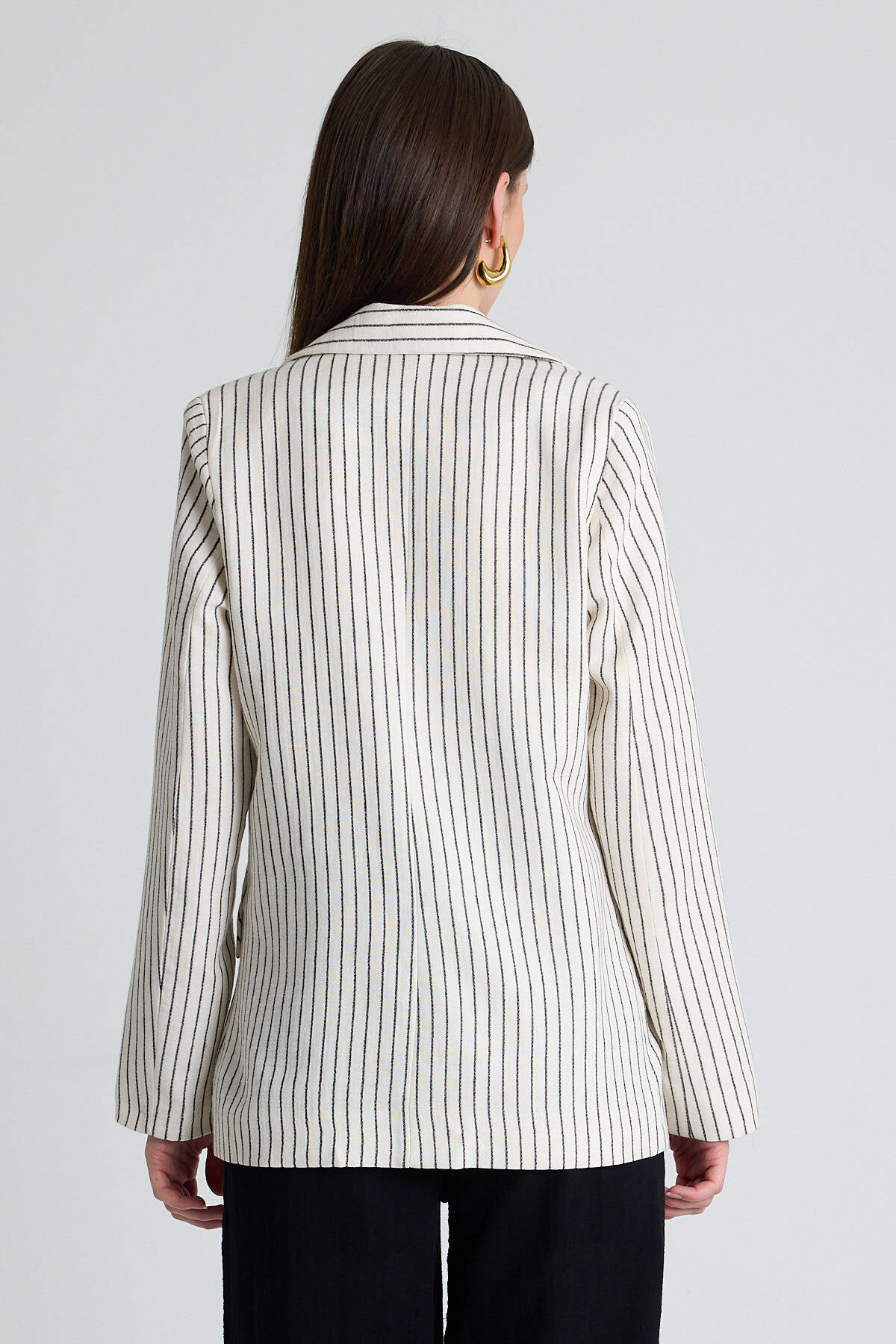 Siyah Keten Görünümlü %100 Pamuk Çizgili Blazer Ceket 2305