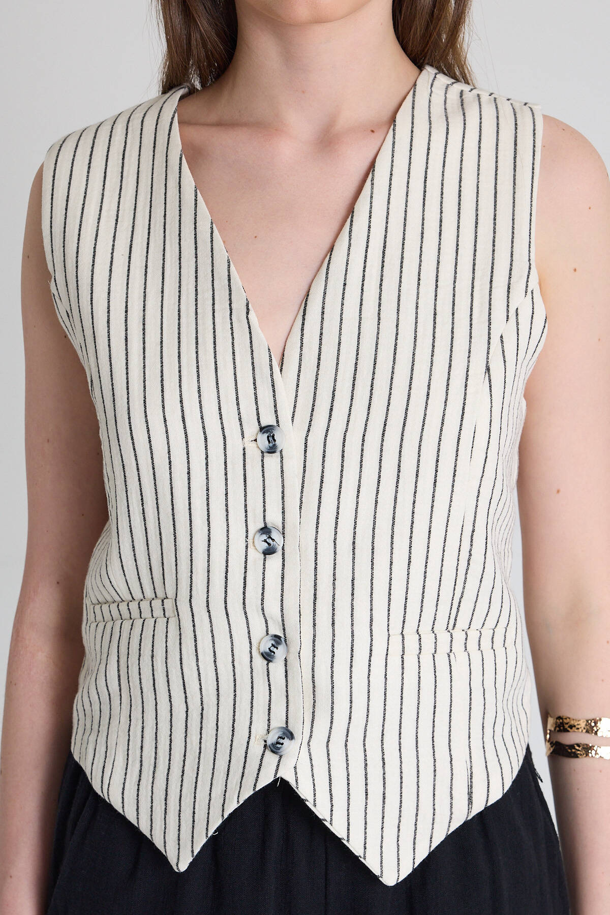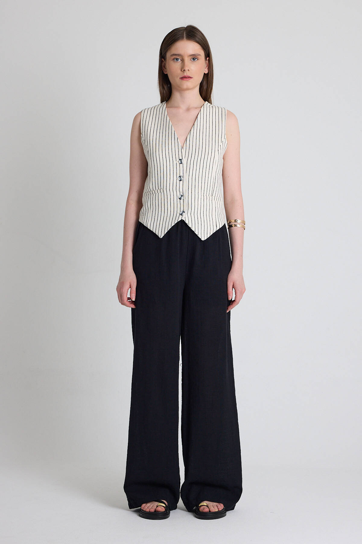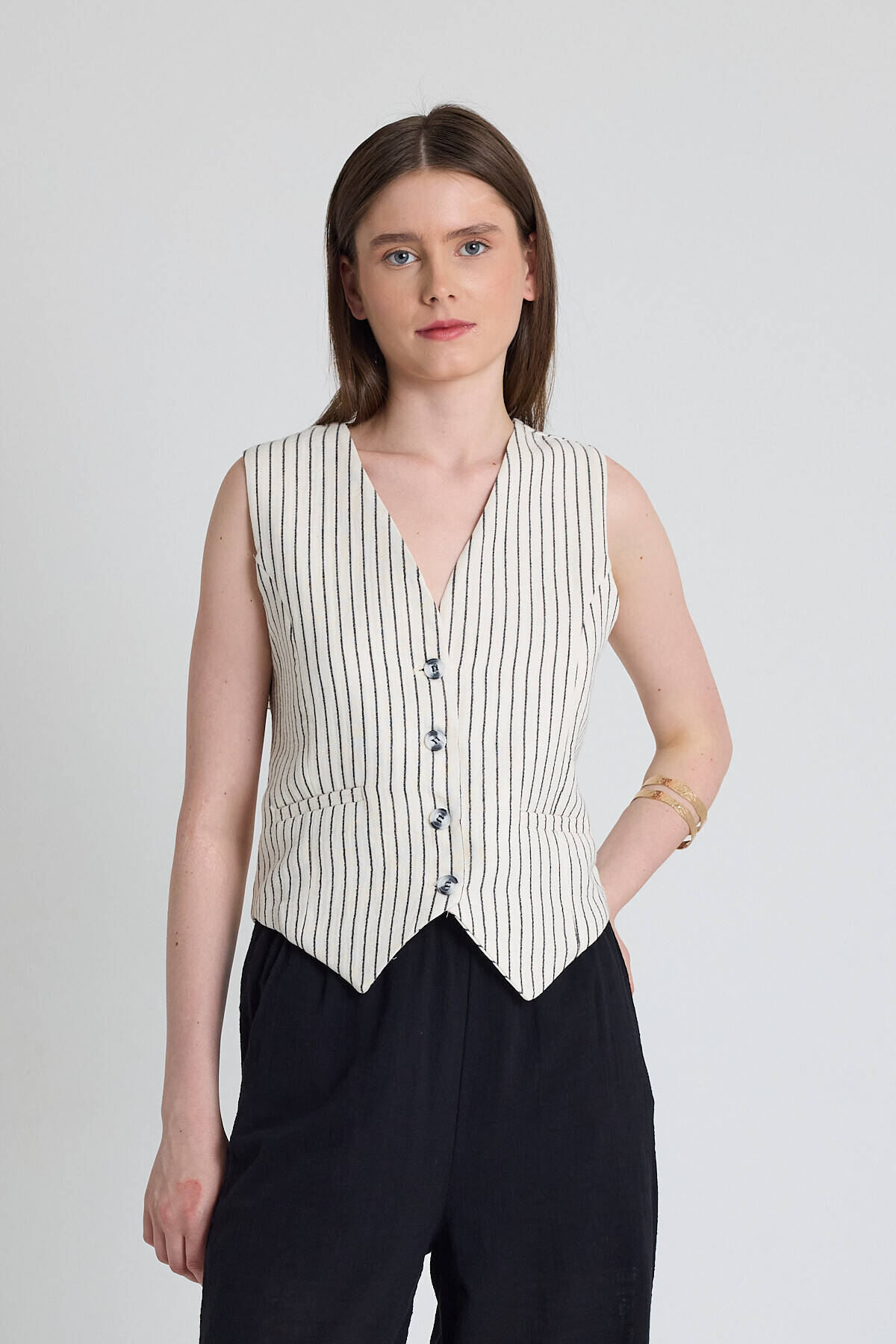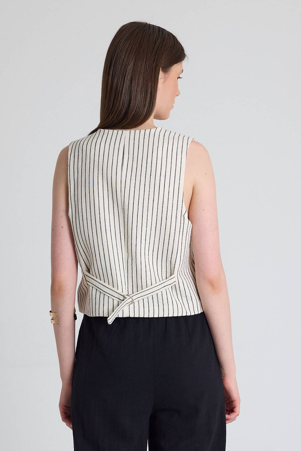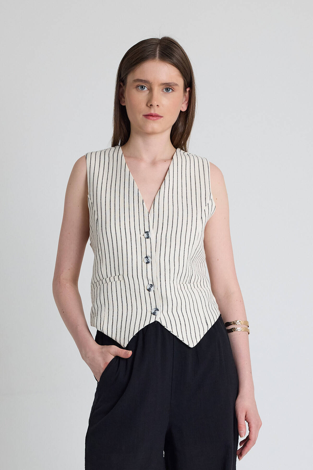 Siyah Keten Görünümlü %100 Pamuk Çizgili Yelek 2323
