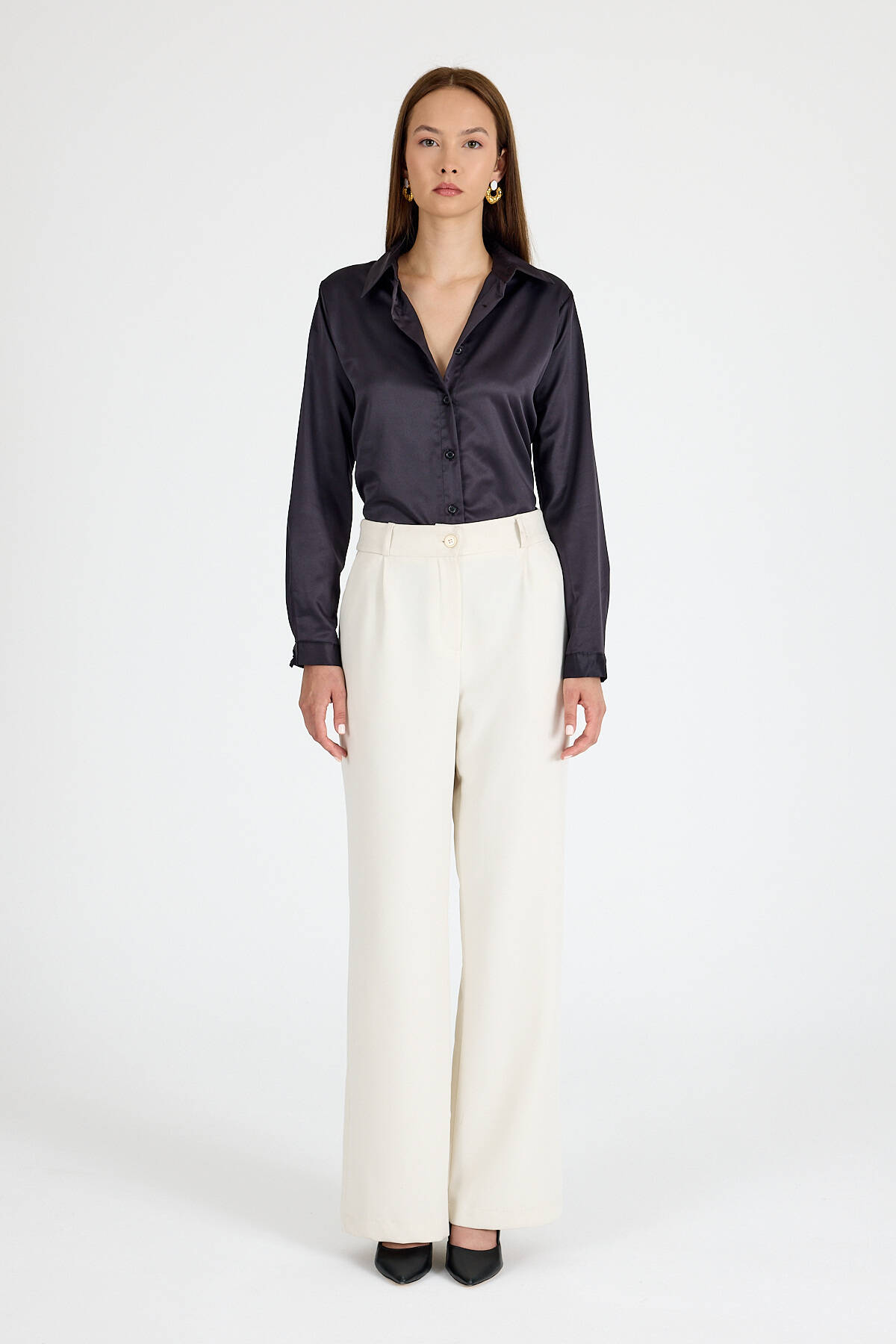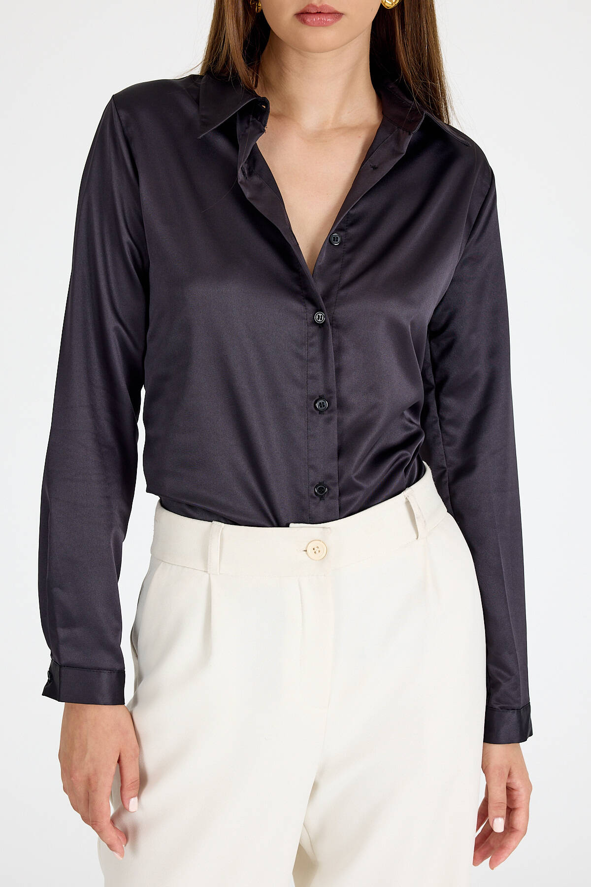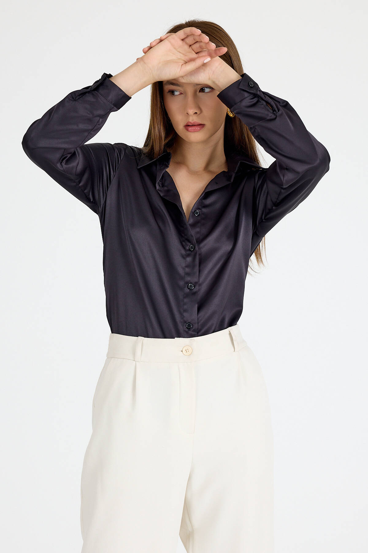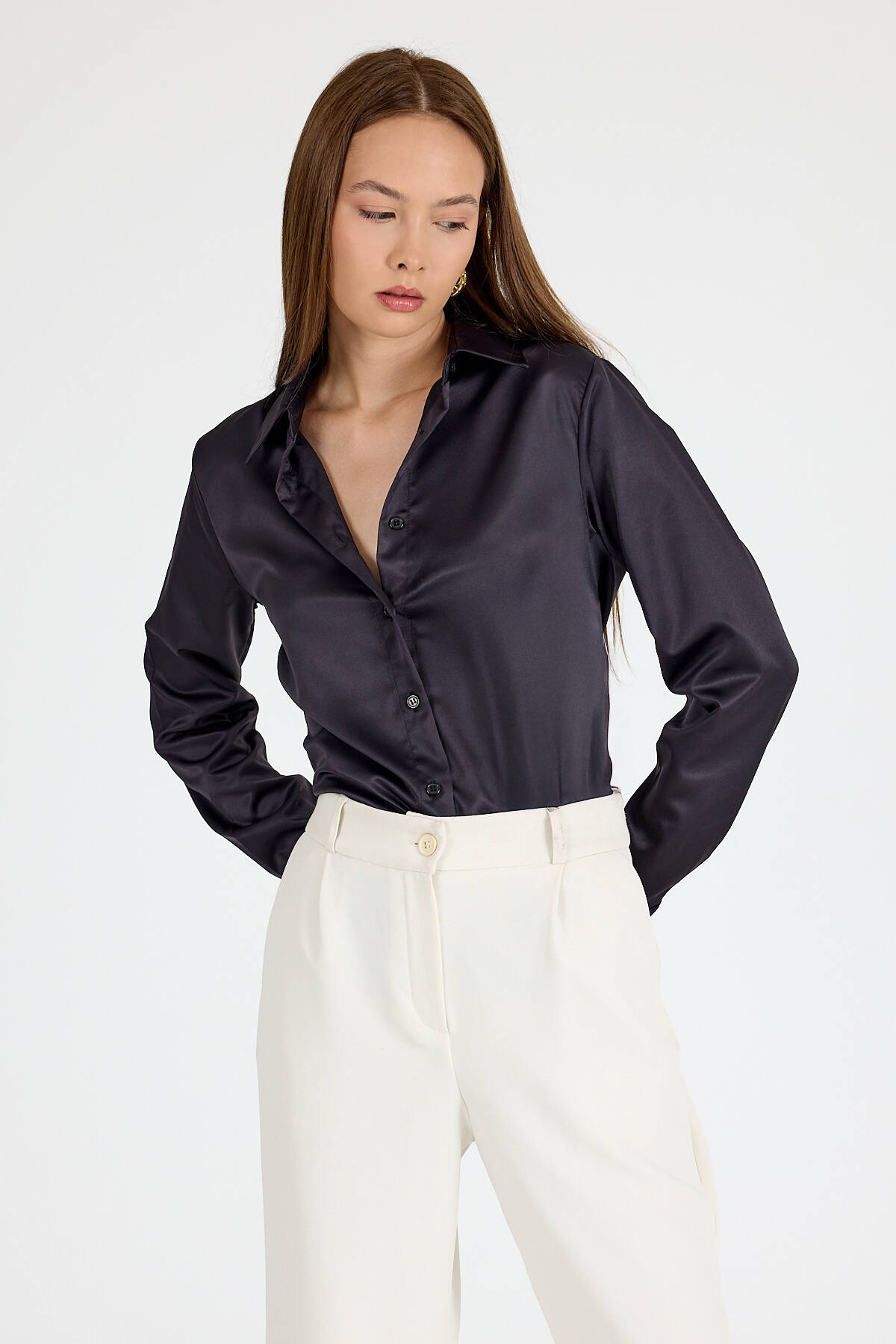 Siyah Klasik Kesim Saten Gömlek 4105A