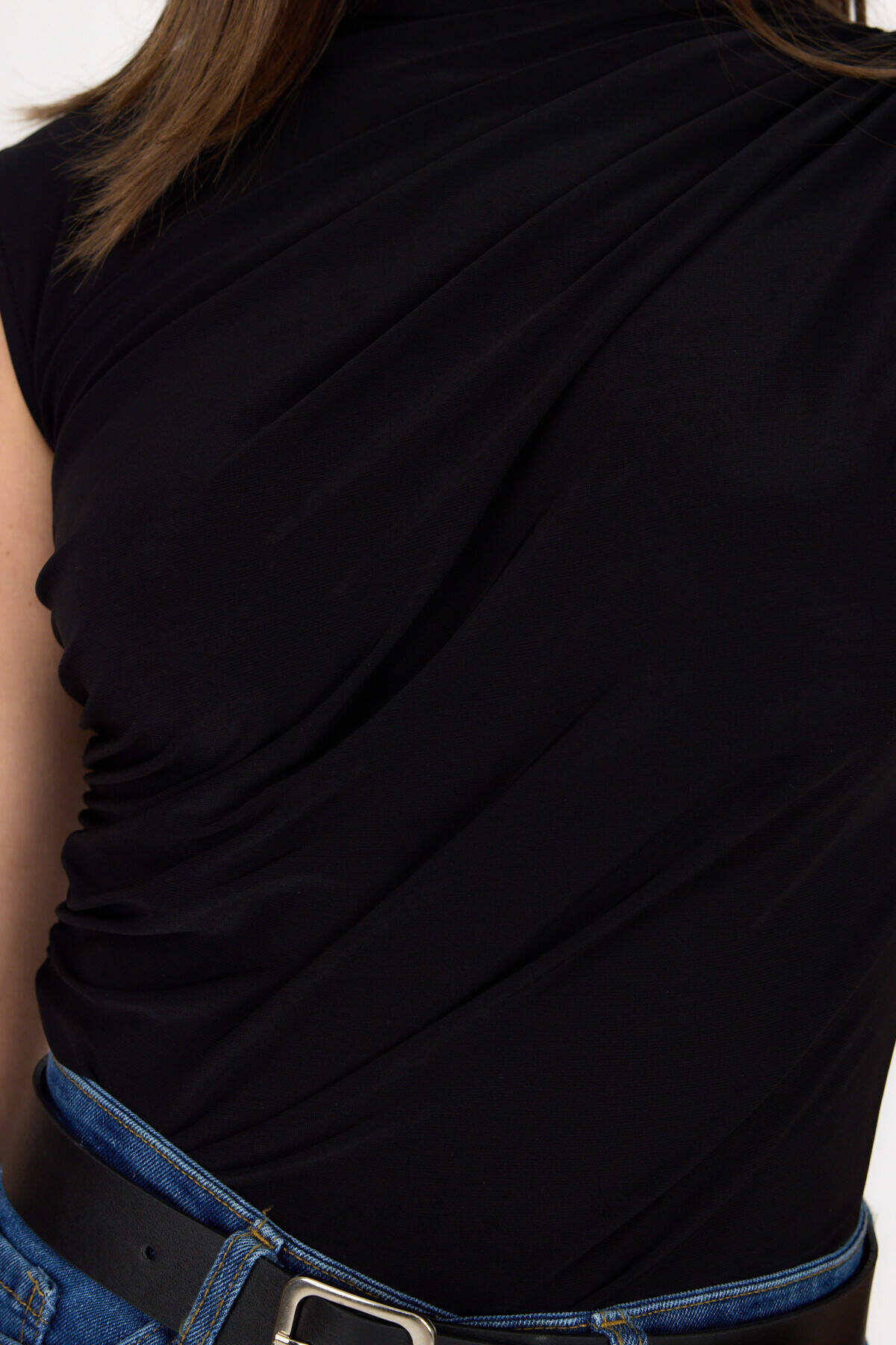 Siyah Kolsuz Büzgülü Sandy Bluz 2430