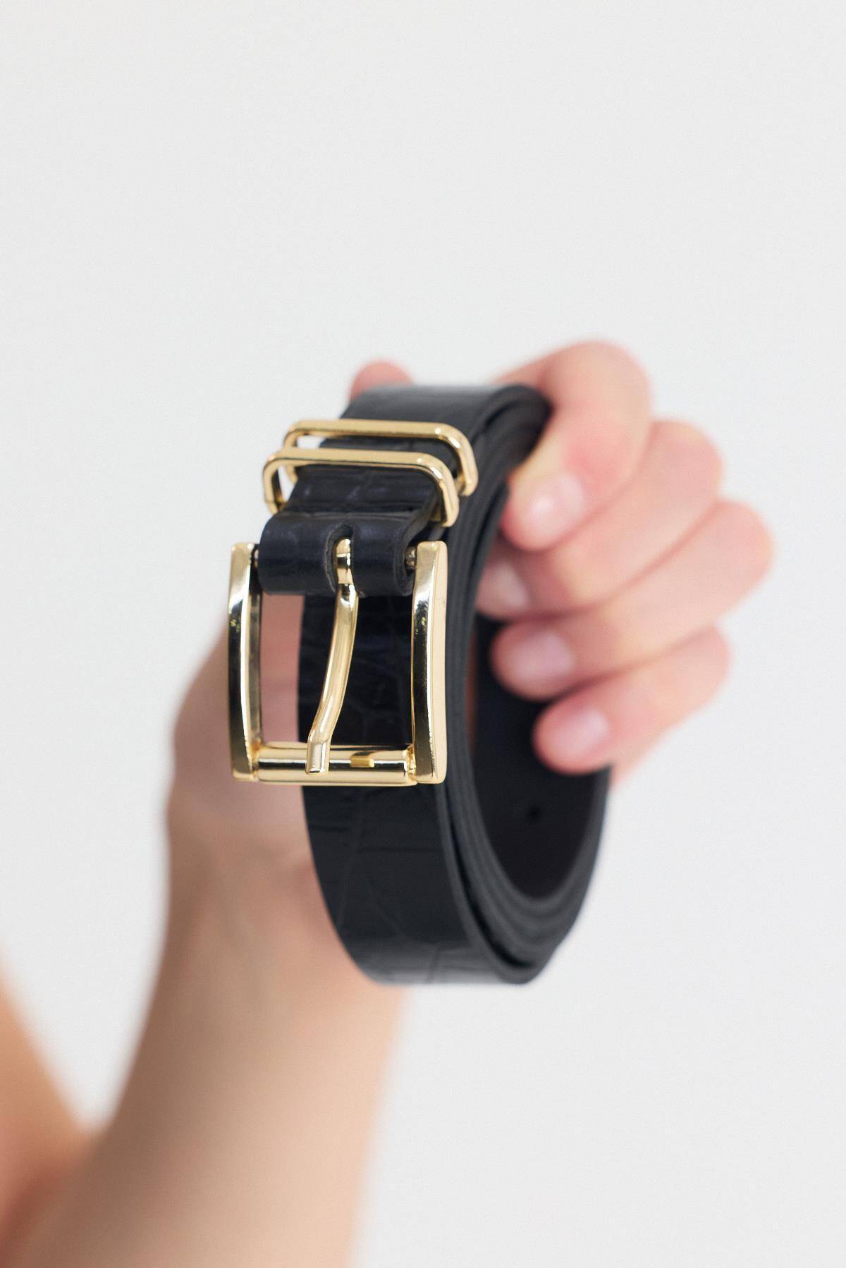 Siyah Kroko Desen Gold Tokalı Kemer418