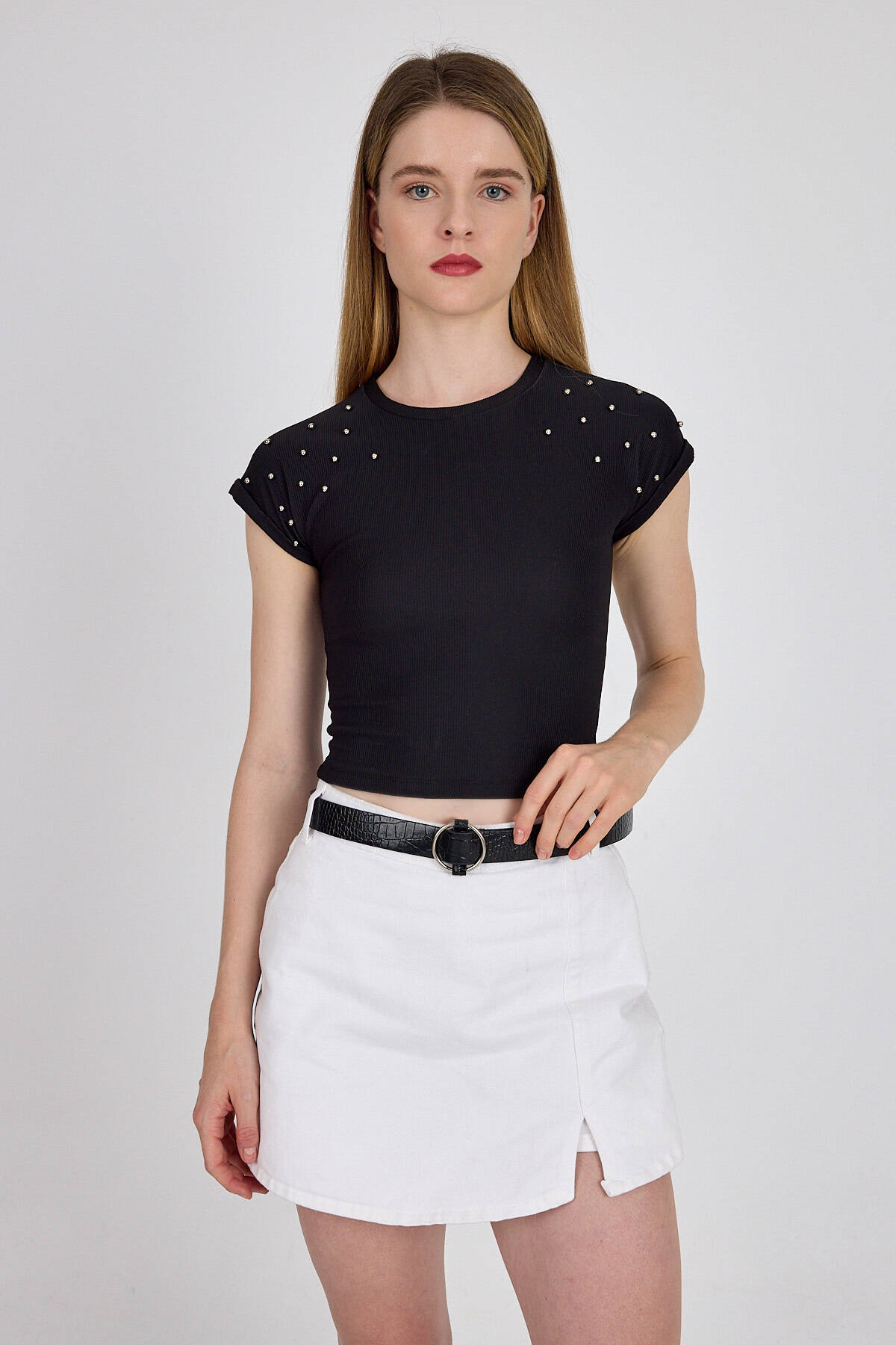Siyah Kroko Desenli Yuvarlak Tokalı Kemer 436