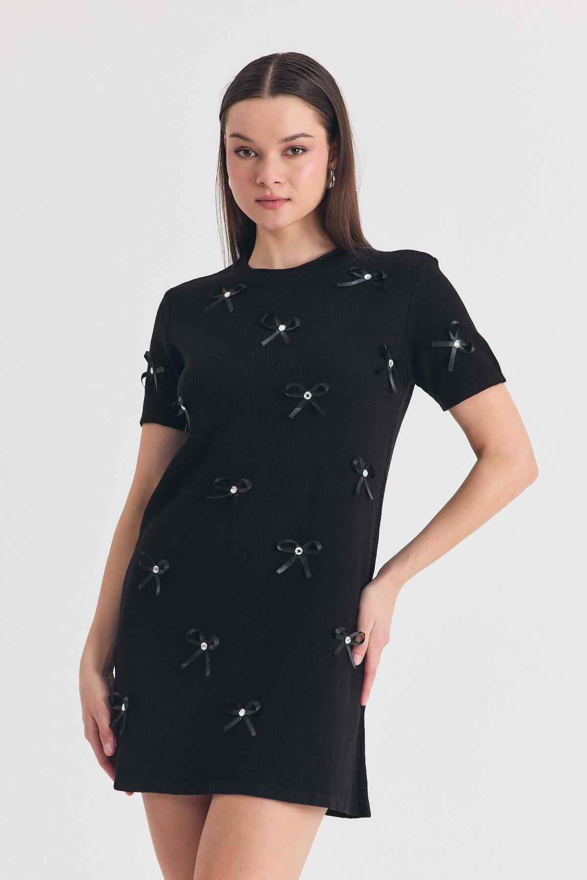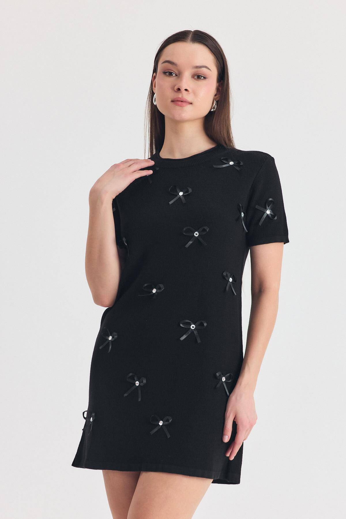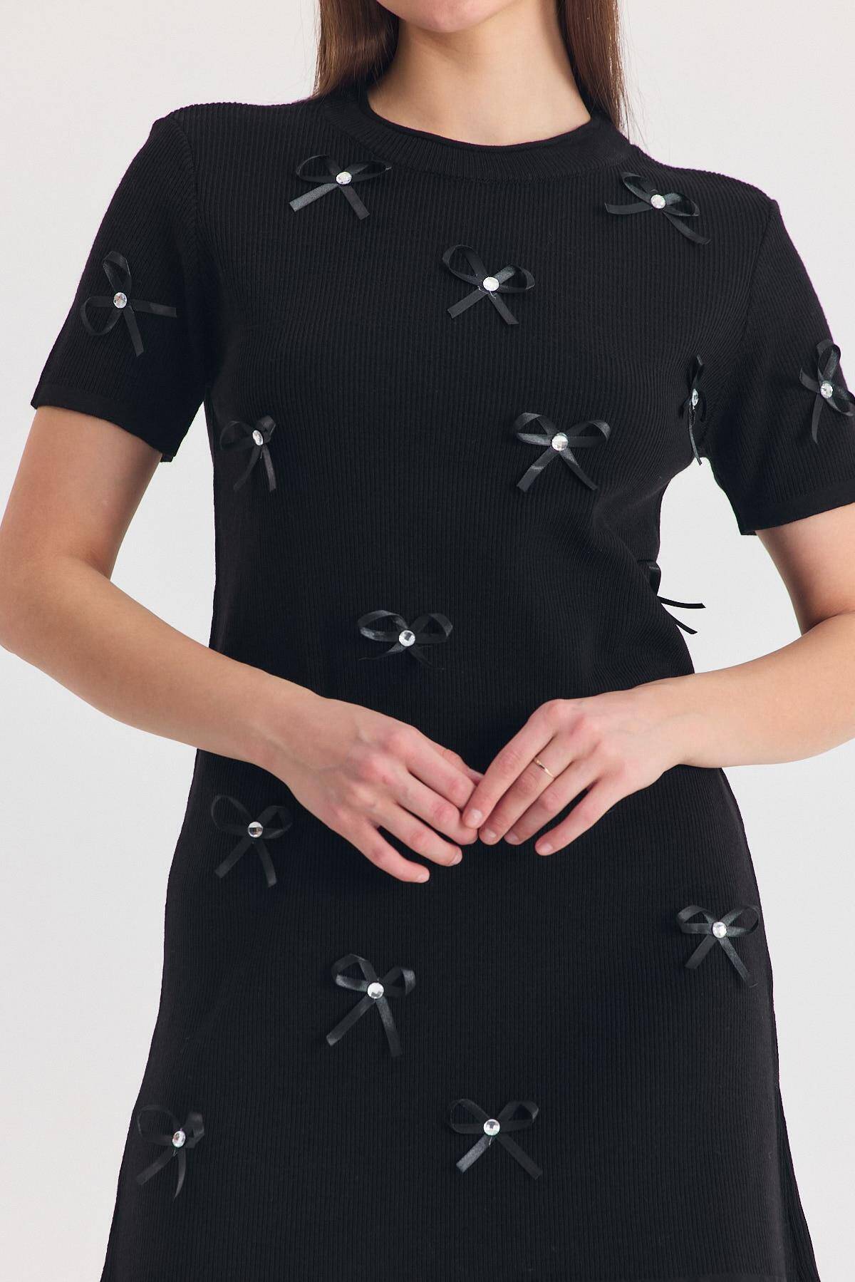 Siyah Kurdela Detay Triko Elbise 2117