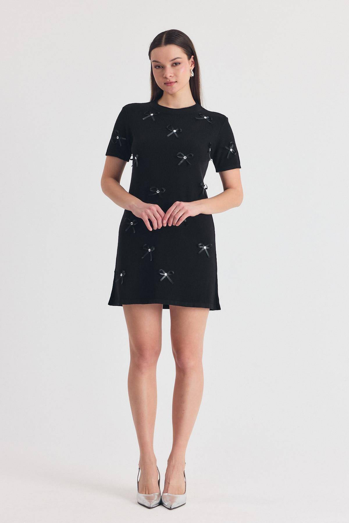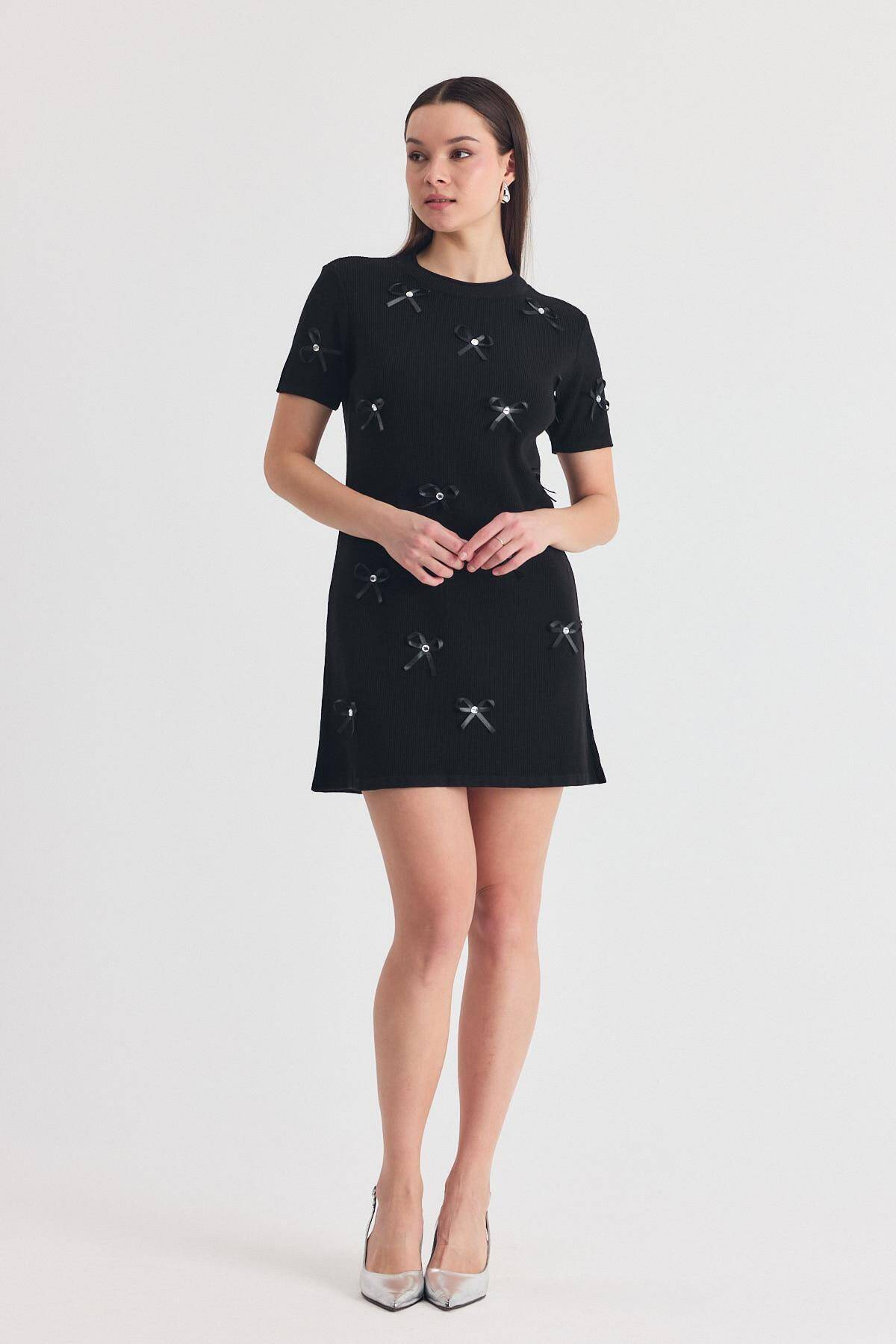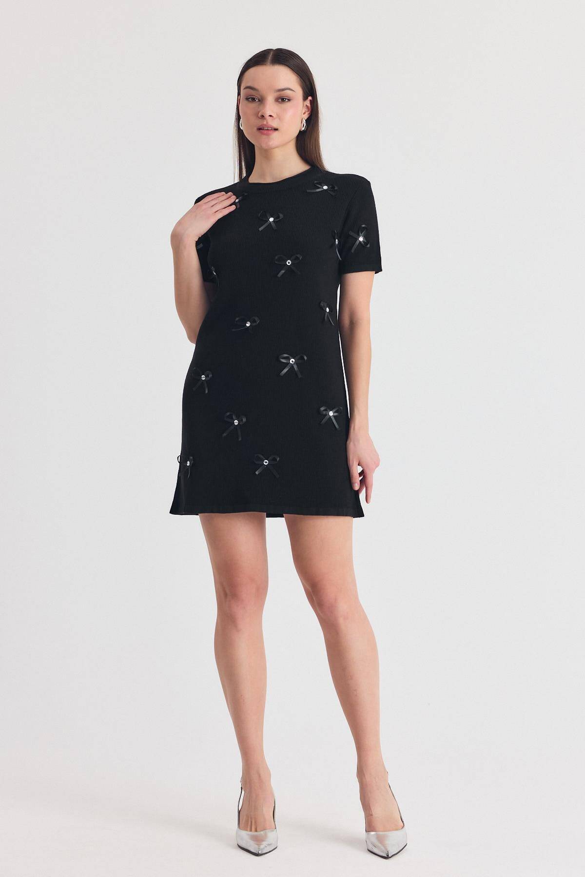Siyah Kurdela Detay Triko Elbise 2117