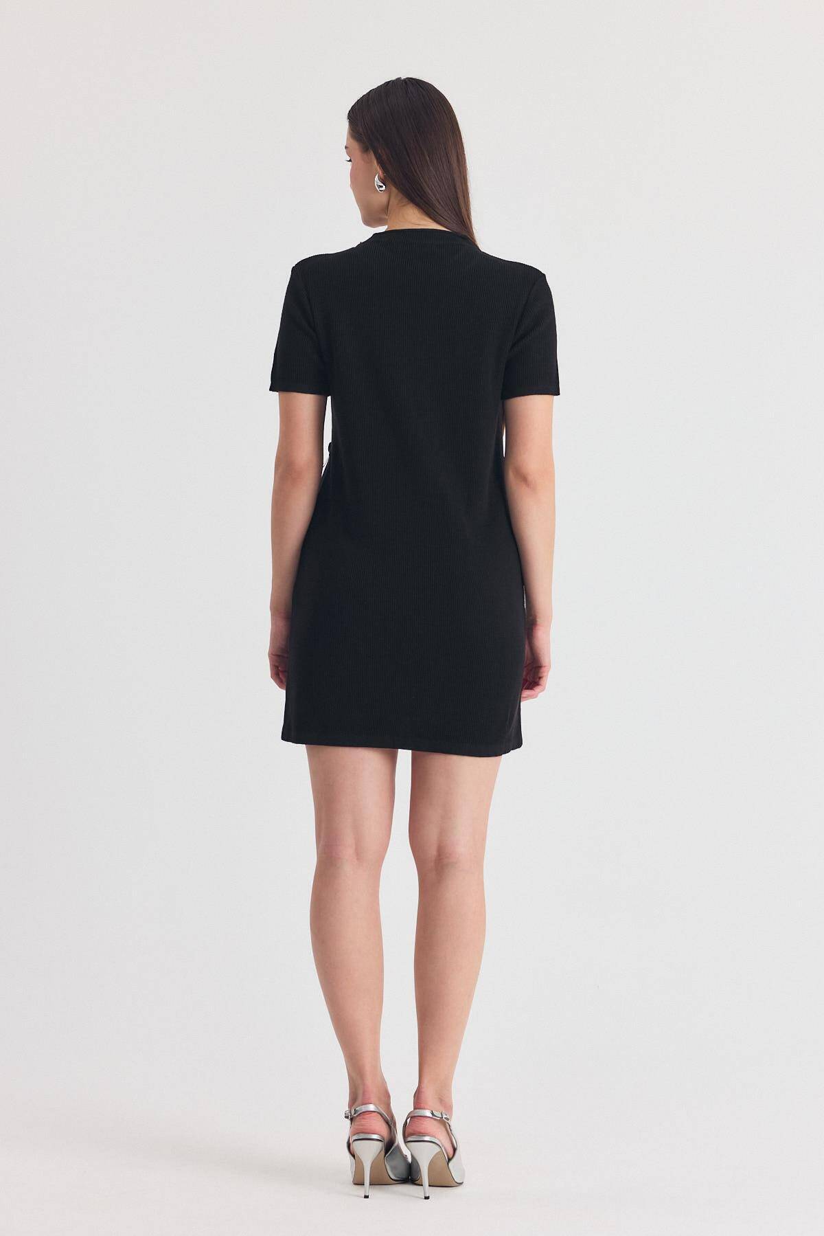 3686 Bel Büzgü Detay Elbise Siyah