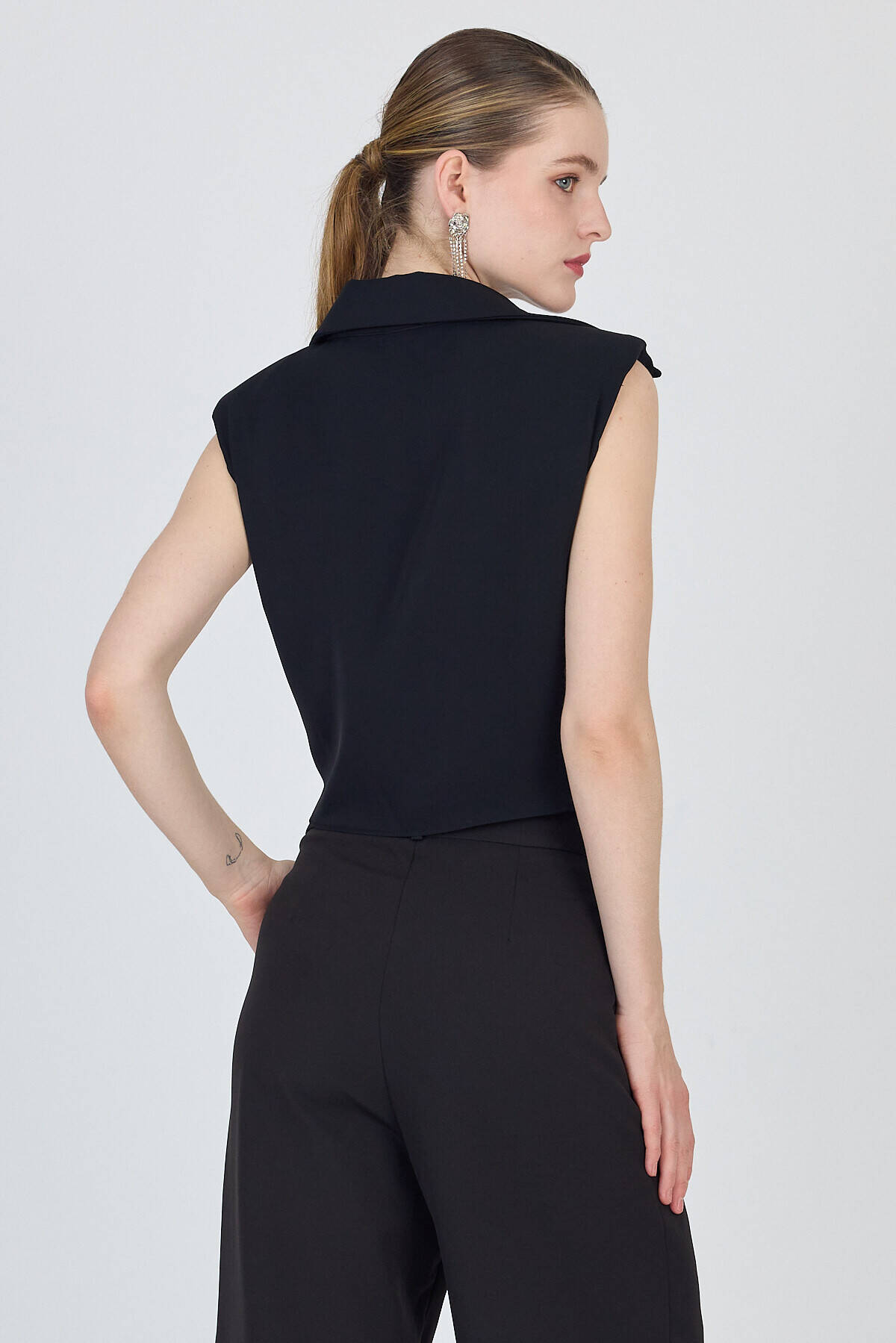 Siyah Ön Bağlama Detaylı Crop Bluz 241188