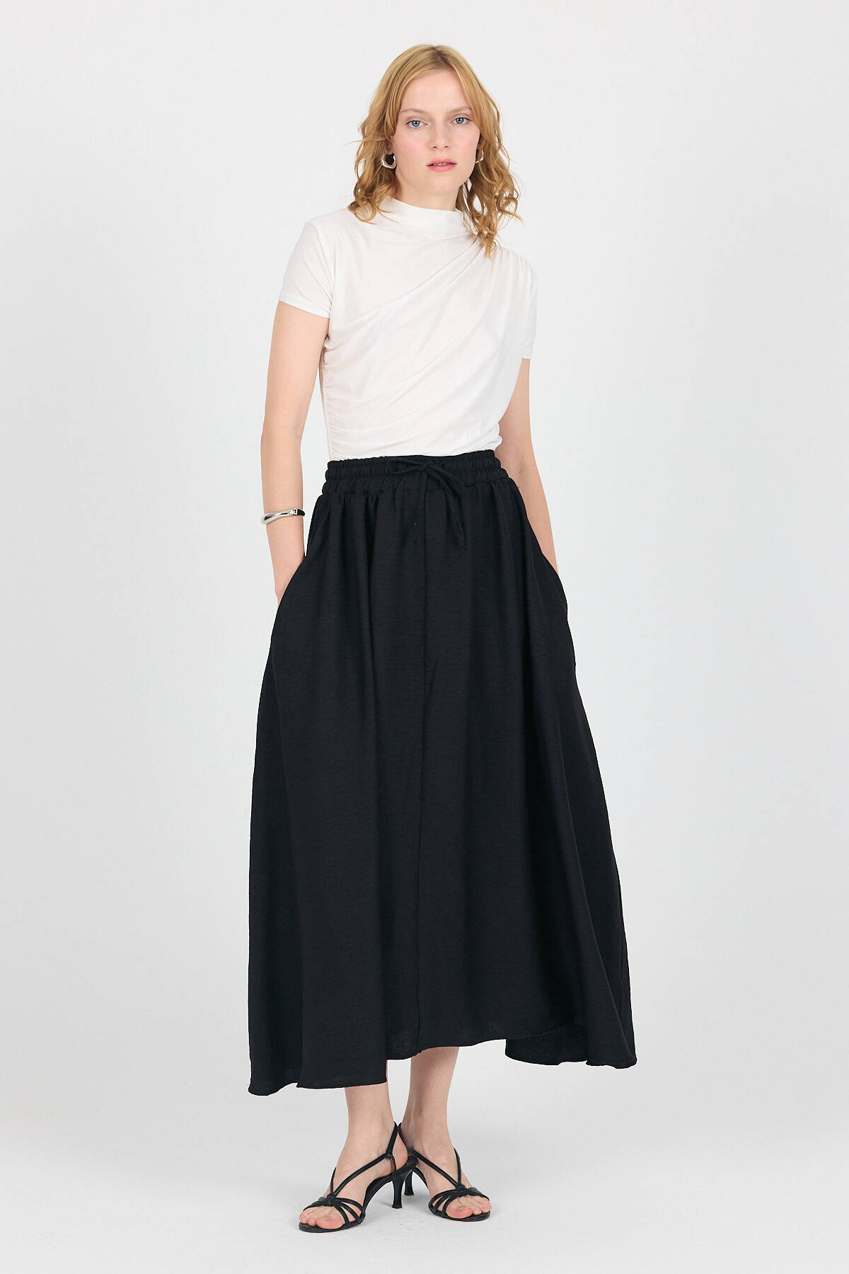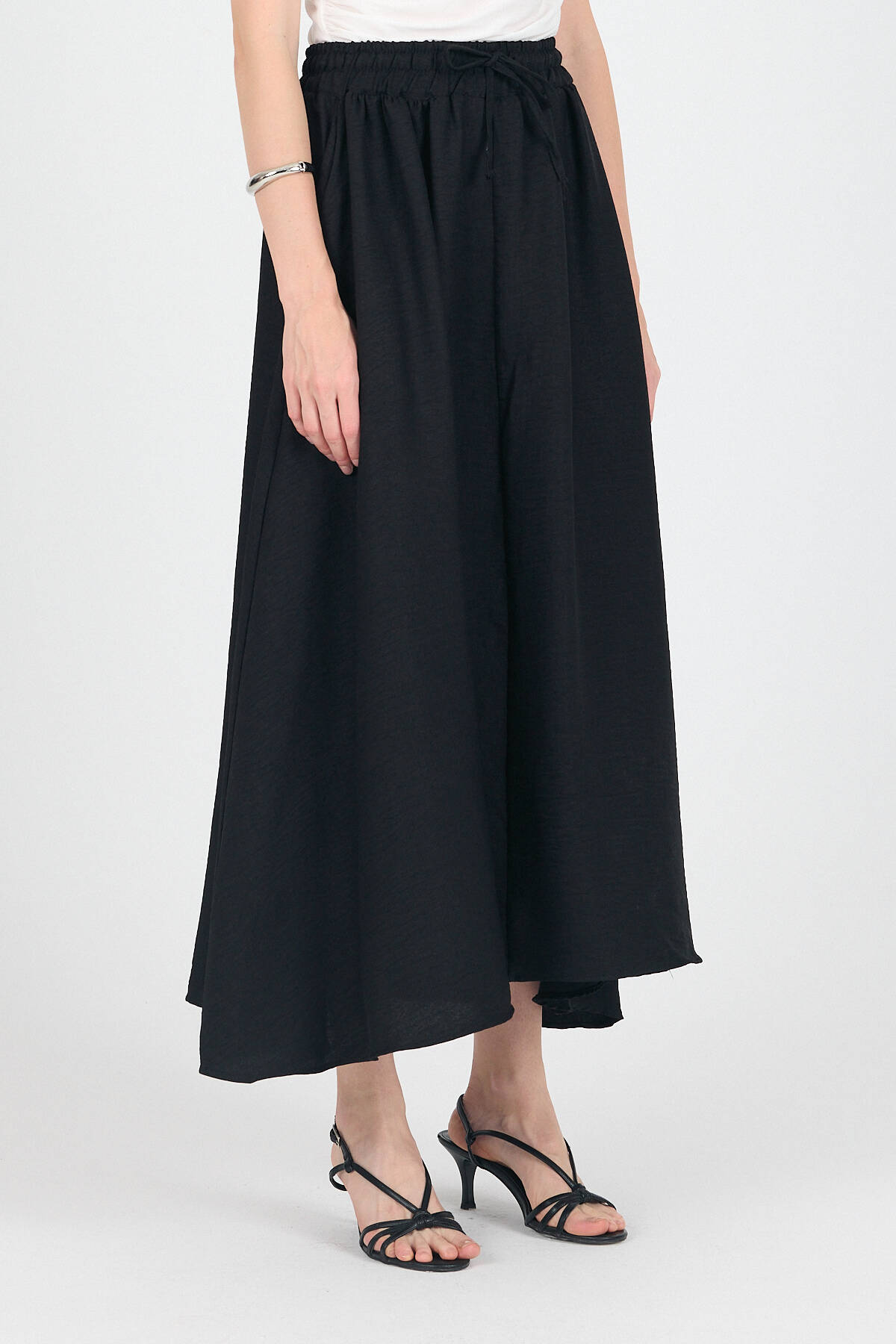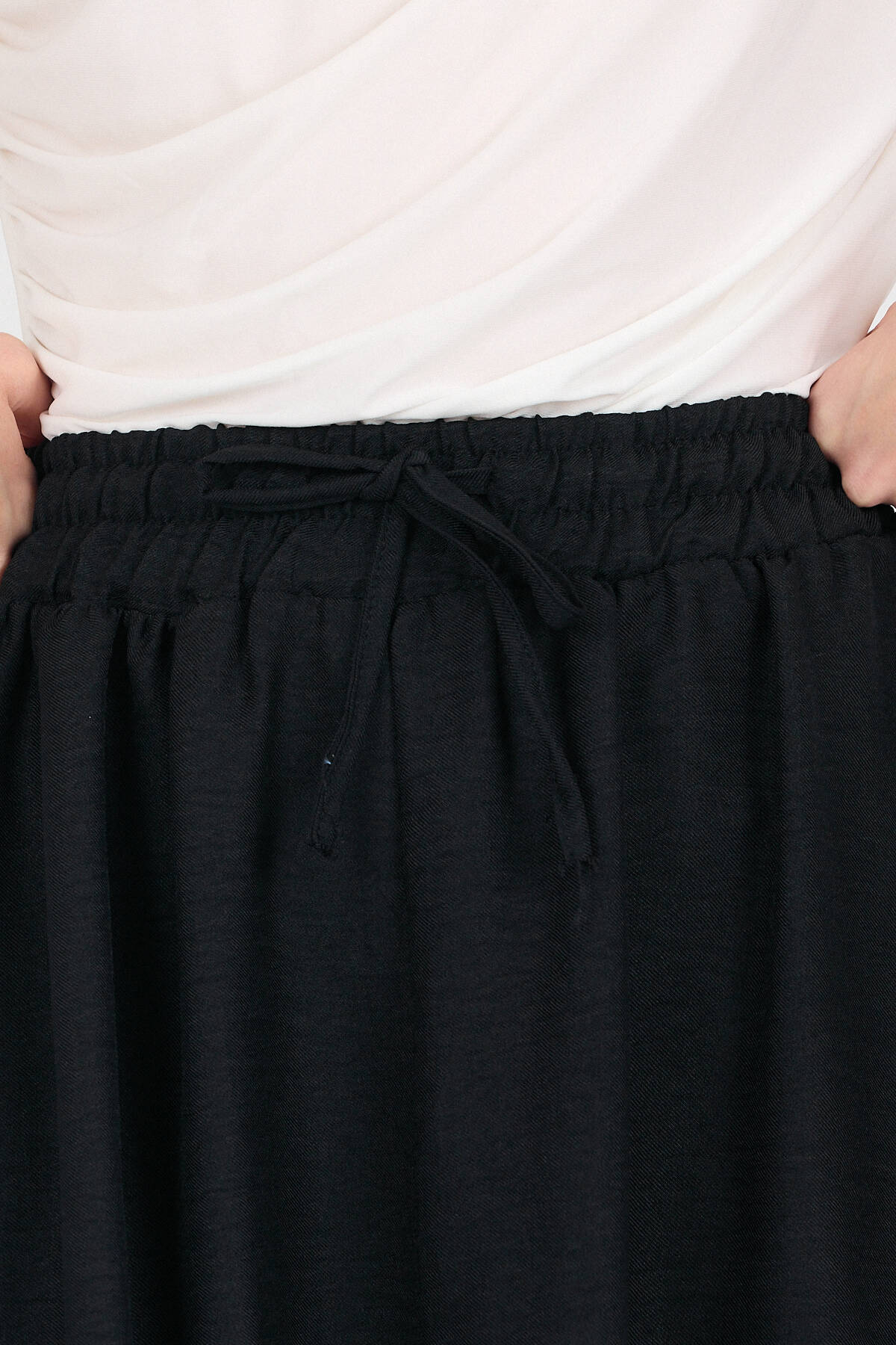 Siyah Pamuklu Çan Kesim Bağcıklı Uzun Etek 8024