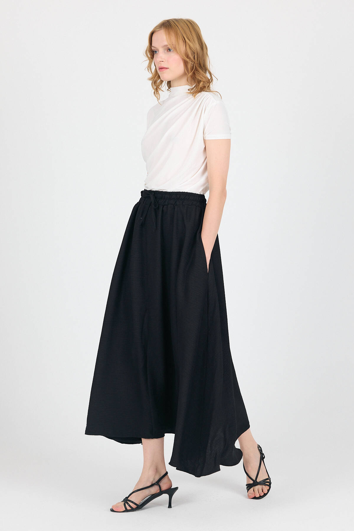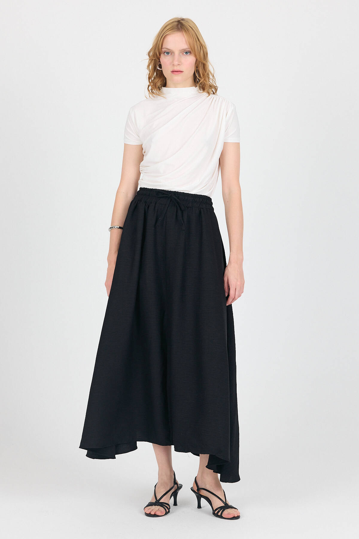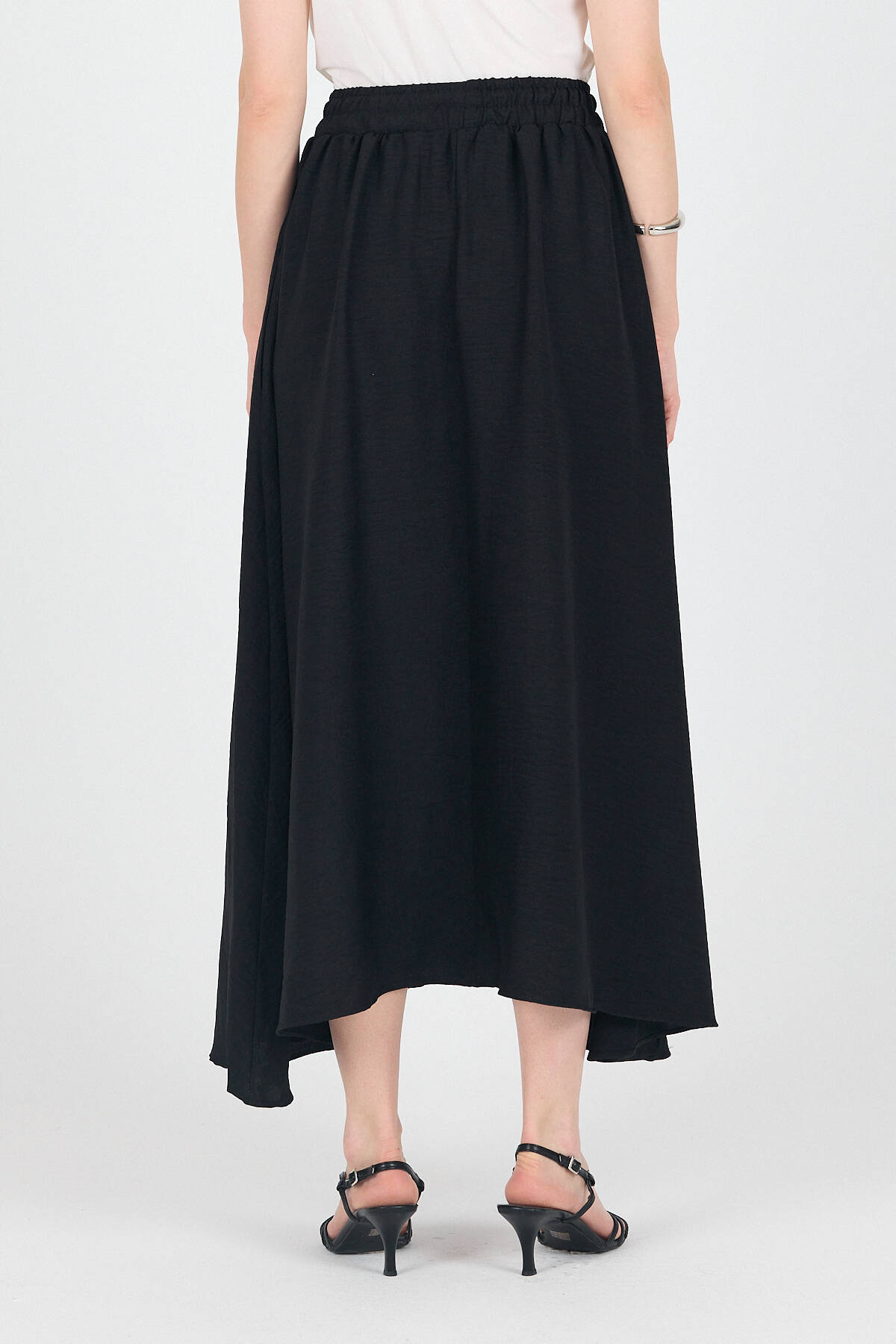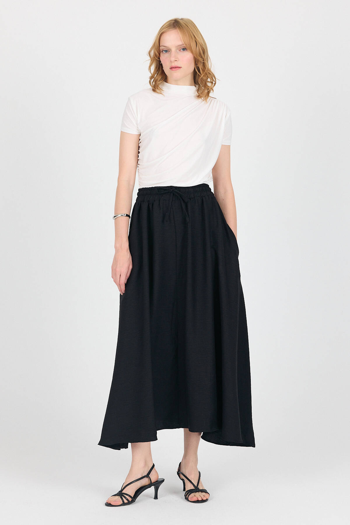 Siyah Pamuklu Çan Kesim Bağcıklı Uzun Etek 8024