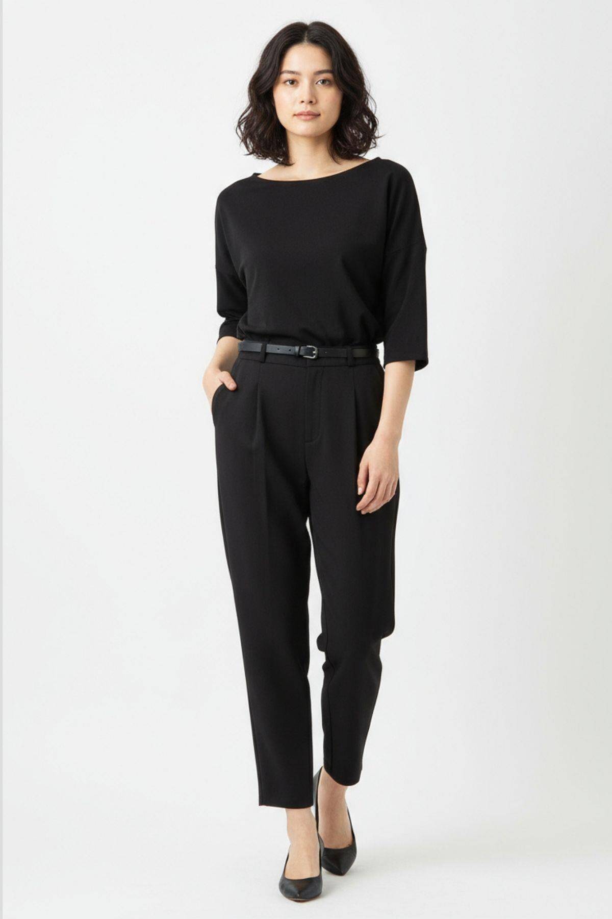 Siyah Pileli Kemerli Kadın Kumaş Pantolon 8120A