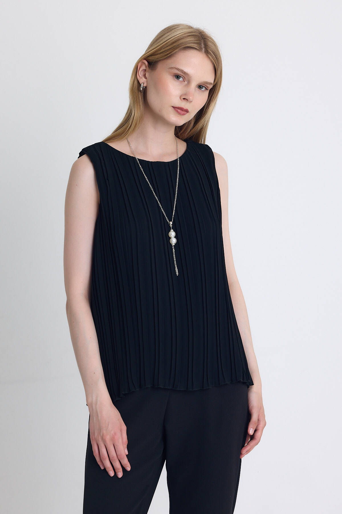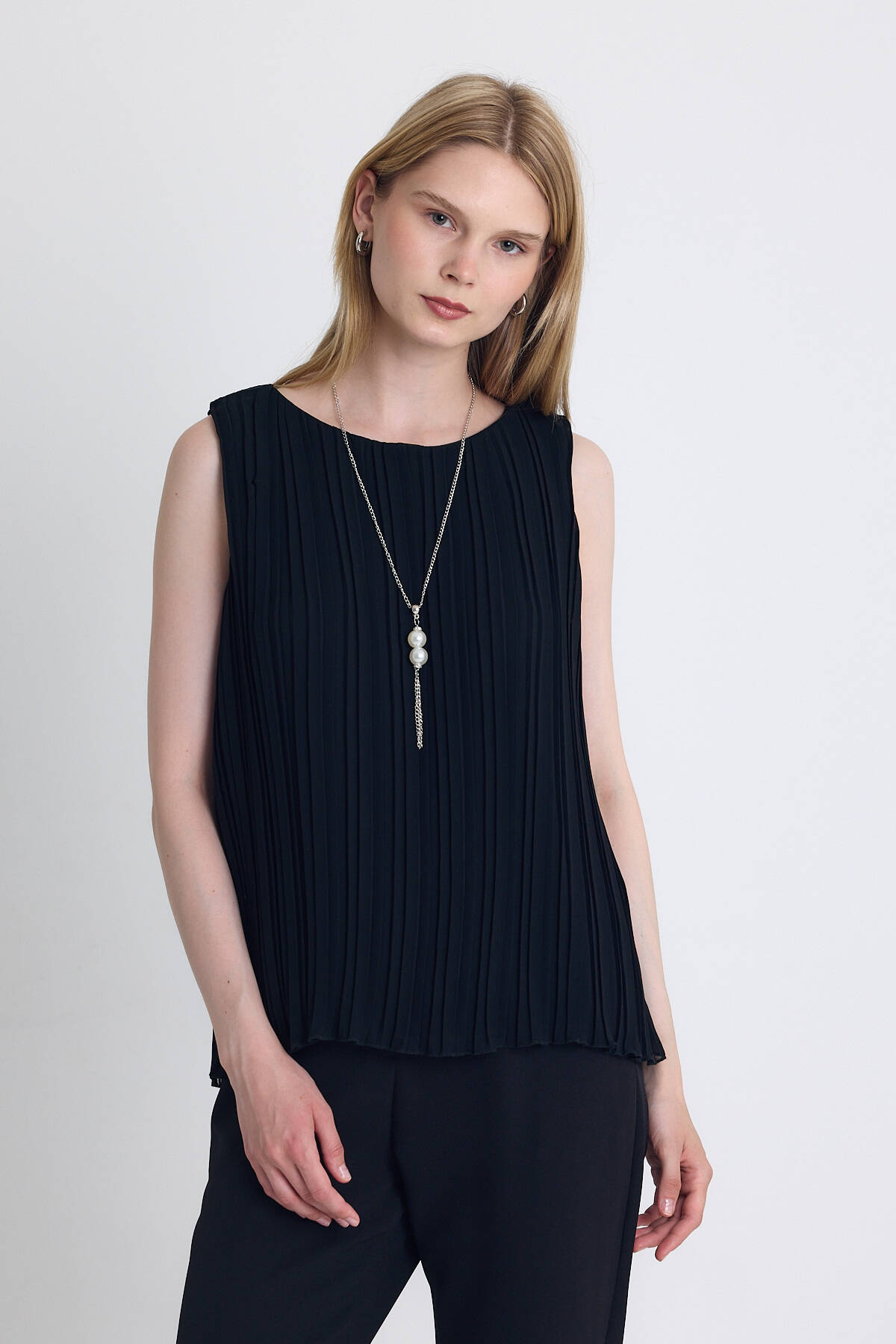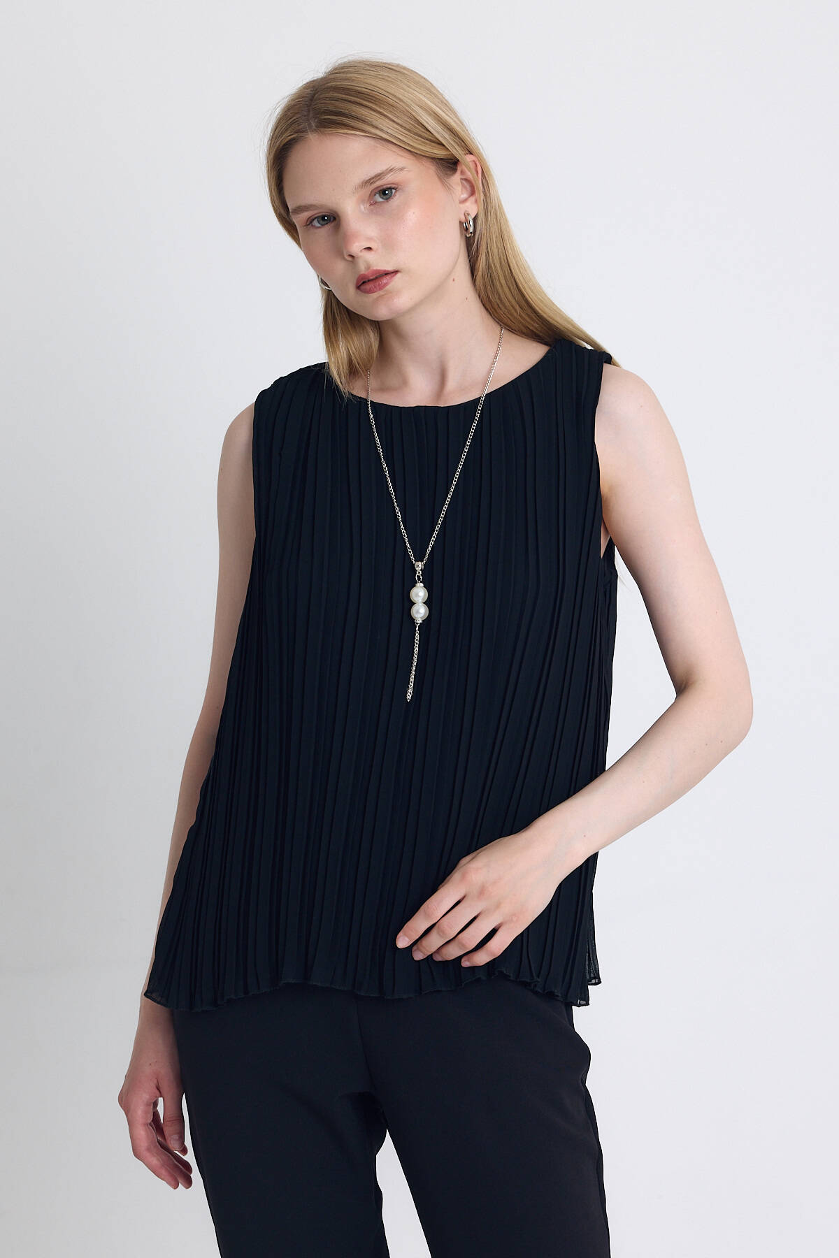 Siyah Pileli Kolye Aksesuar Detaylı Kolsuz Bluz 220