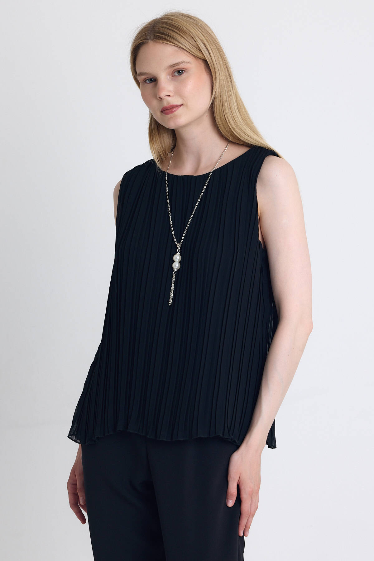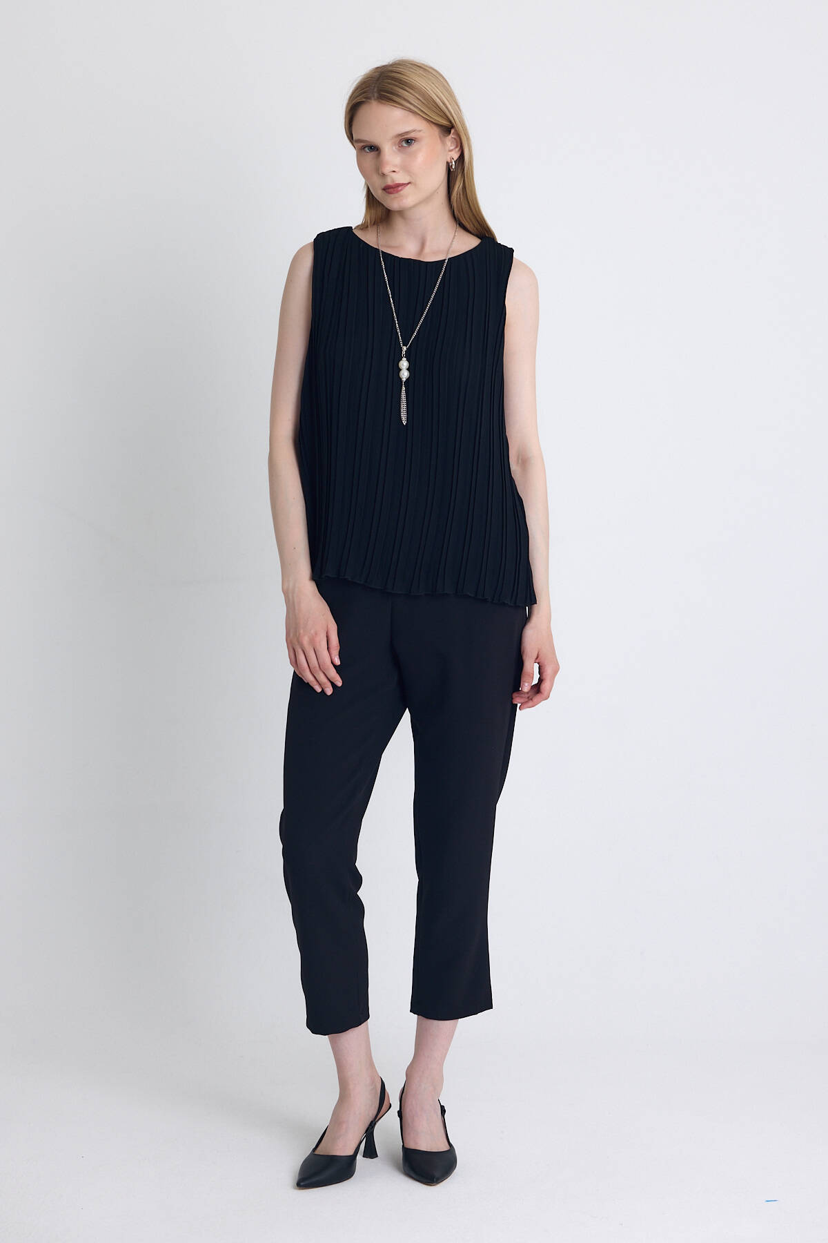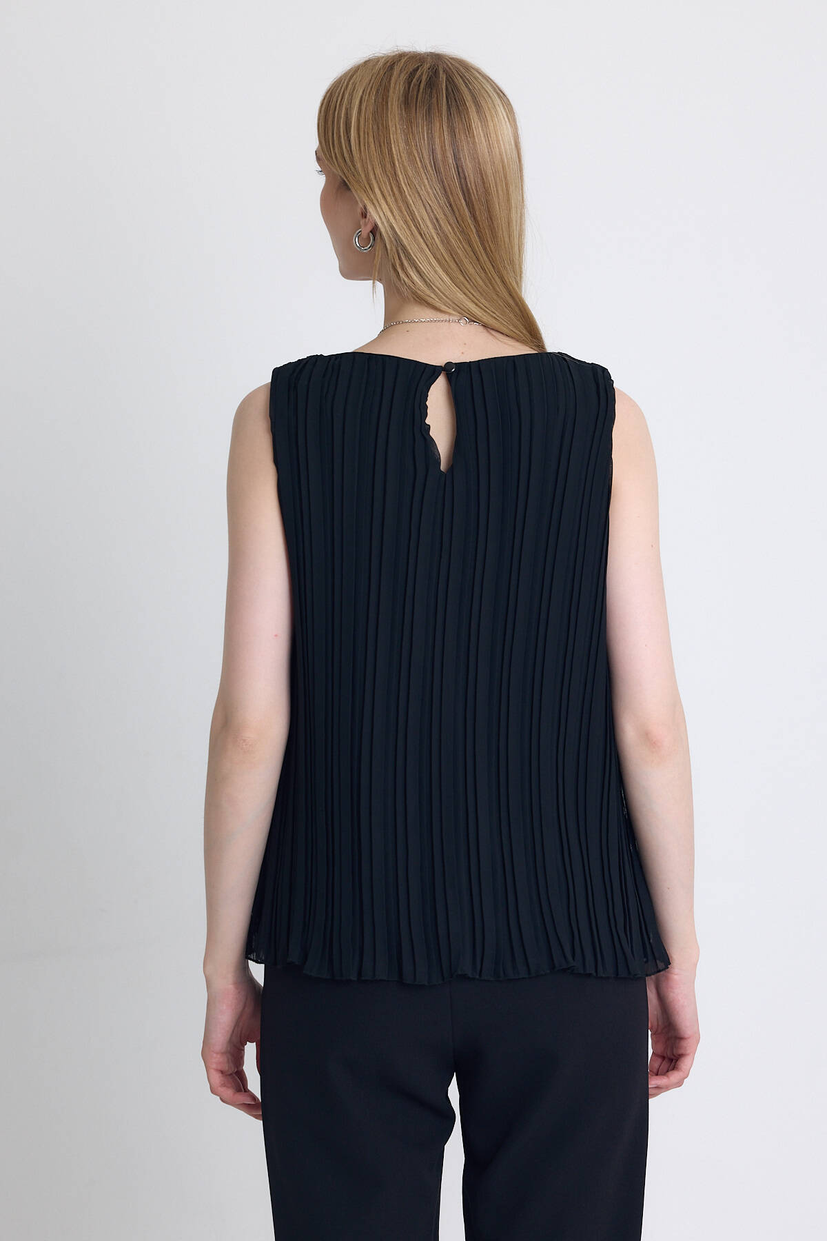 Siyah Pileli Kolye Aksesuar Detaylı Kolsuz Bluz 220