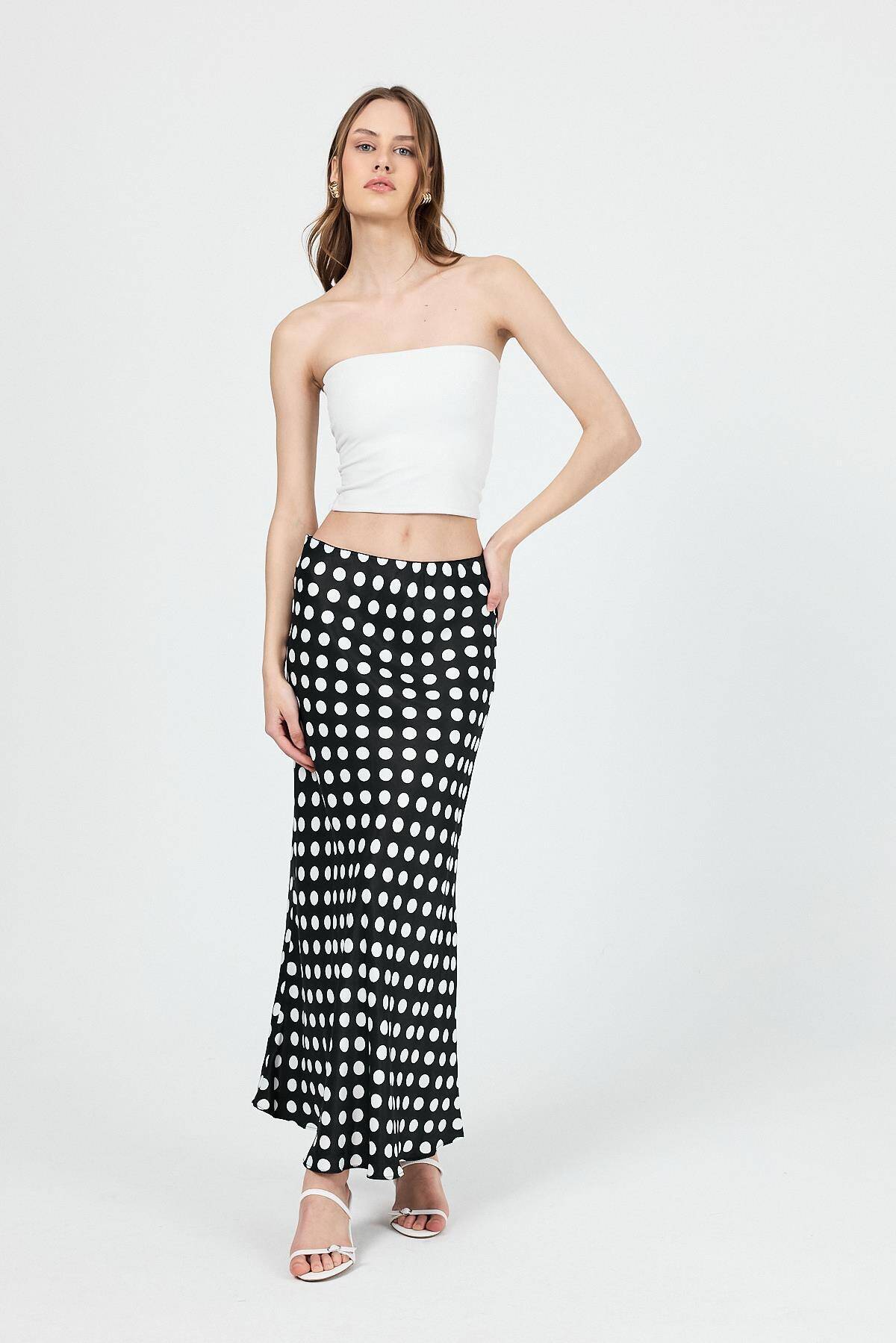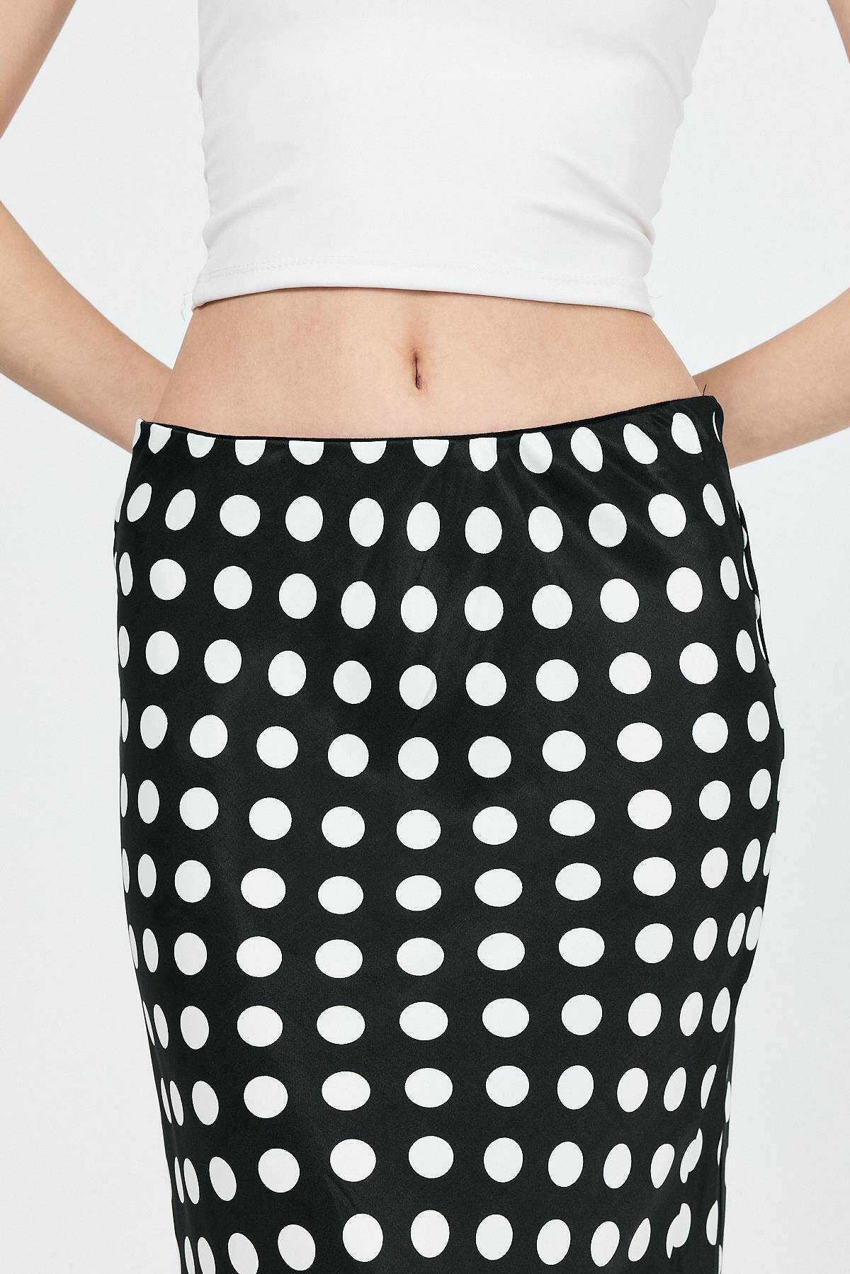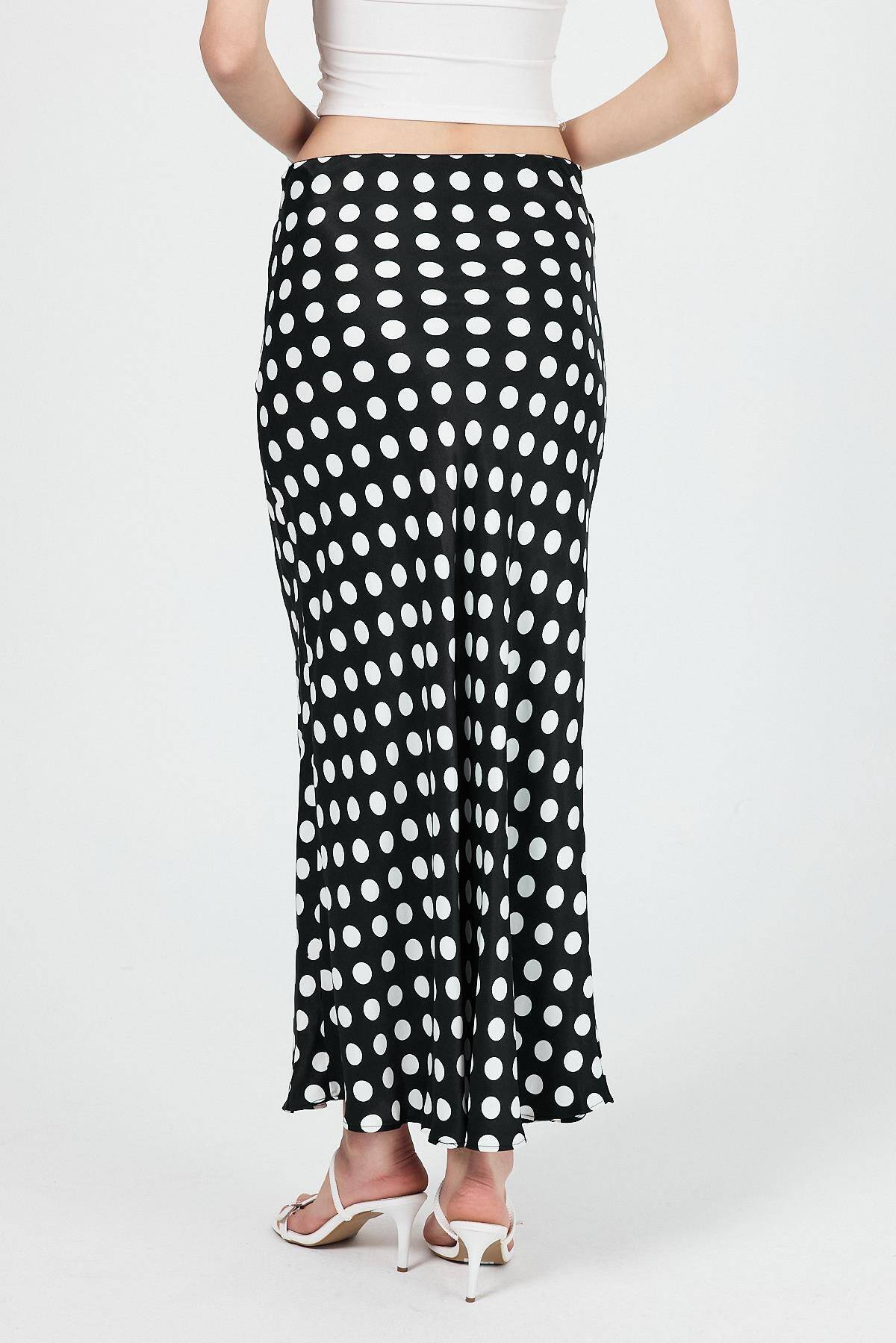 Siyah Puantiye Desen Saten Midi Etek 9416