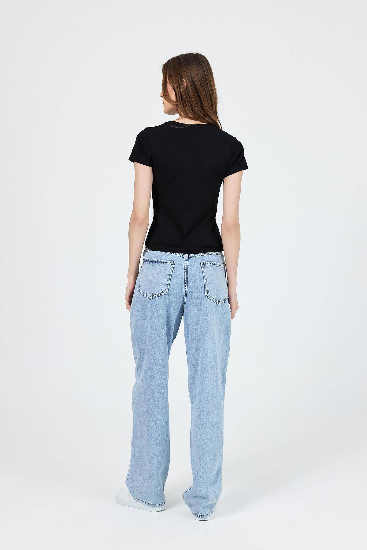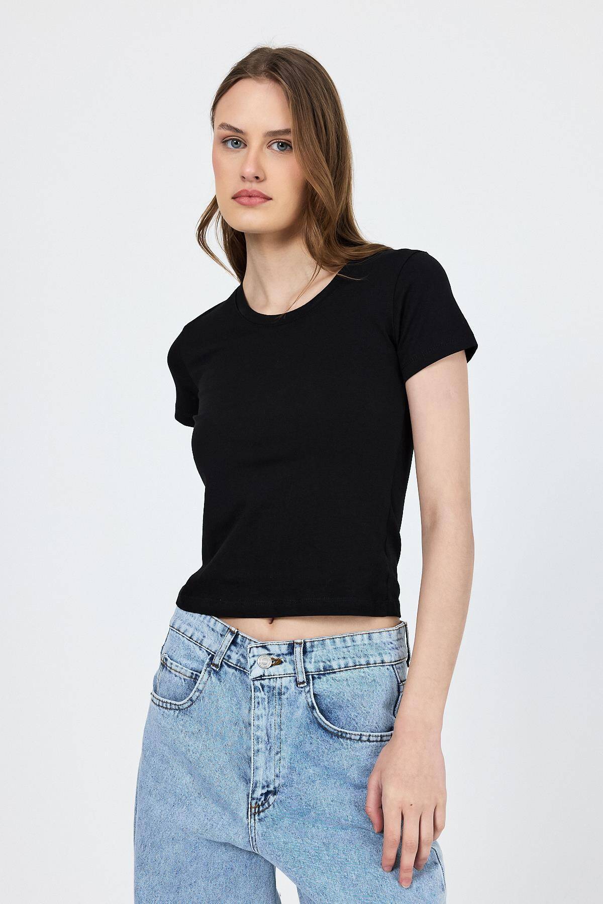 Siyah Slim Fit Bisiklet Yaka Kısa Kollu Tişört 2214