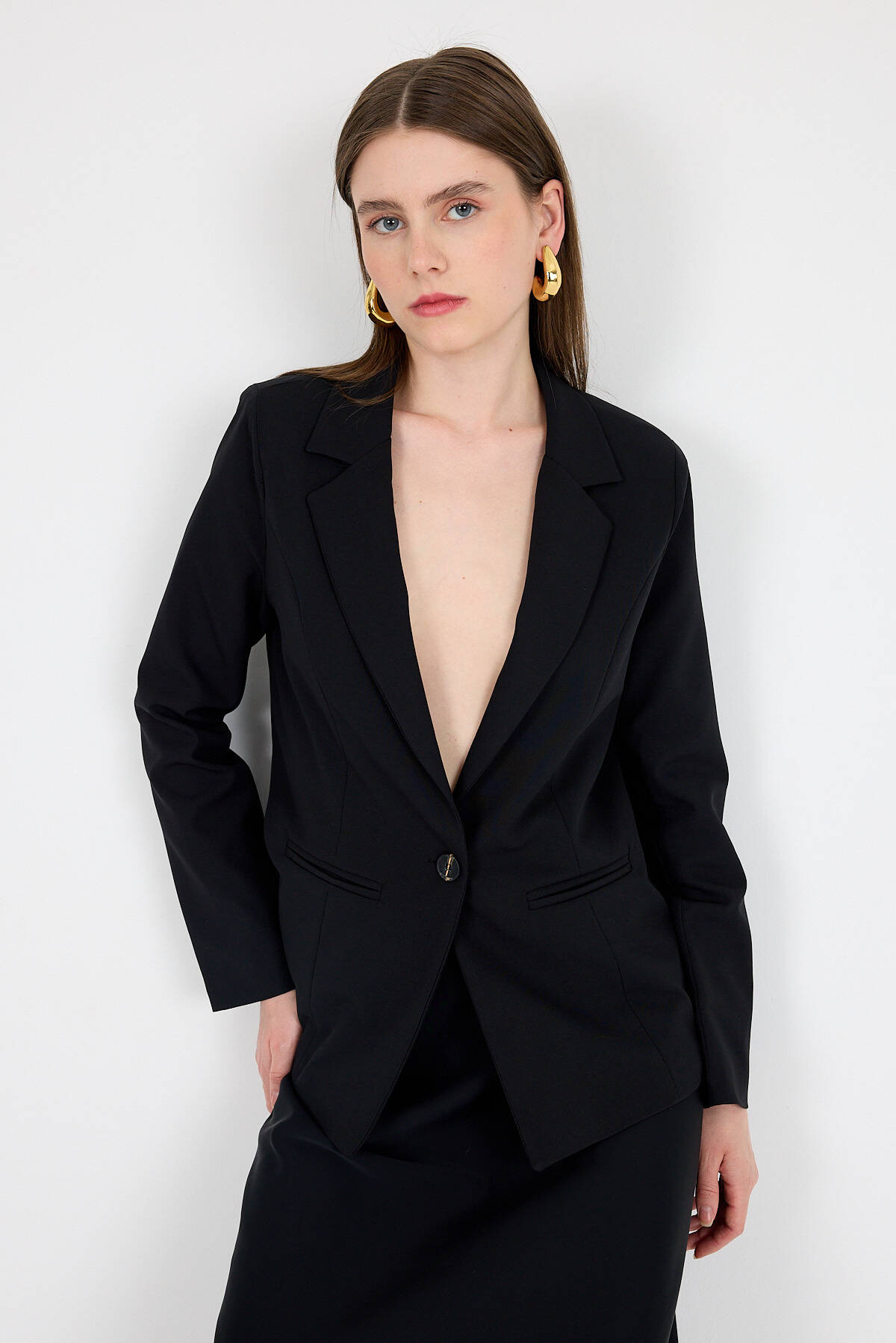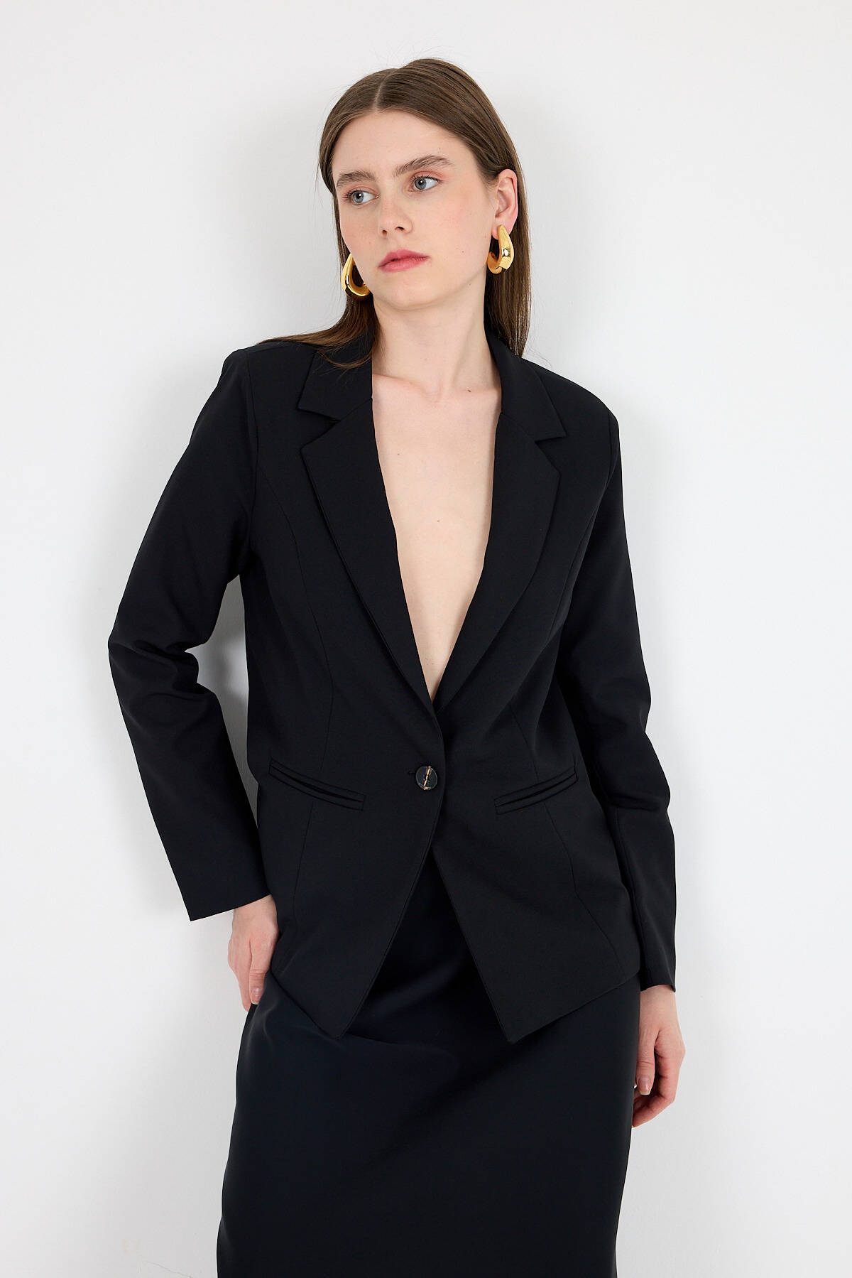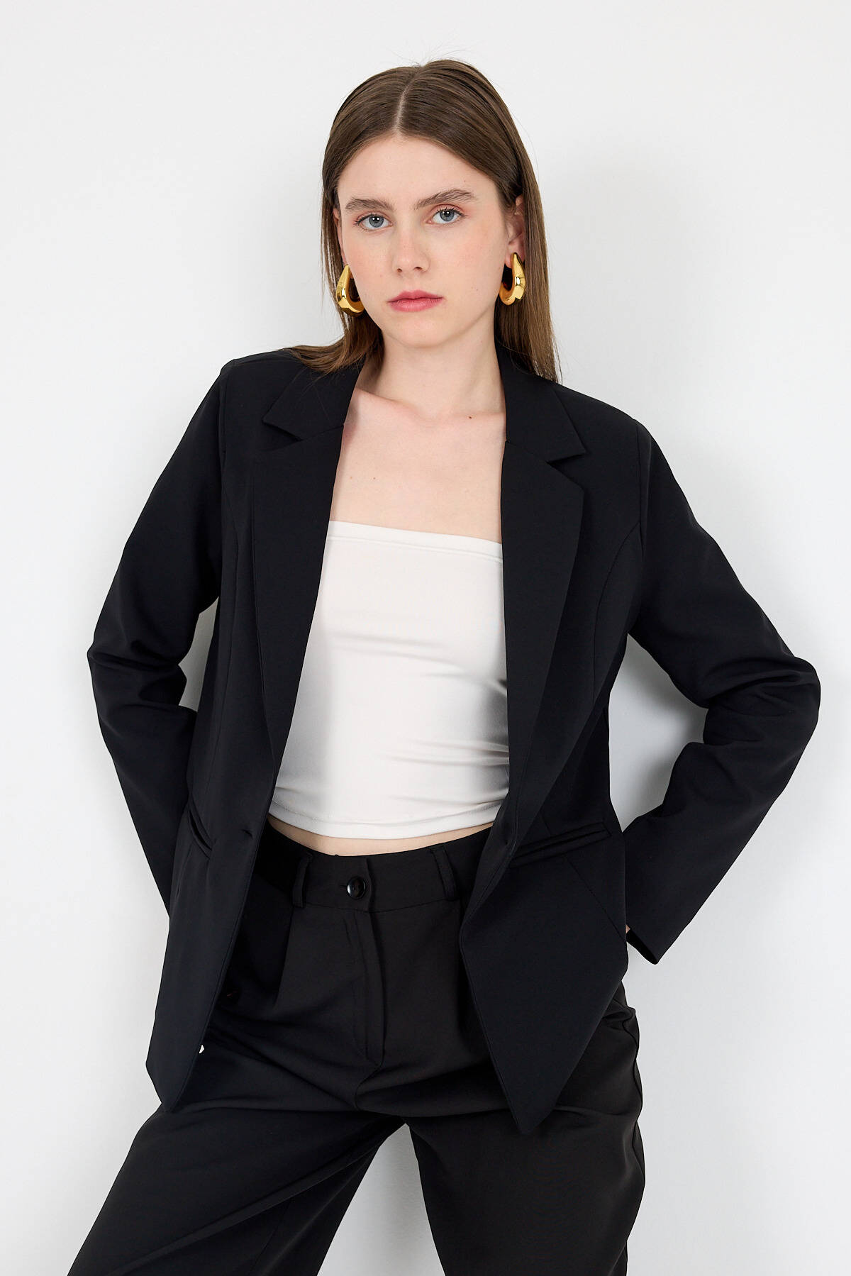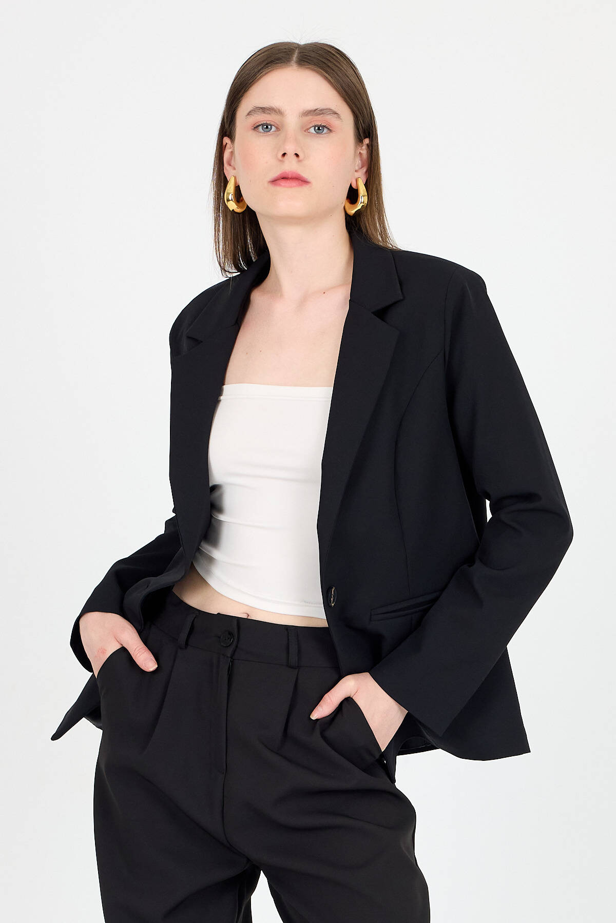 Siyah Tek Düğmeli Klasik Kesim Blazer Ceket 4612A