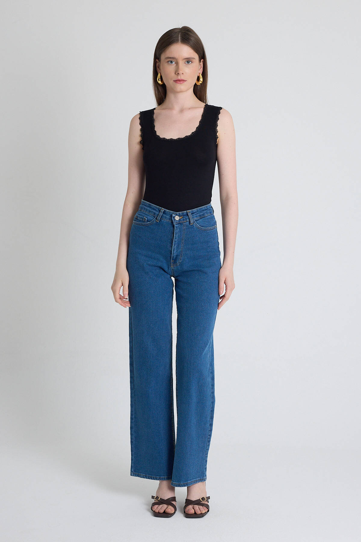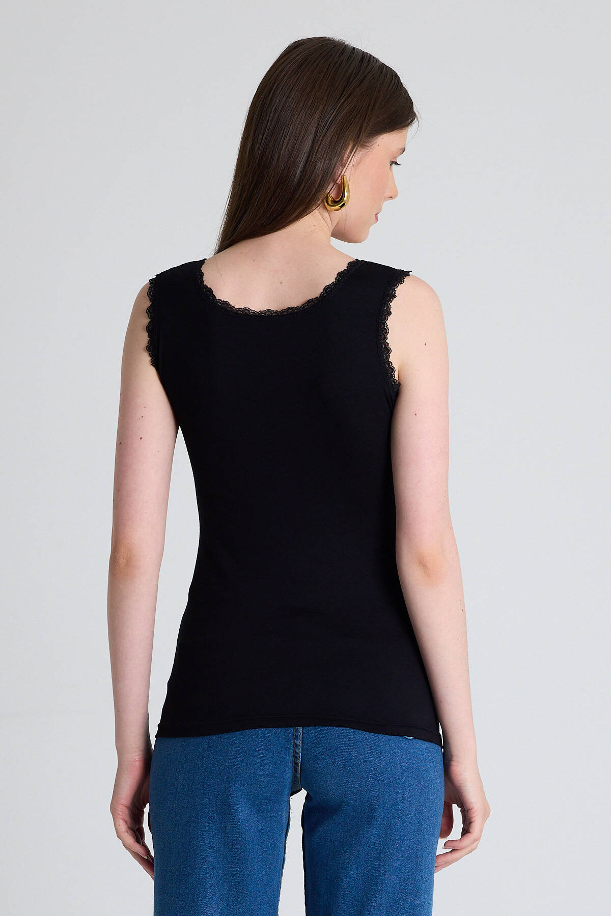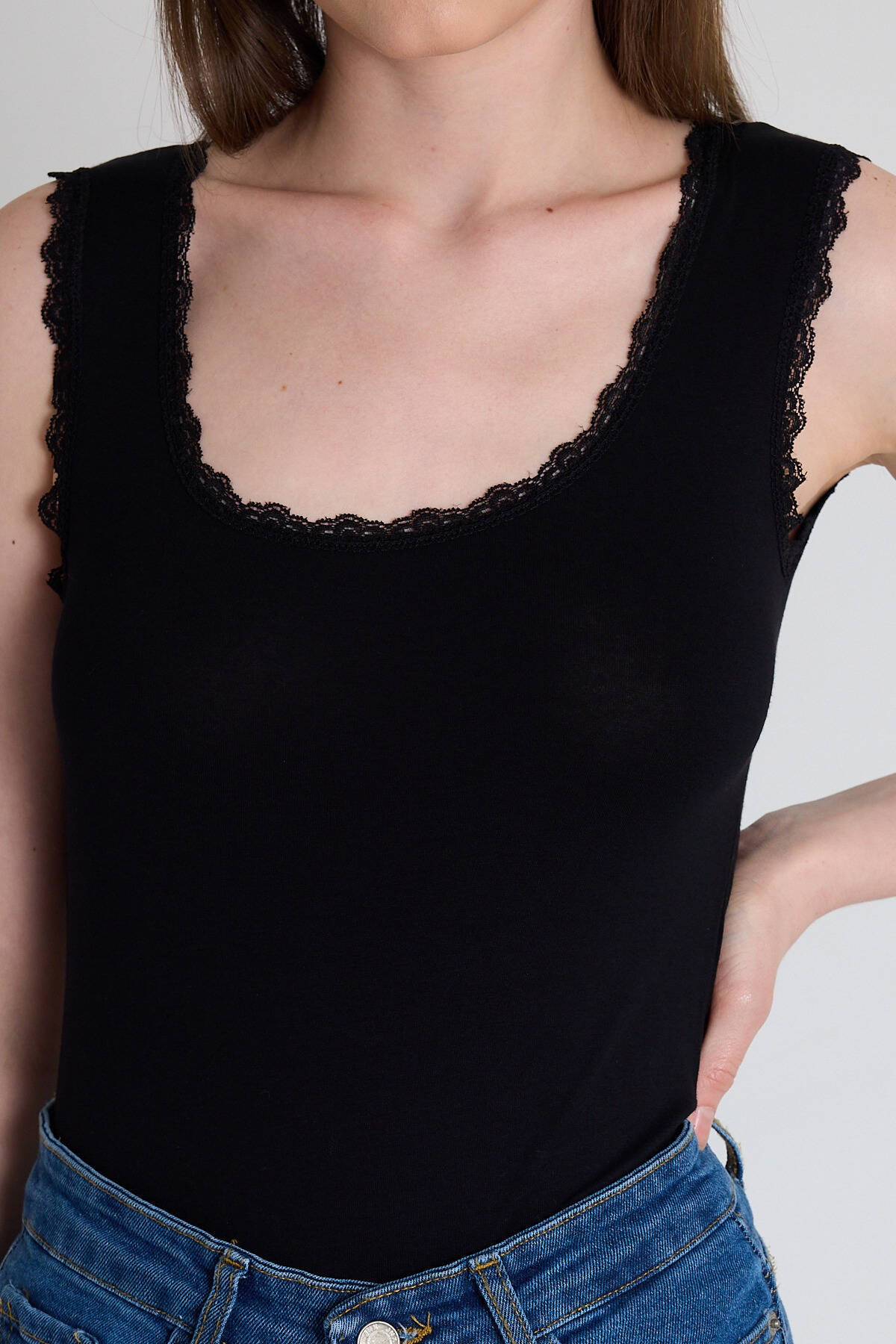 Siyah U Yaka Dantel Detaylı Kalın Askılı Atlet 3602