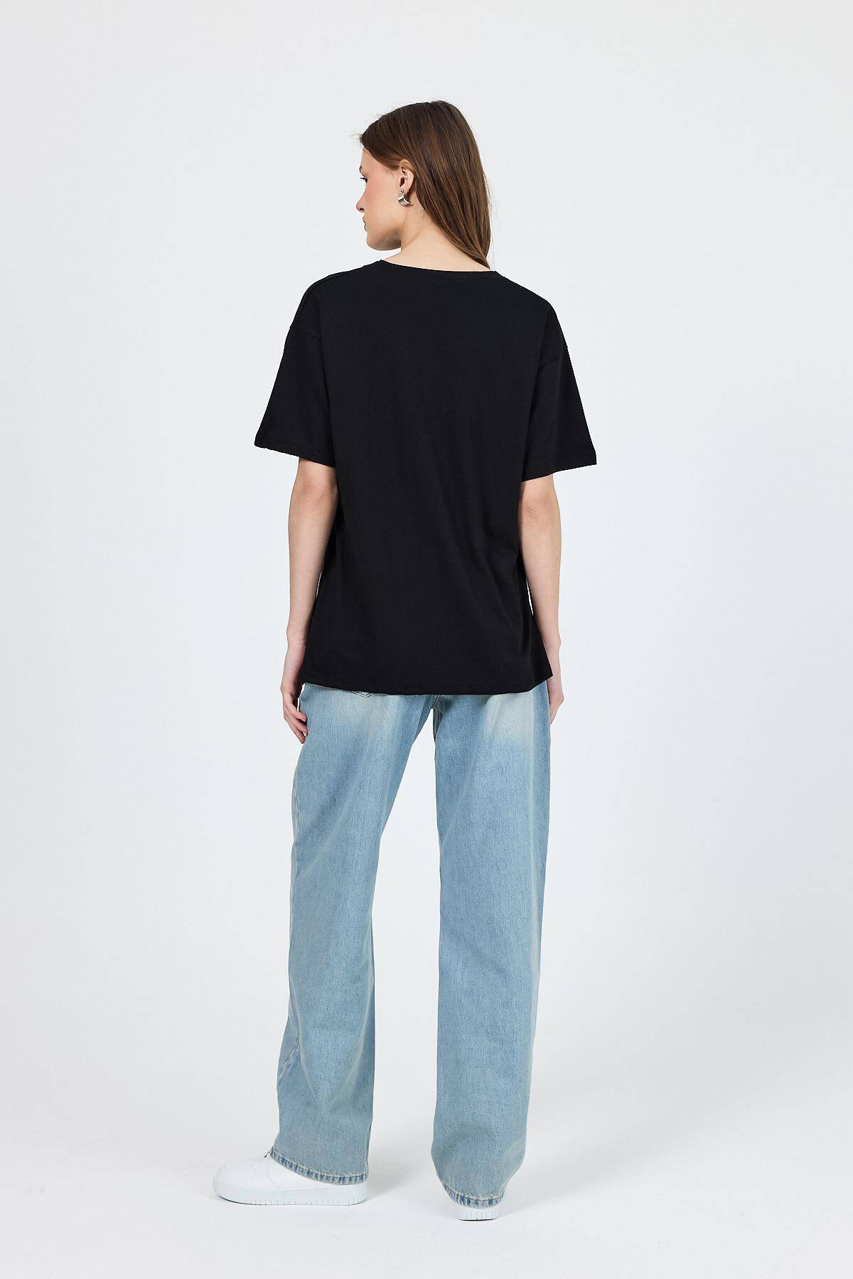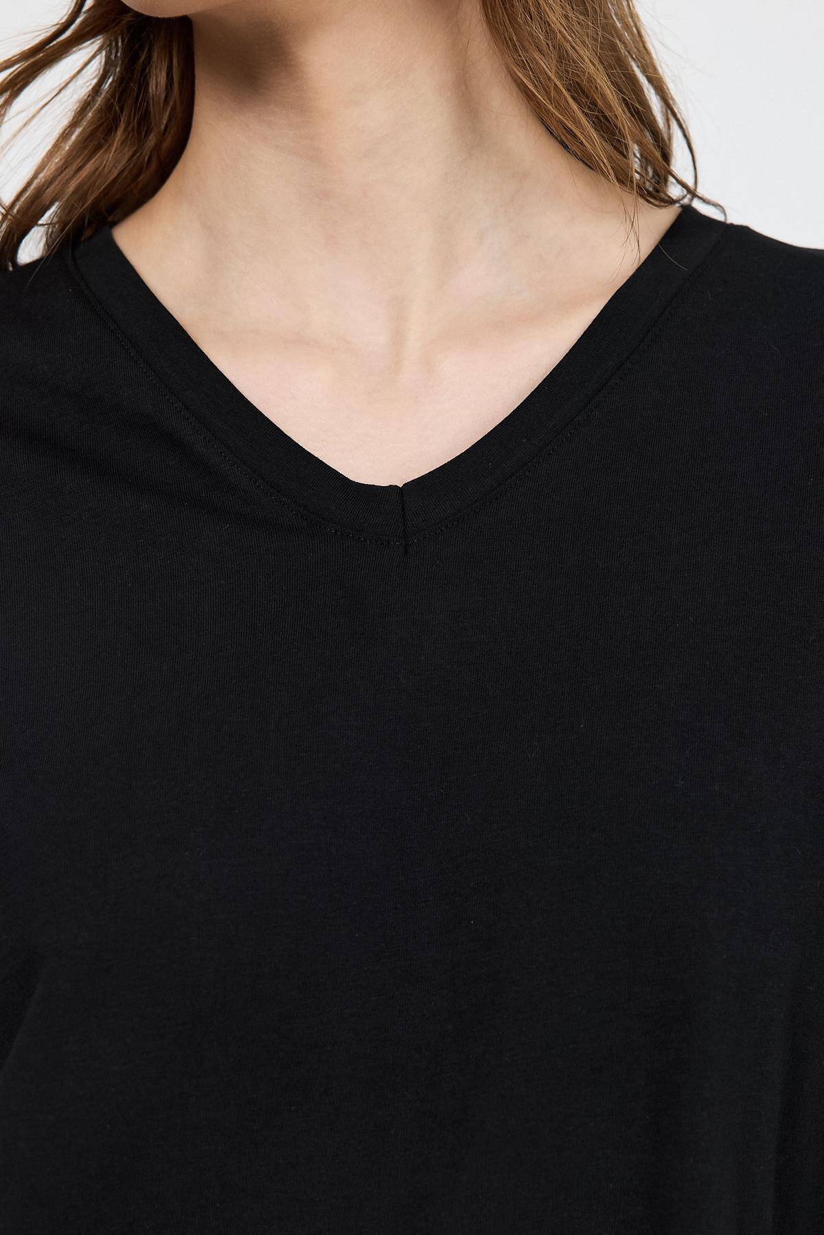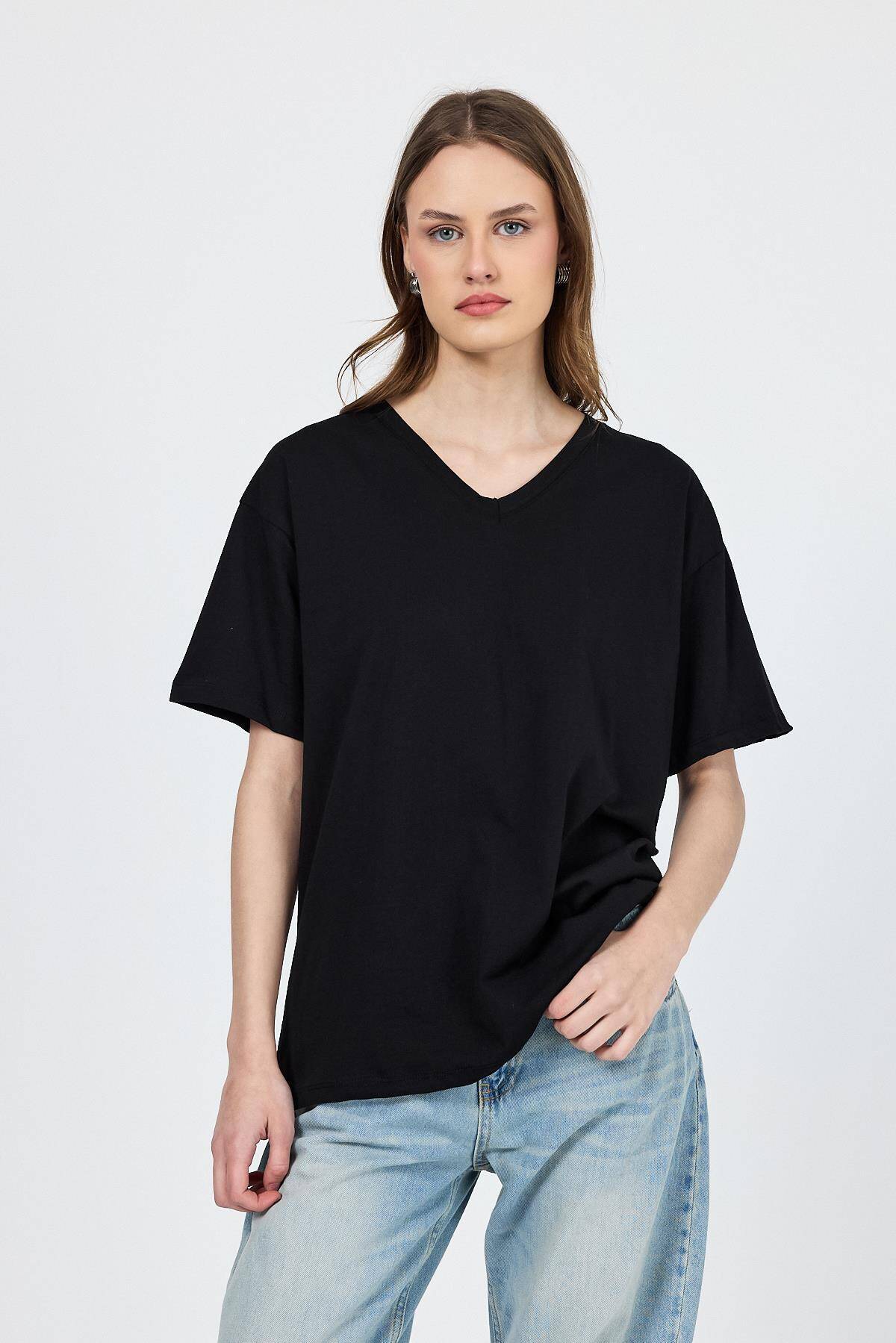 Siyah V Yaka %100 Pamuk Comfort Fit Tişört 2143M