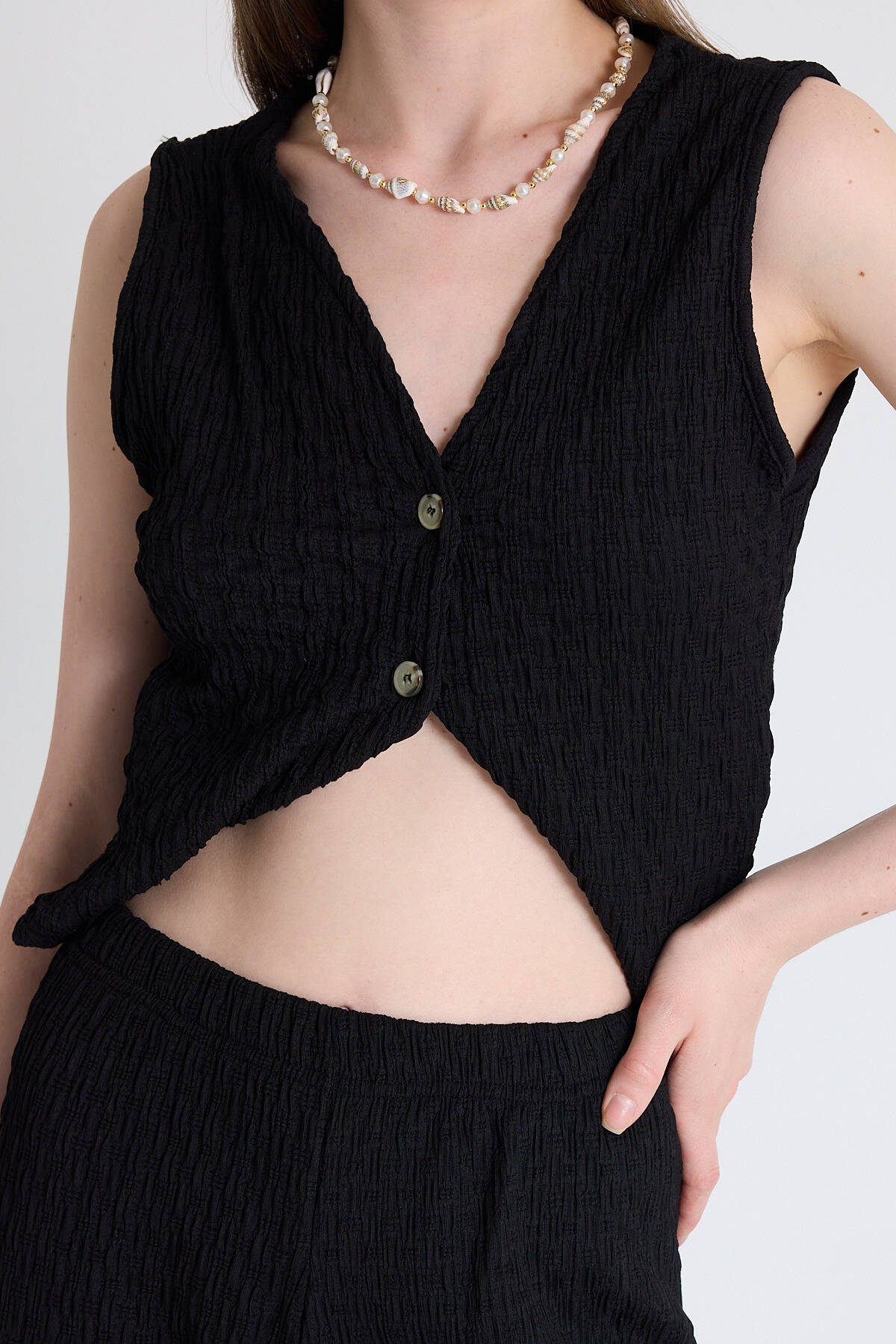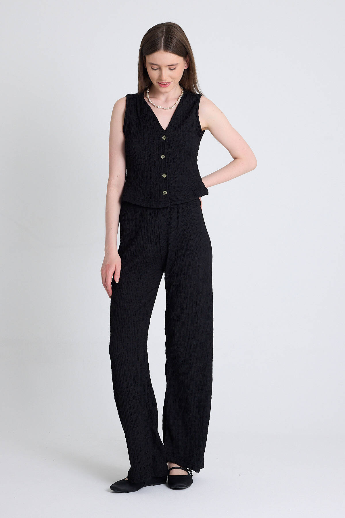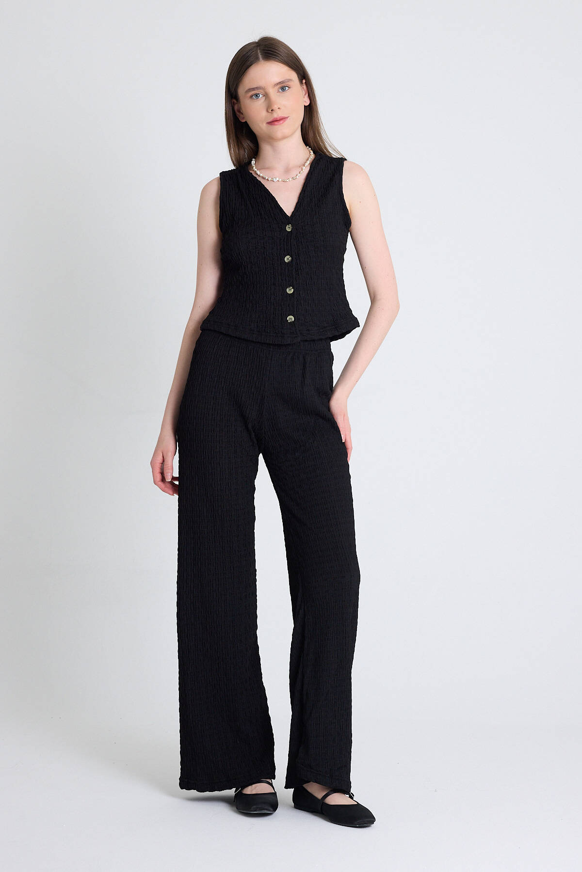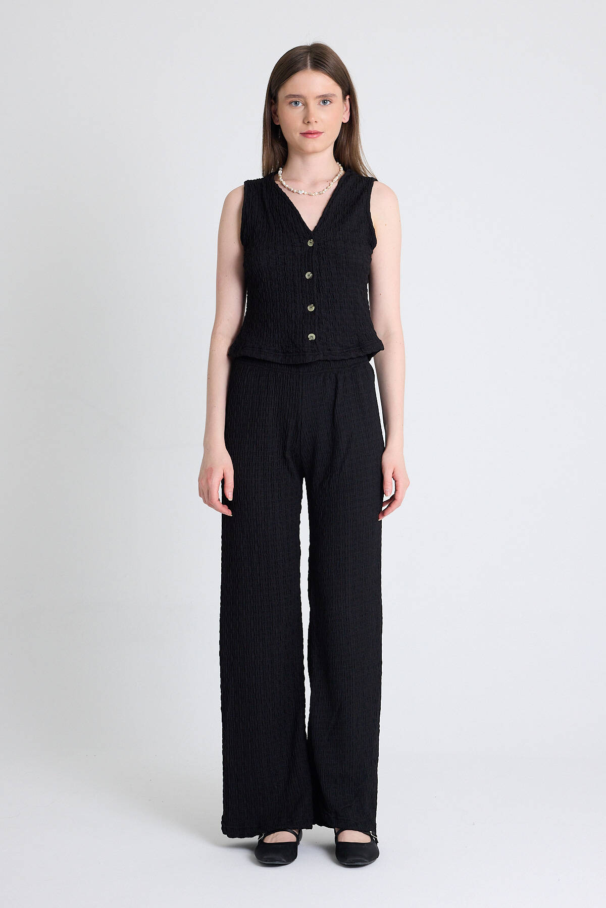 Siyah V Yaka Yelek ve Pantolon Takımı 3000