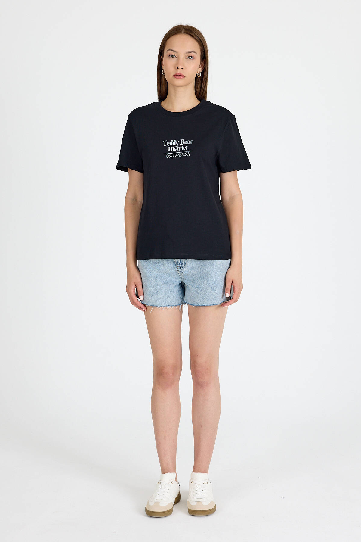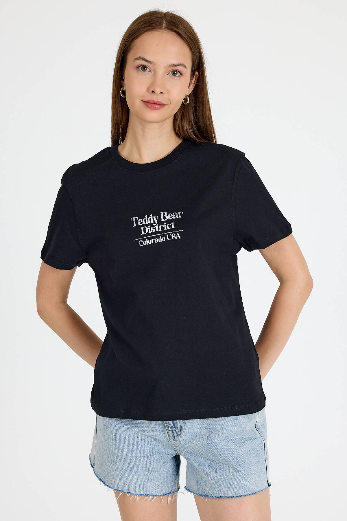 Siyah Yazı Baskılı Oversize Tişört 6462