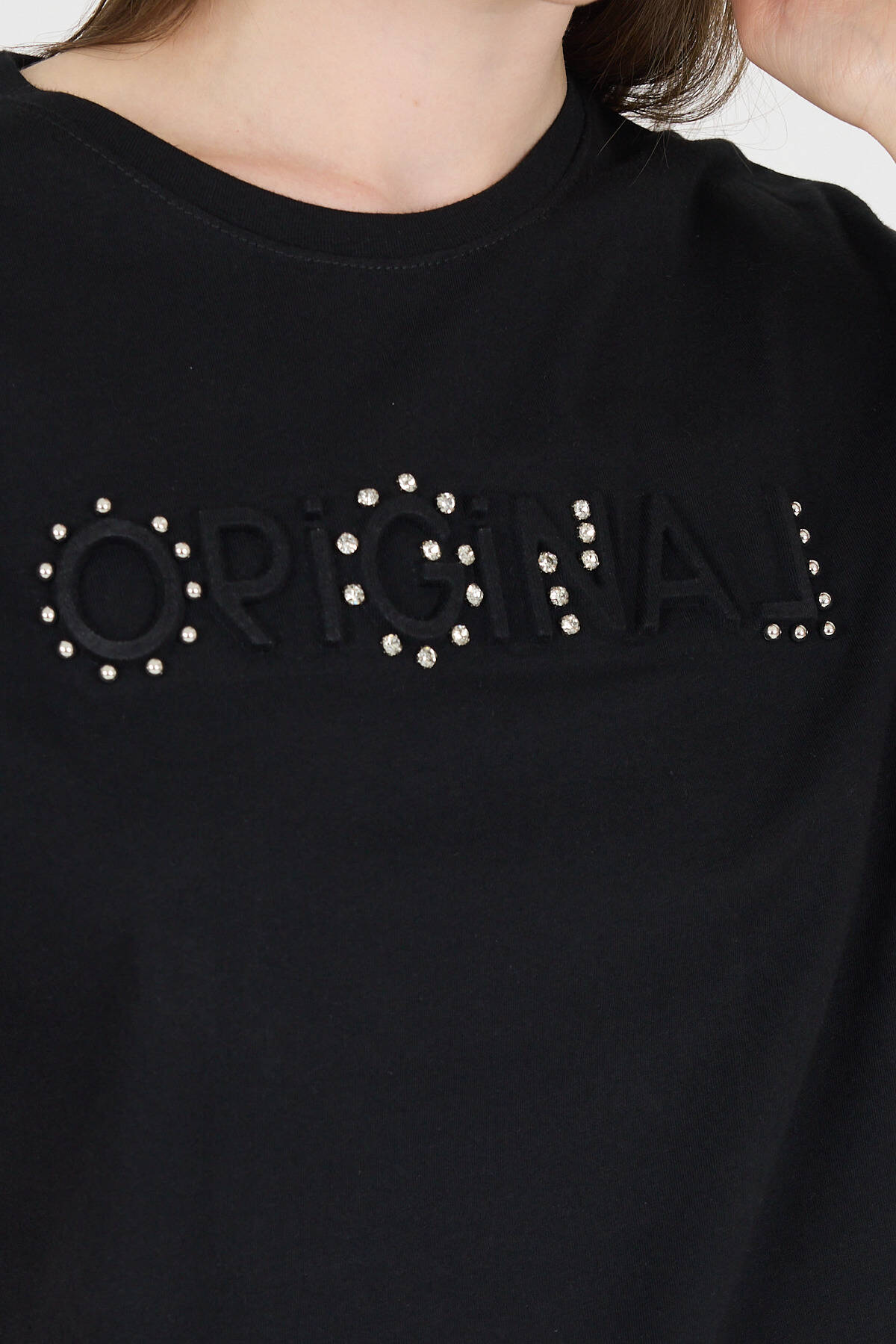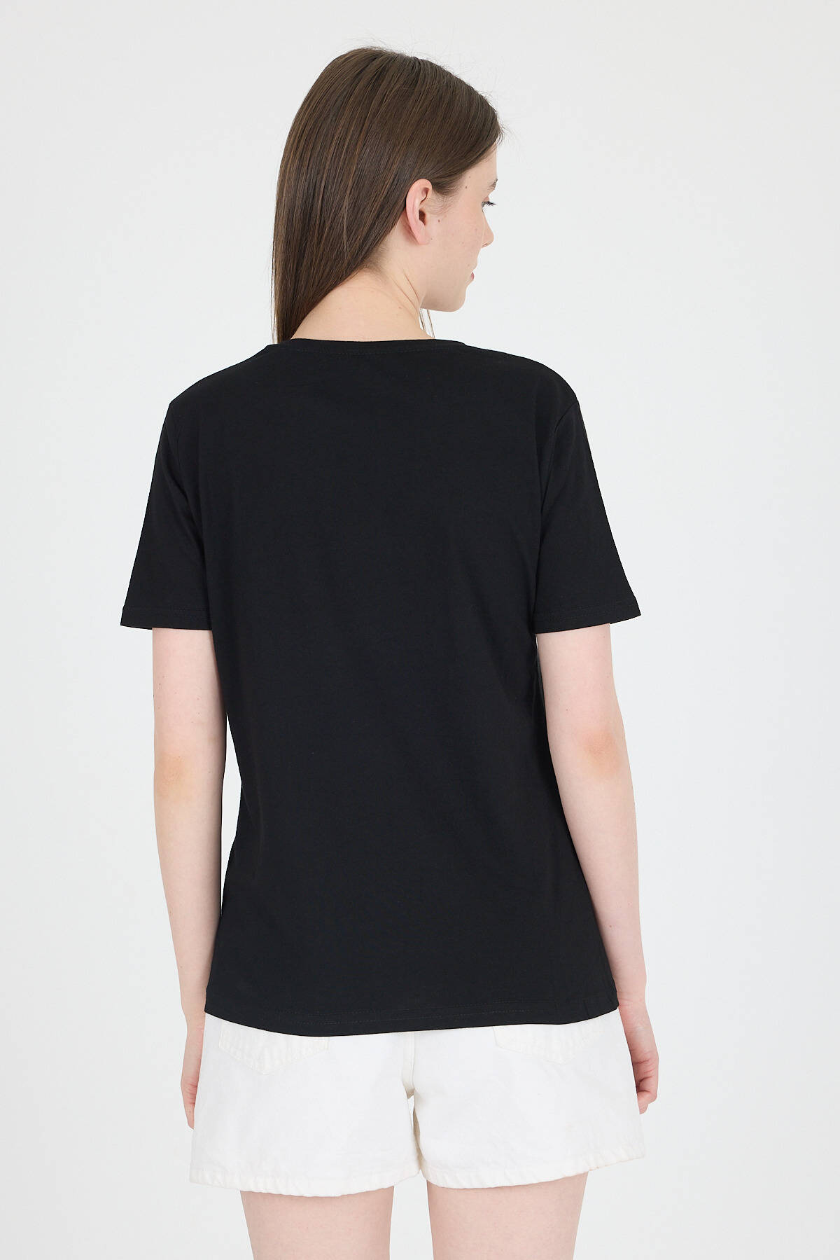 Siyah Yazı Kabartmalı Relaxed Fit Tişört 25224