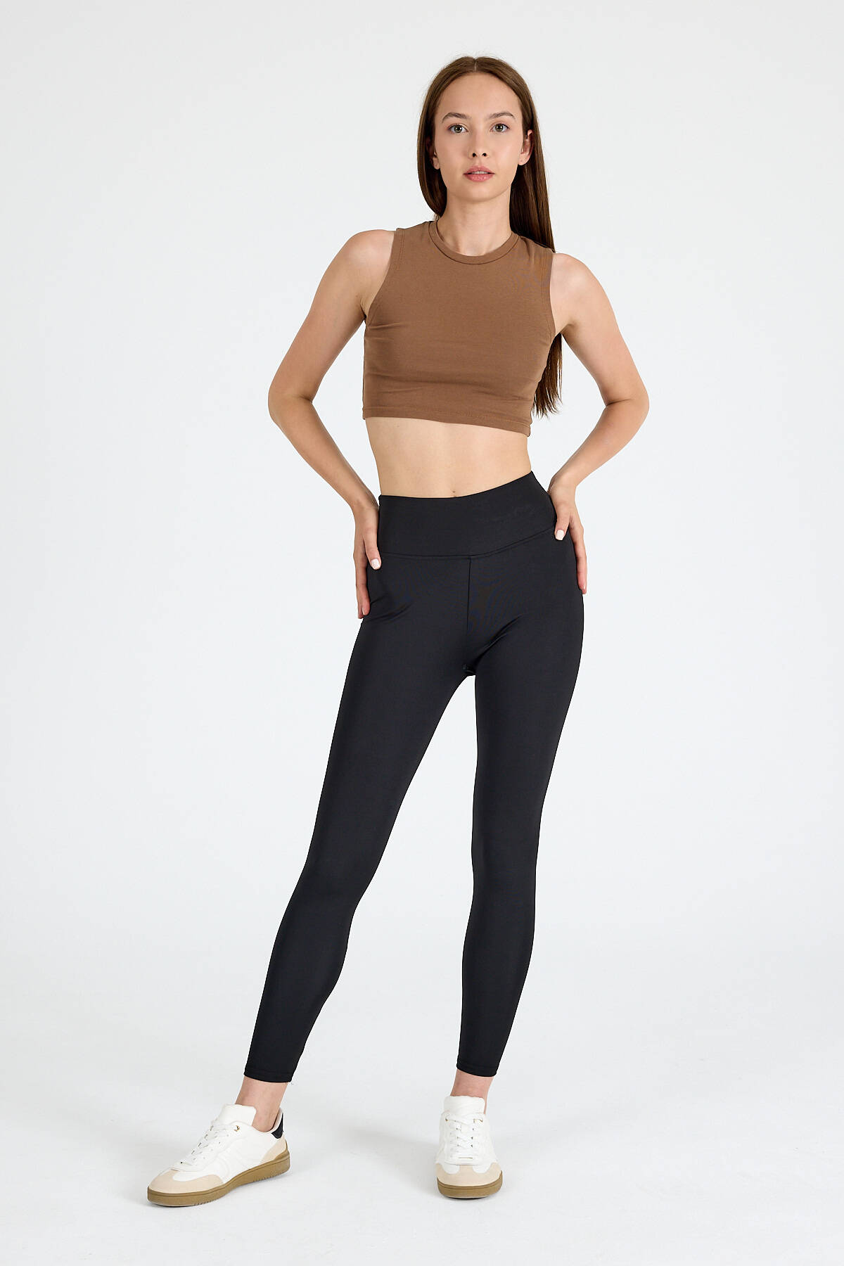 Siyah Yüksek Bel Dikiş Detaylı Tayt 2003