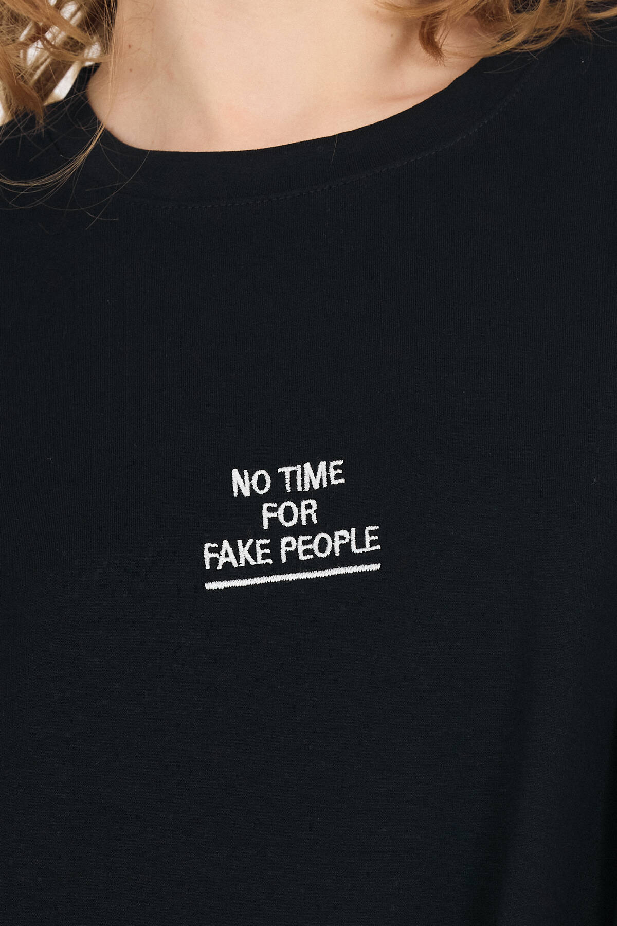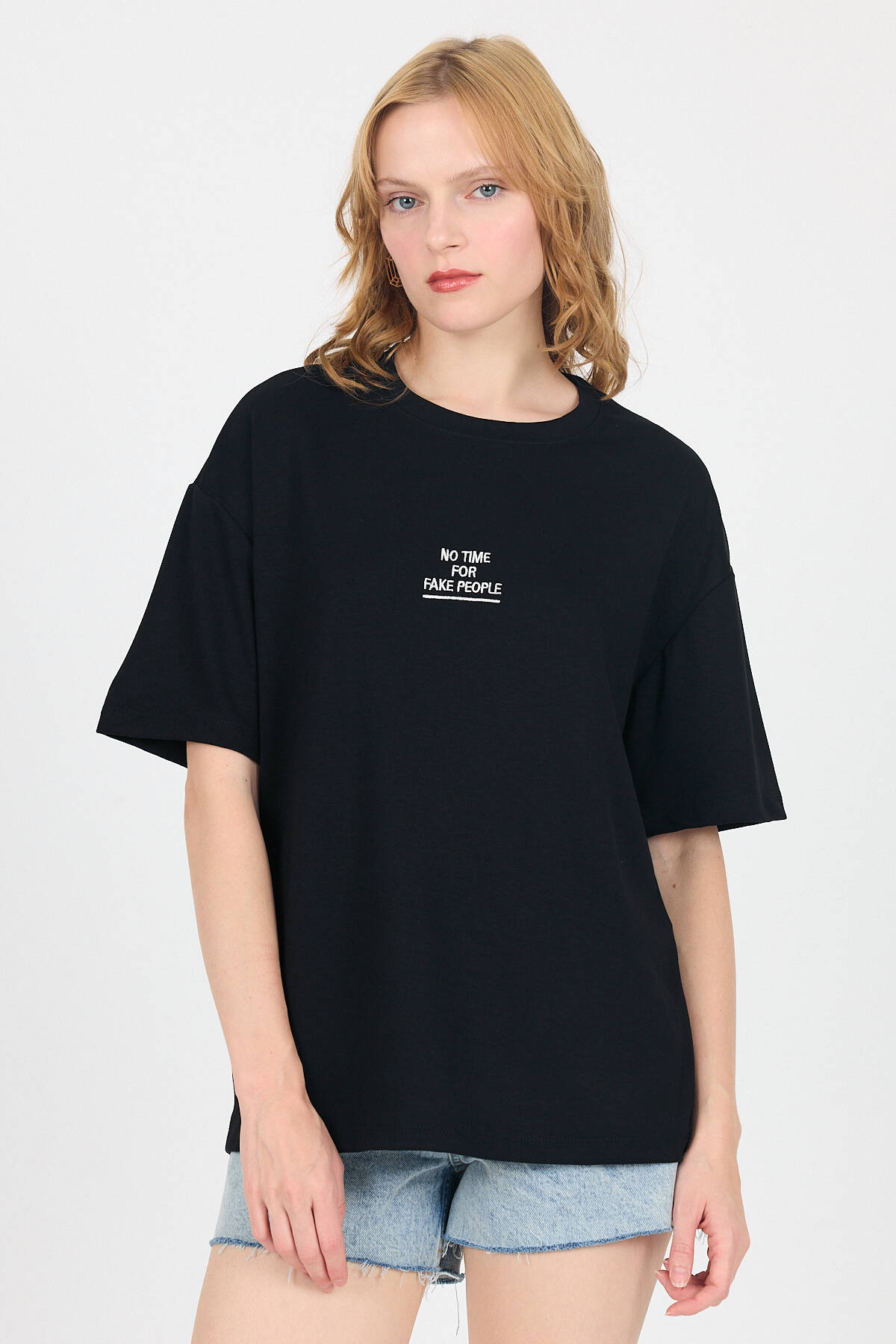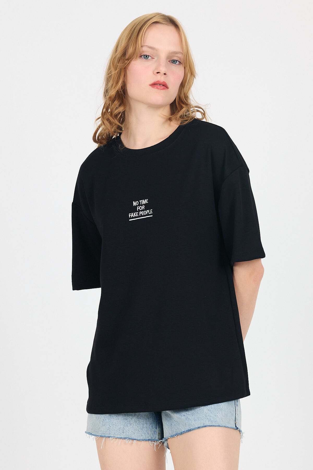 Siyah Yumuşak Dokulu Yazı Baskılı Oversize Tişört 6265