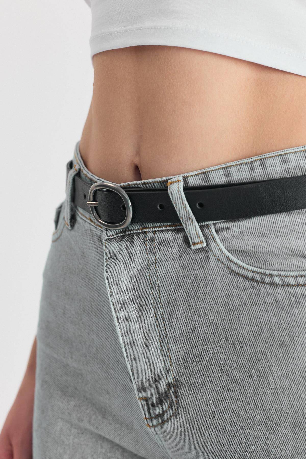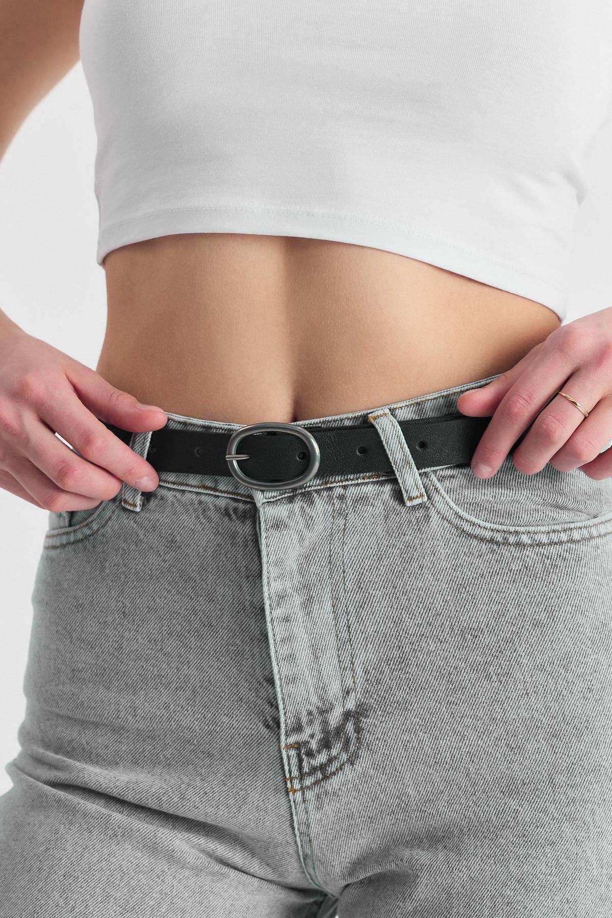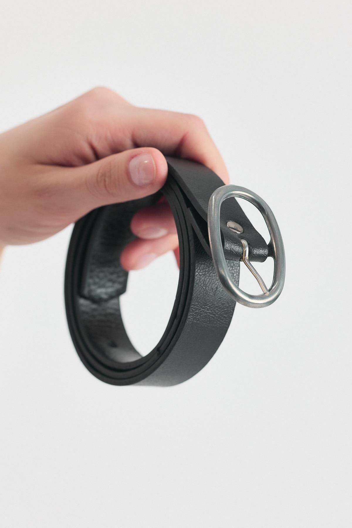 Siyah Yuvarlak Gümüş Tokalı Kemer 415