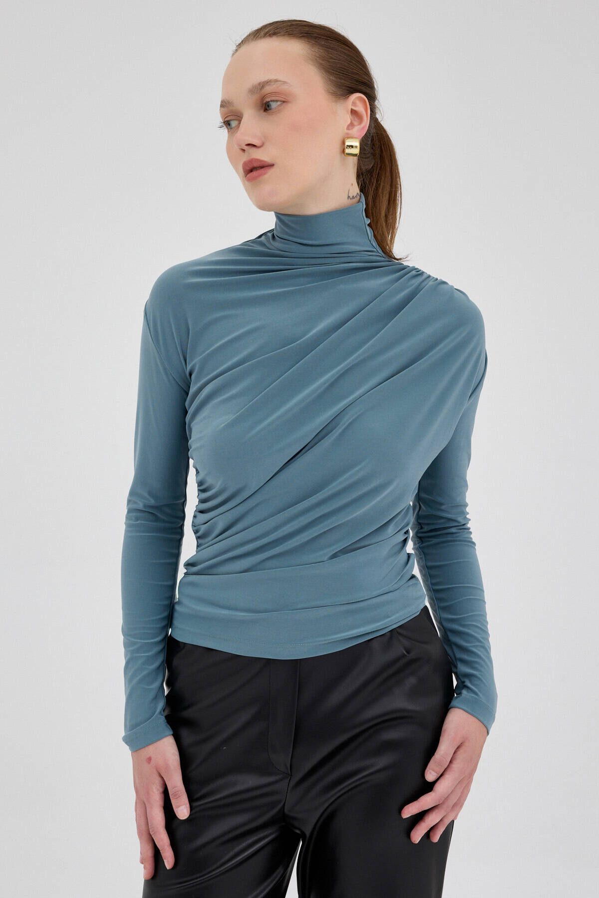 Su Yeşili Büzgü Detay Sandy Bluz 20059