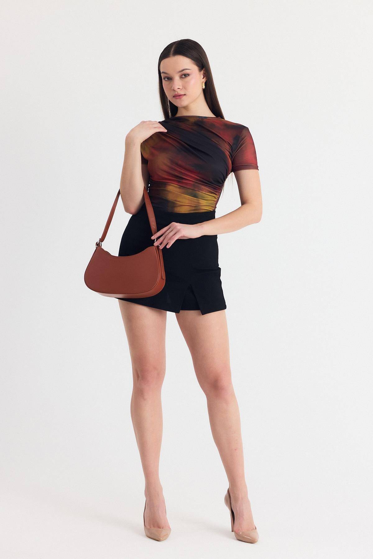 Beyaz Deri Kemer Detaylı Etnik Desenli Kimono 4363A