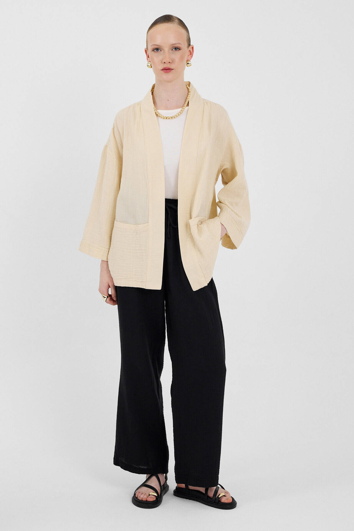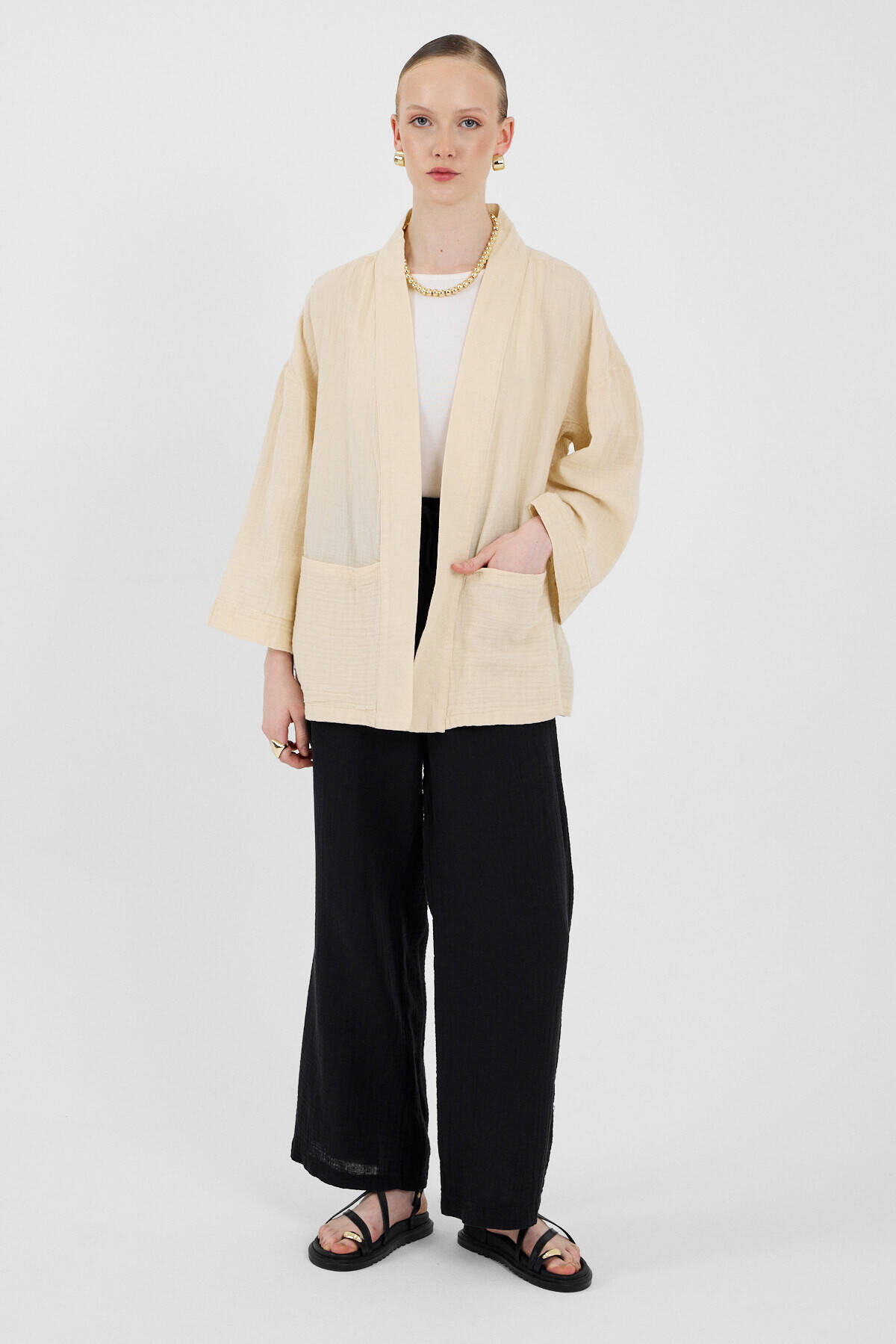 Taş %100 Pamuk Ceplİ Müslin Kimono 8065A