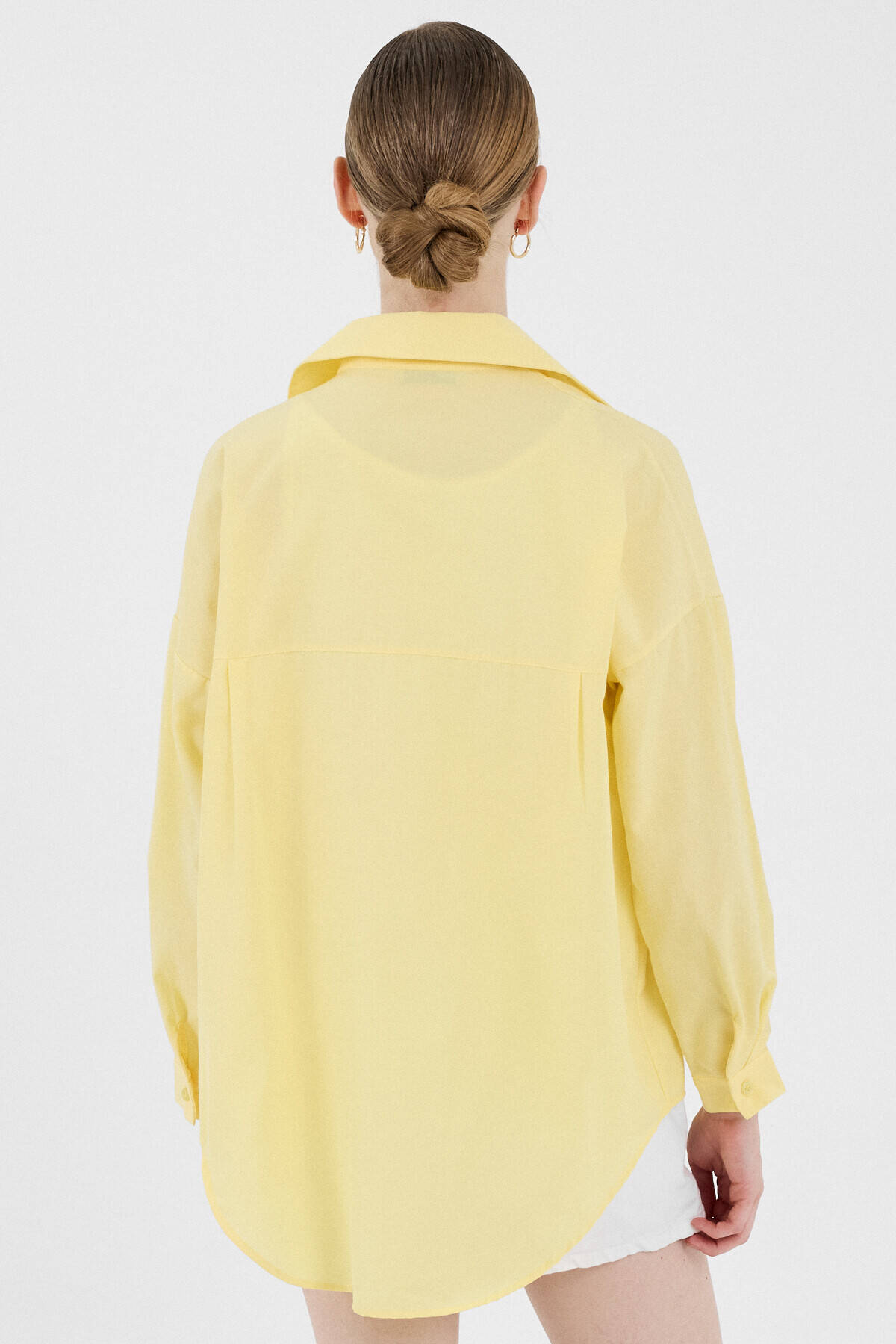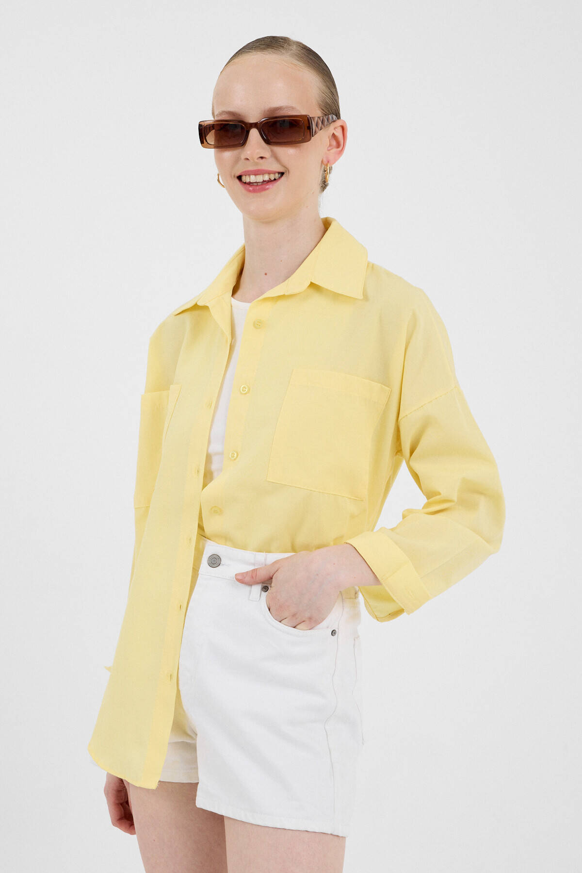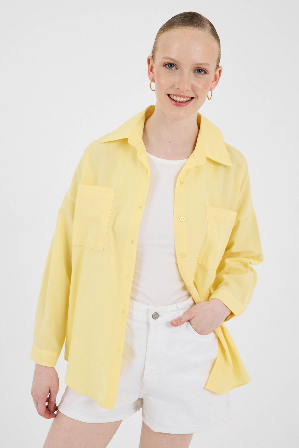 Tereyağ Sarısı Çift Cepli Oversize Uzun Basic Gömlek TCR 6256A