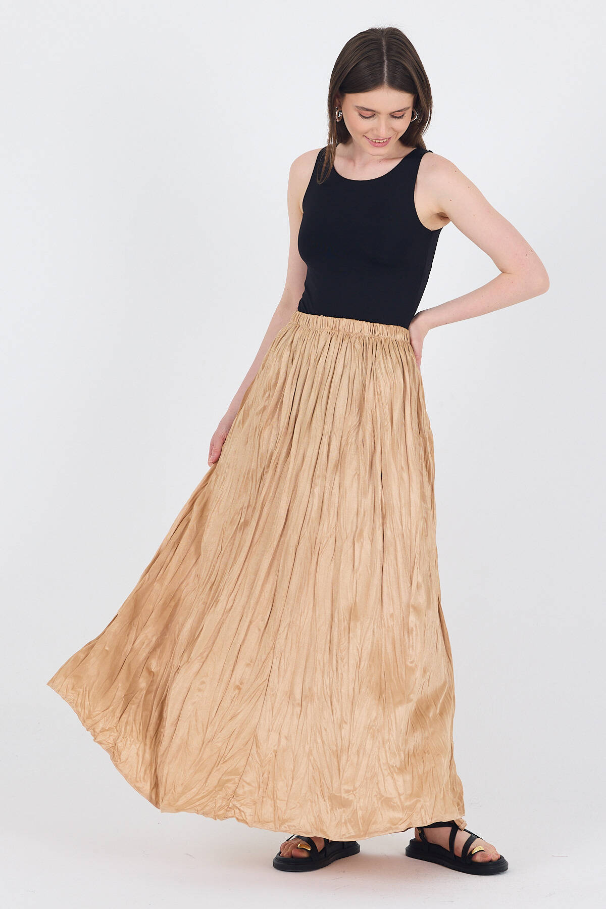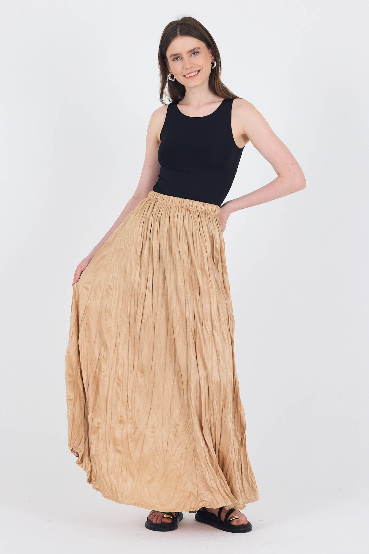 Vizon Bel Lastikli Kırışık Kumaş Etek 3483