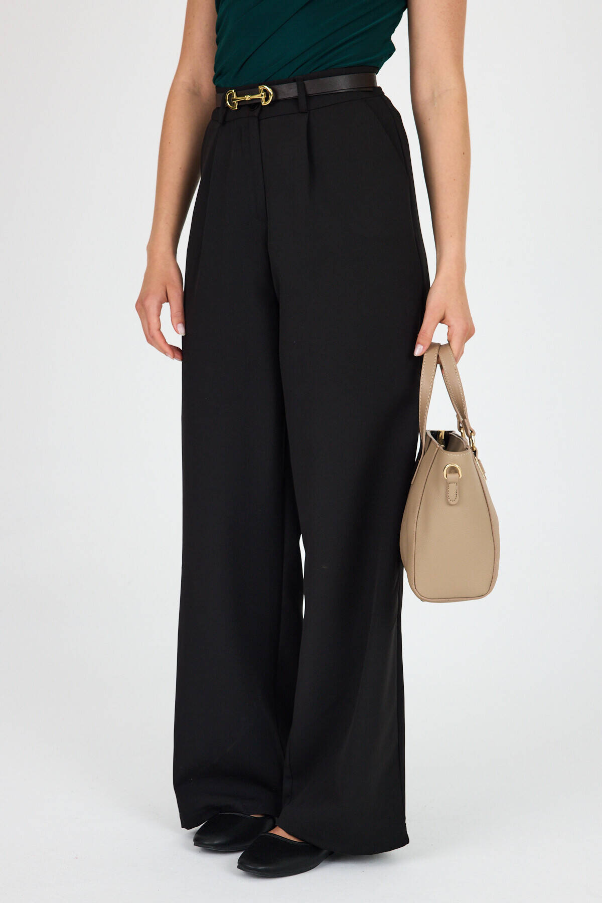 7149A Belden Bağlamalı Uzun Kaşe Kaban Siyah