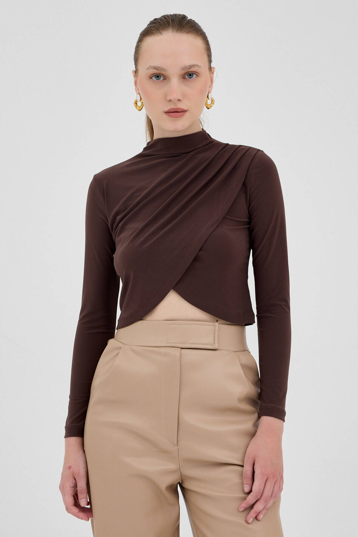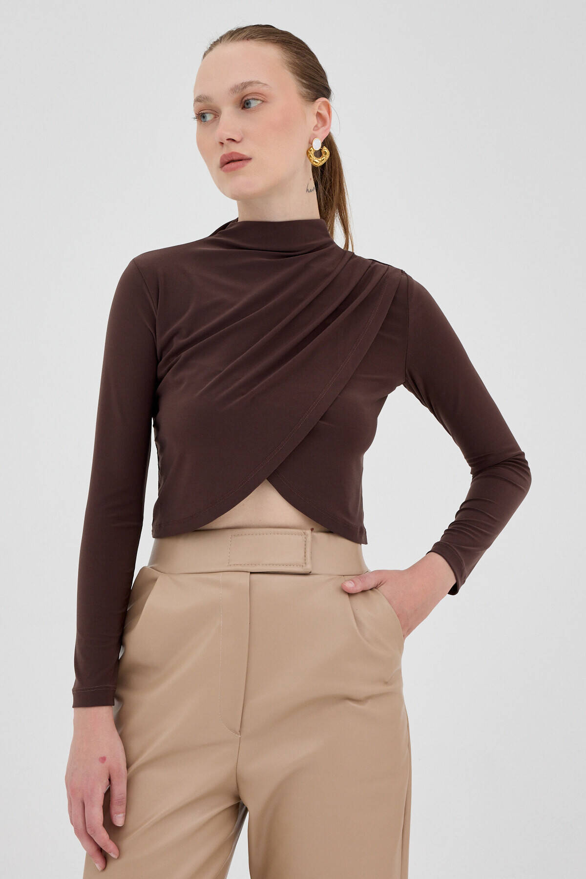 Vizon Drapeli Yüksek Yaka Uzun Kollu Bluz 2379