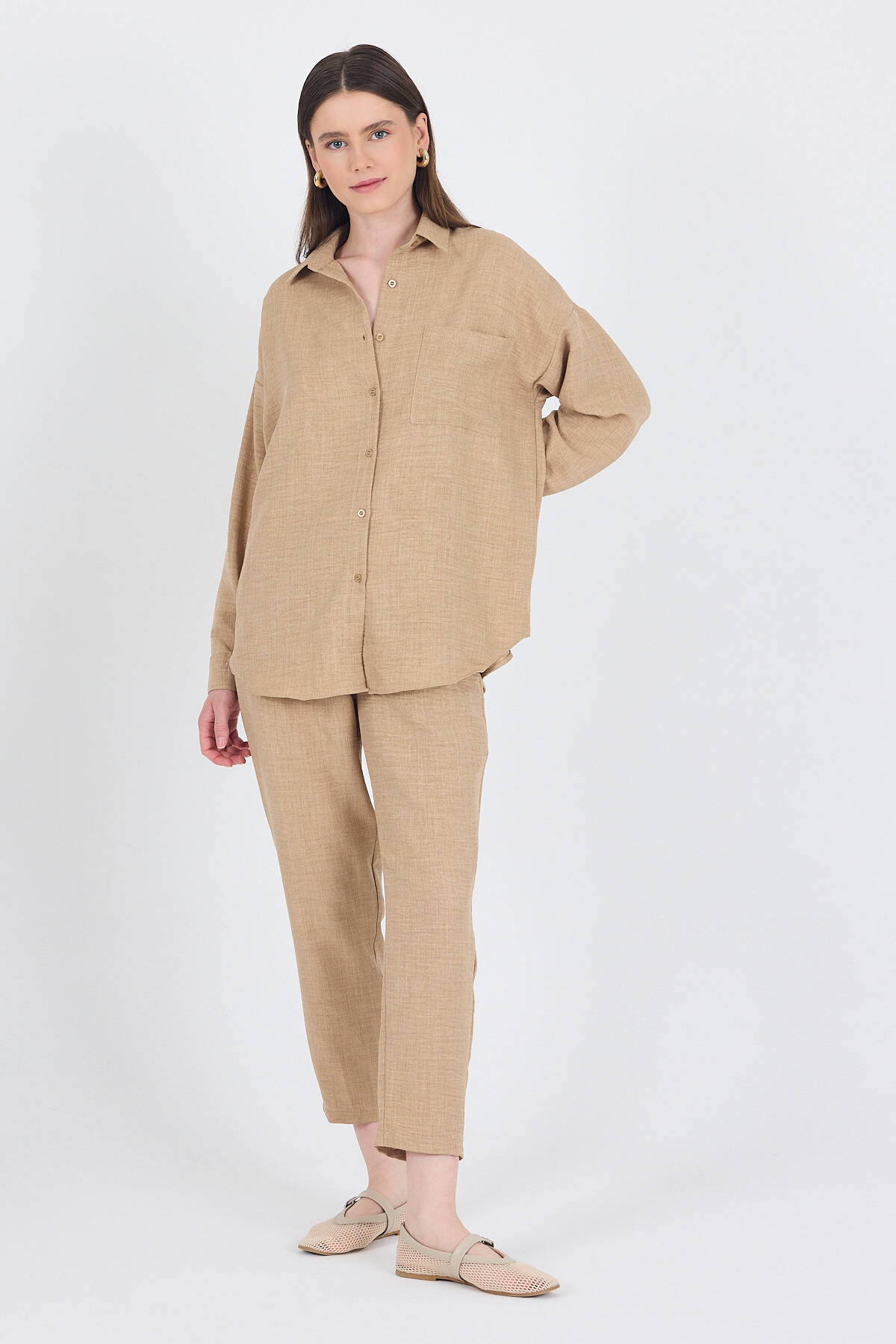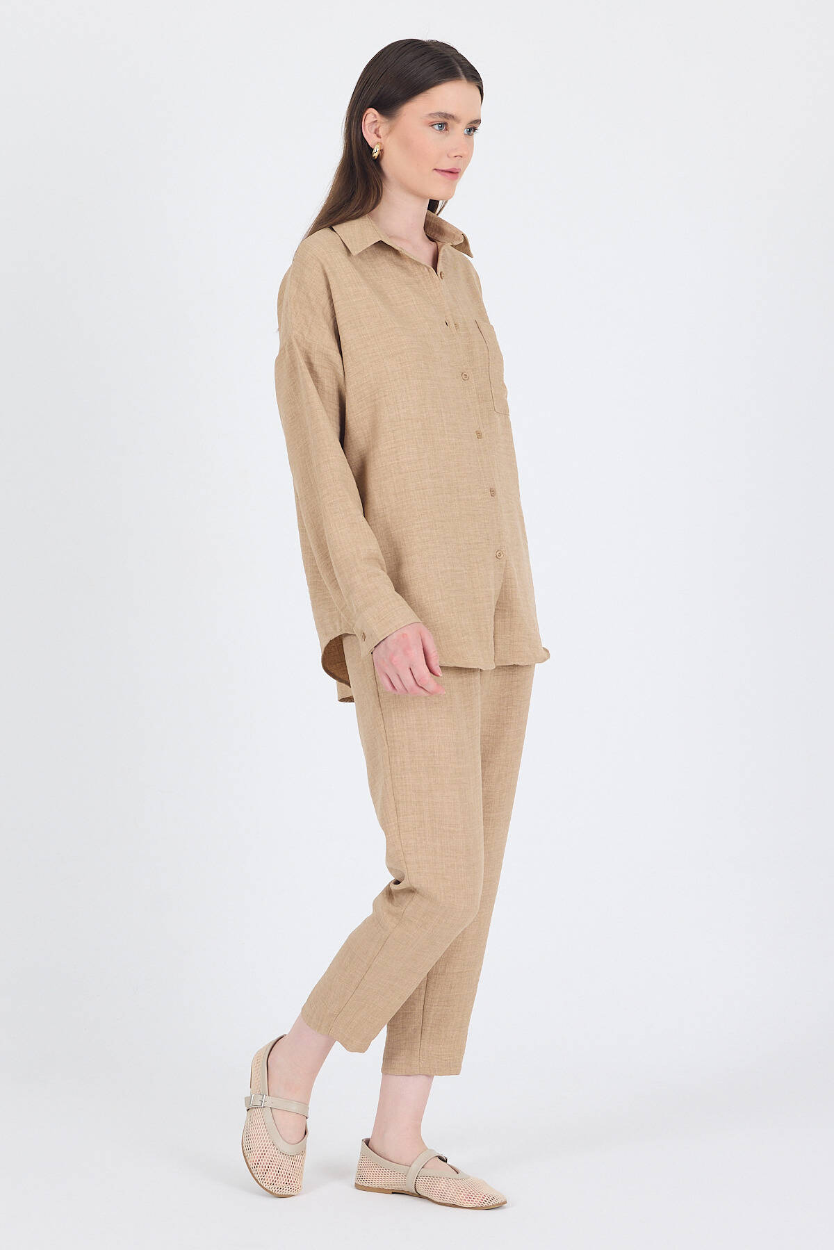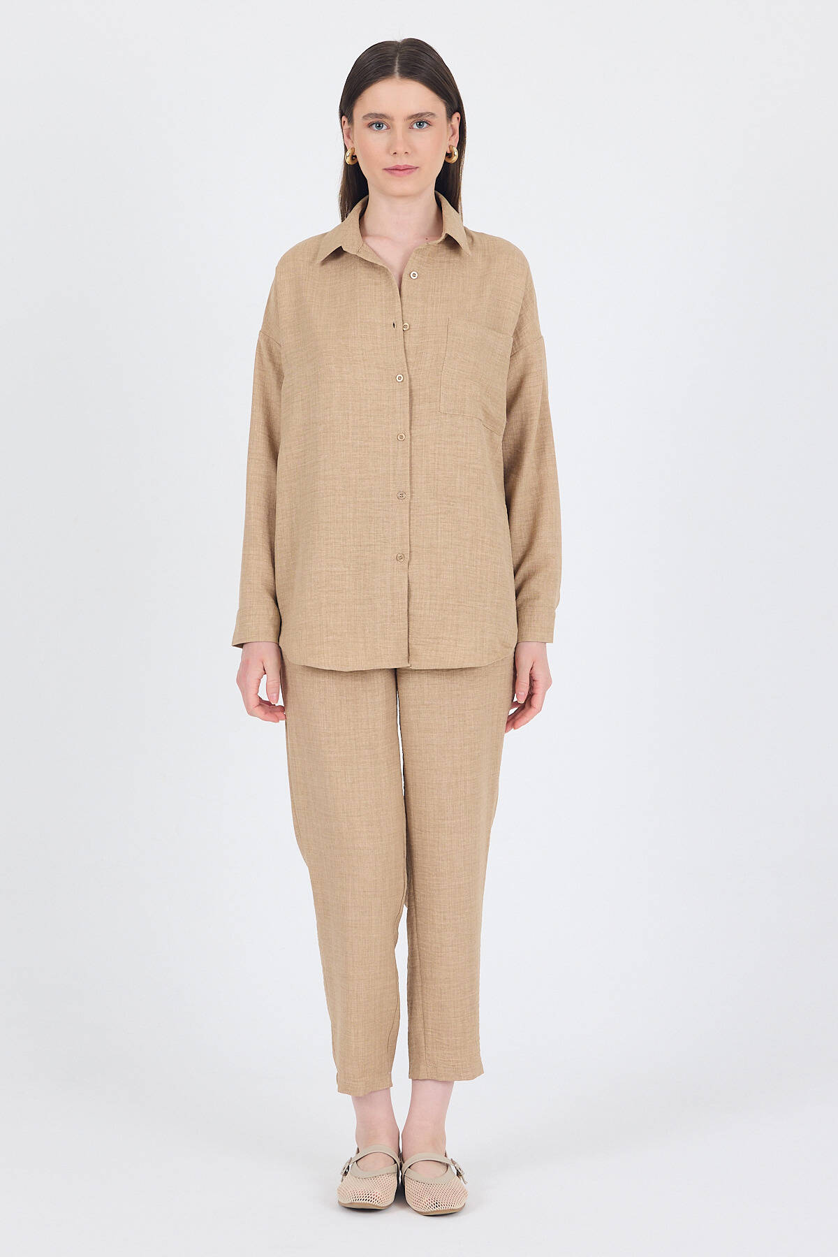 Vizon Gömlek ve Beli Lastikli Pantolon İkili Takım 4813A