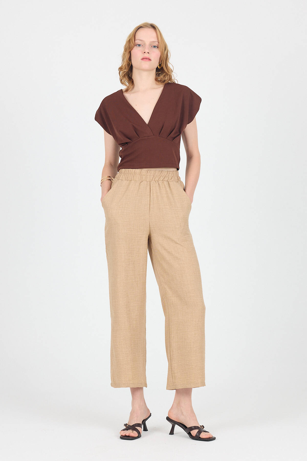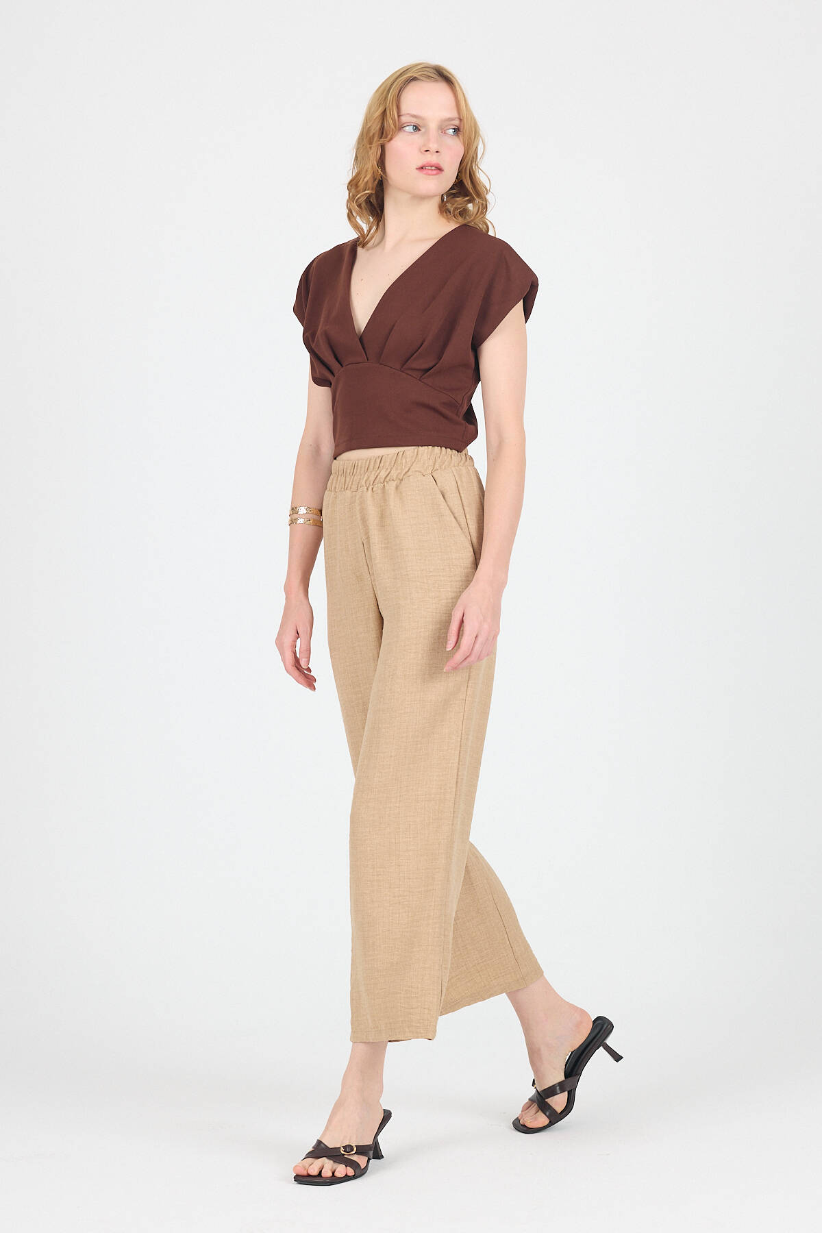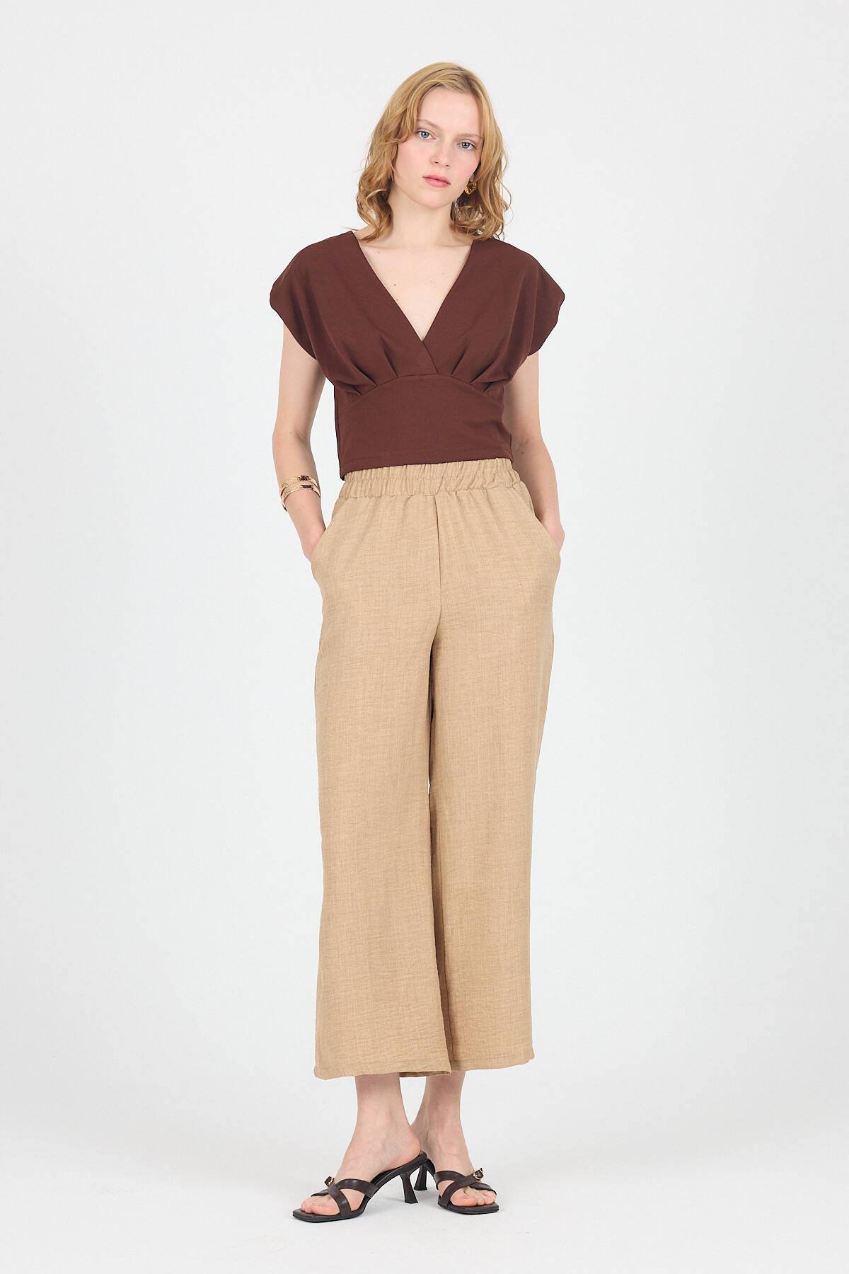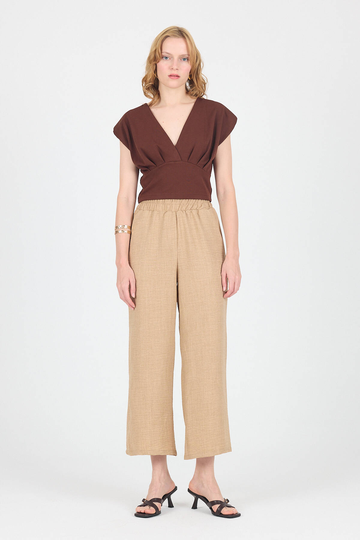 Vizon Pamuklu Bel Lastikli Bol Paça Pantolon 4657