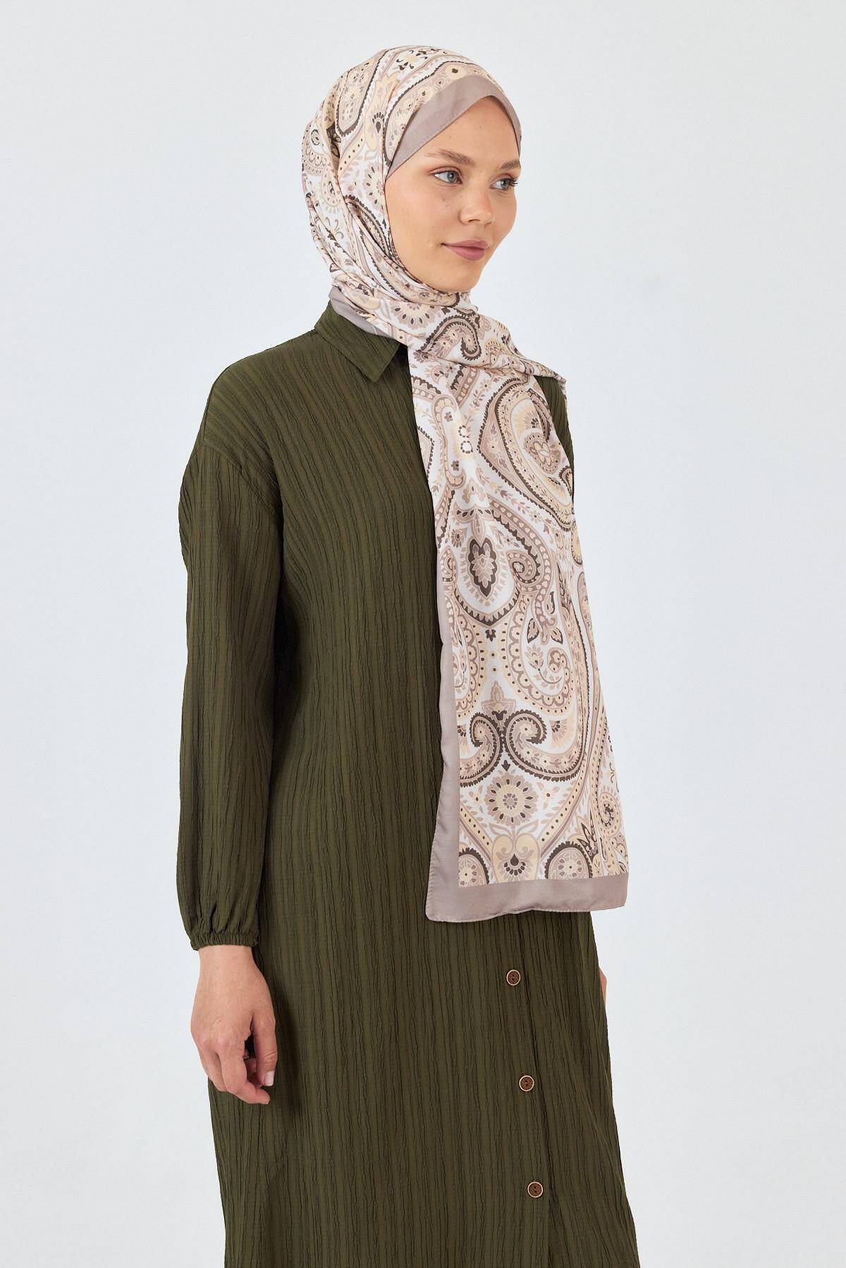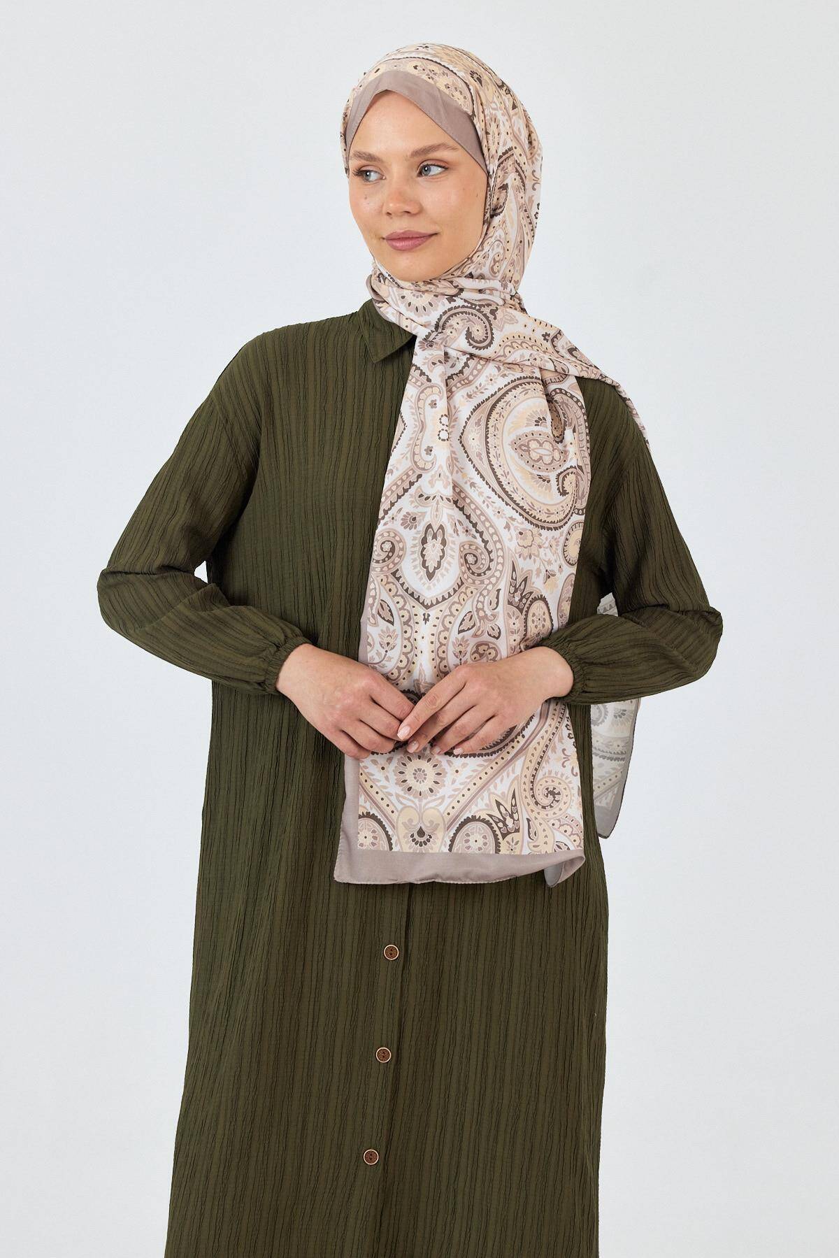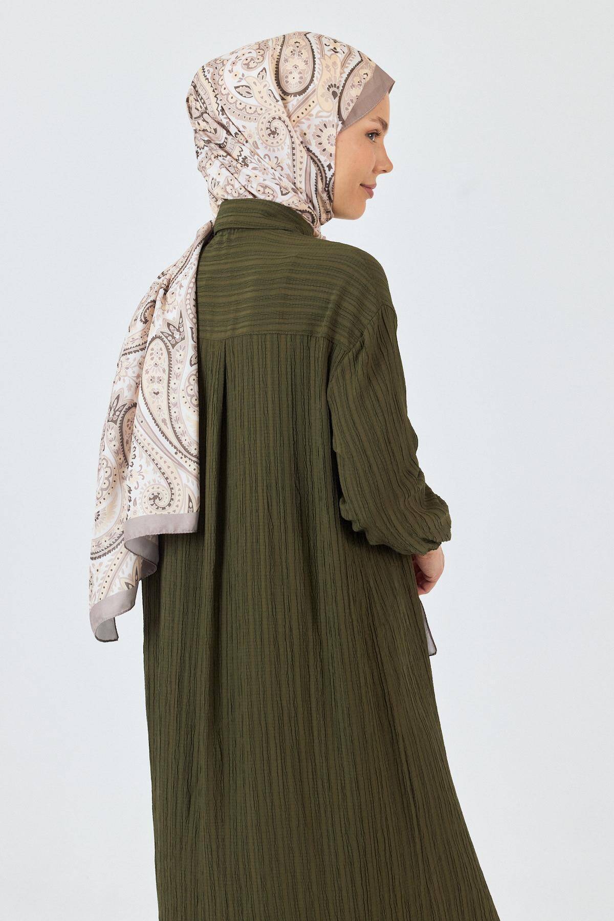 Beyaz Deri Kemer Detaylı Etnik Desenli Kimono 4363A