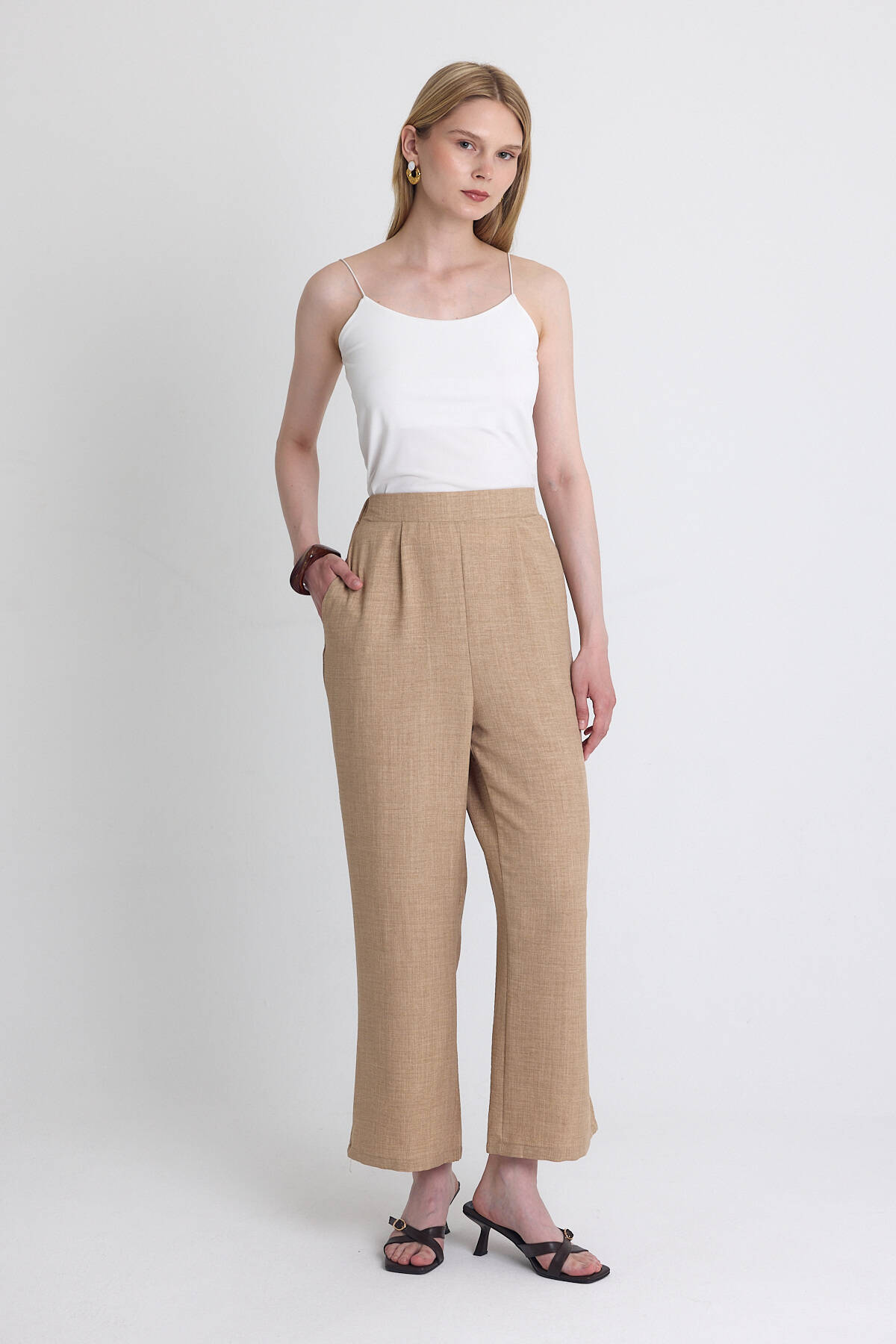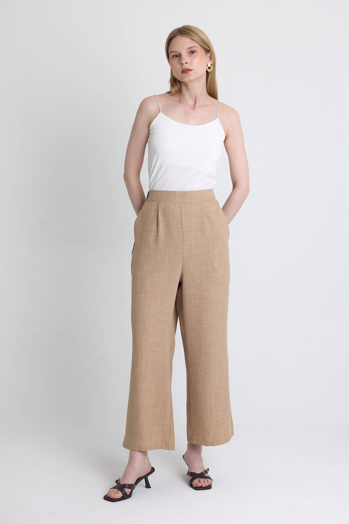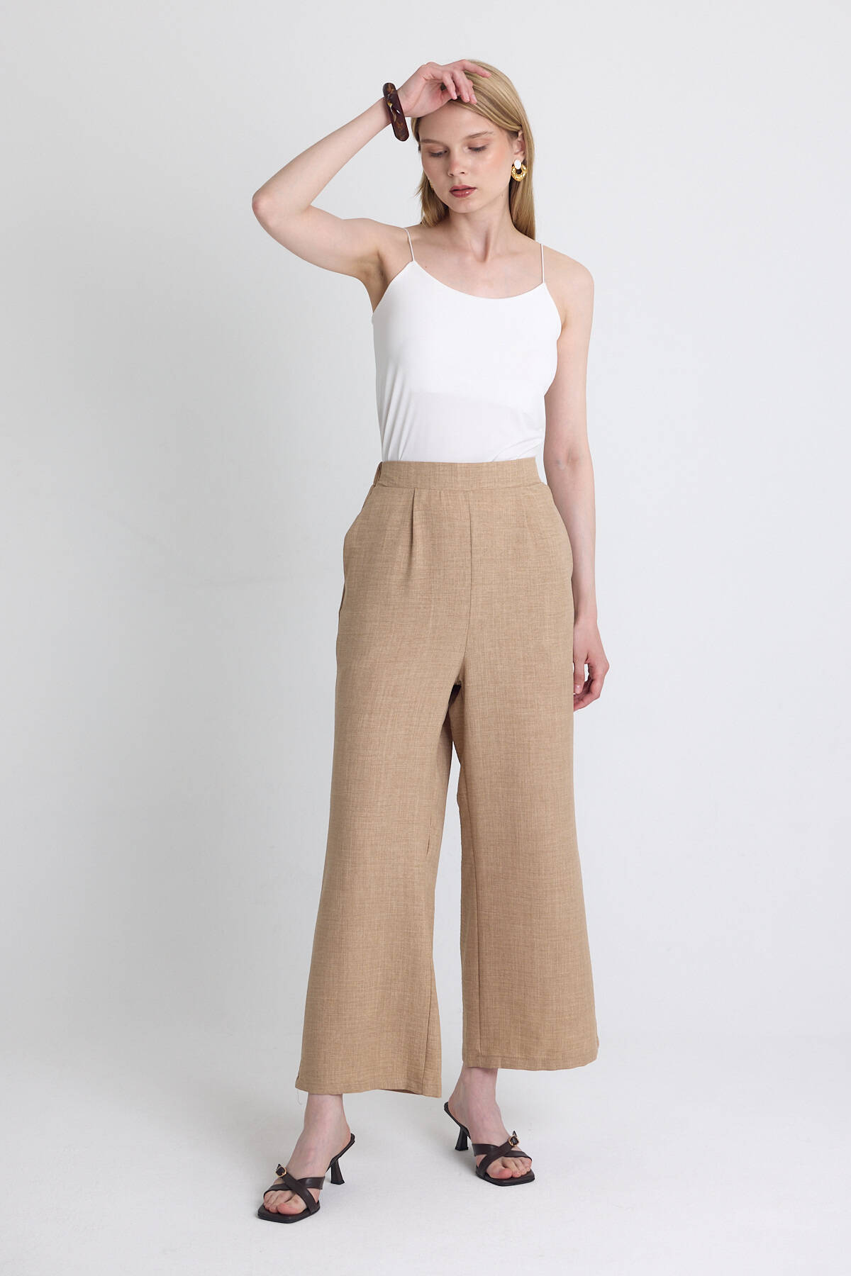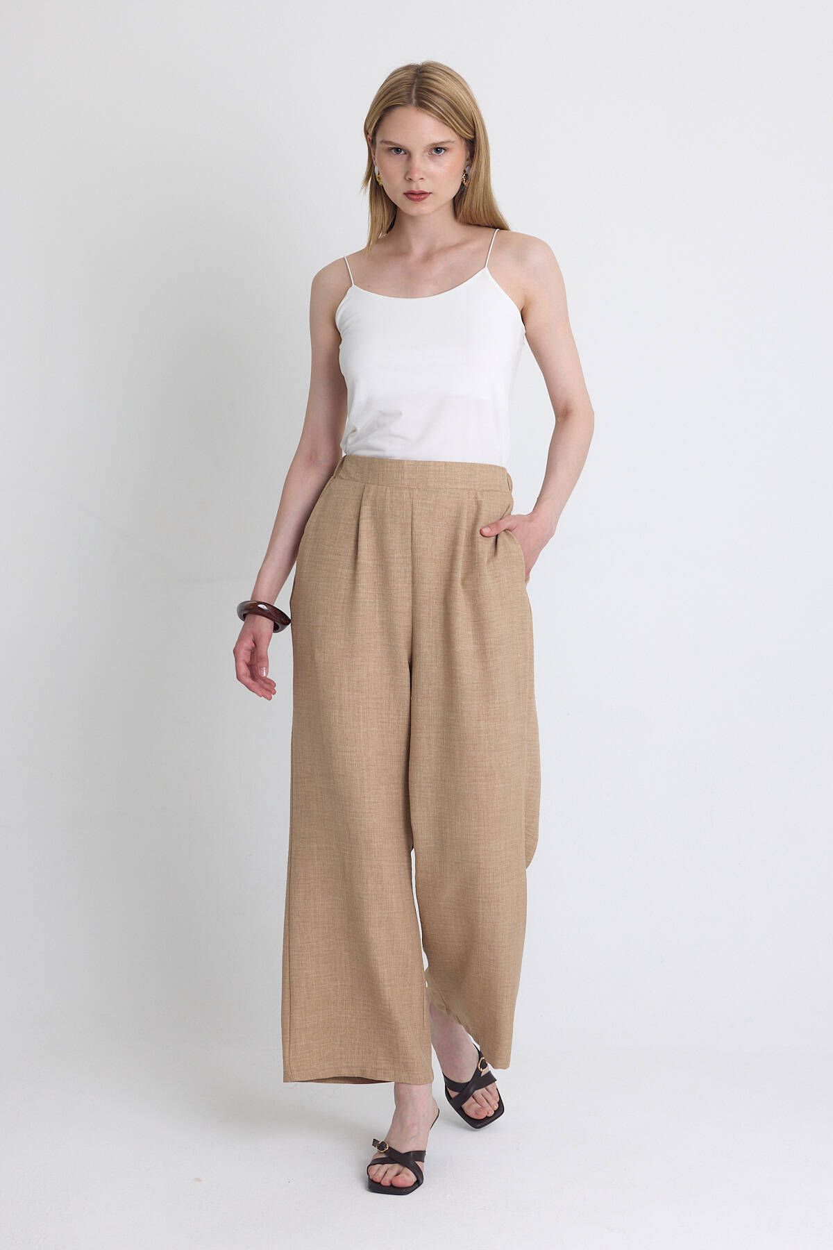 Vizon Yüksek Bel Ön Pile Detaylı Pamuklu Bol Paça Pantolon 8014A