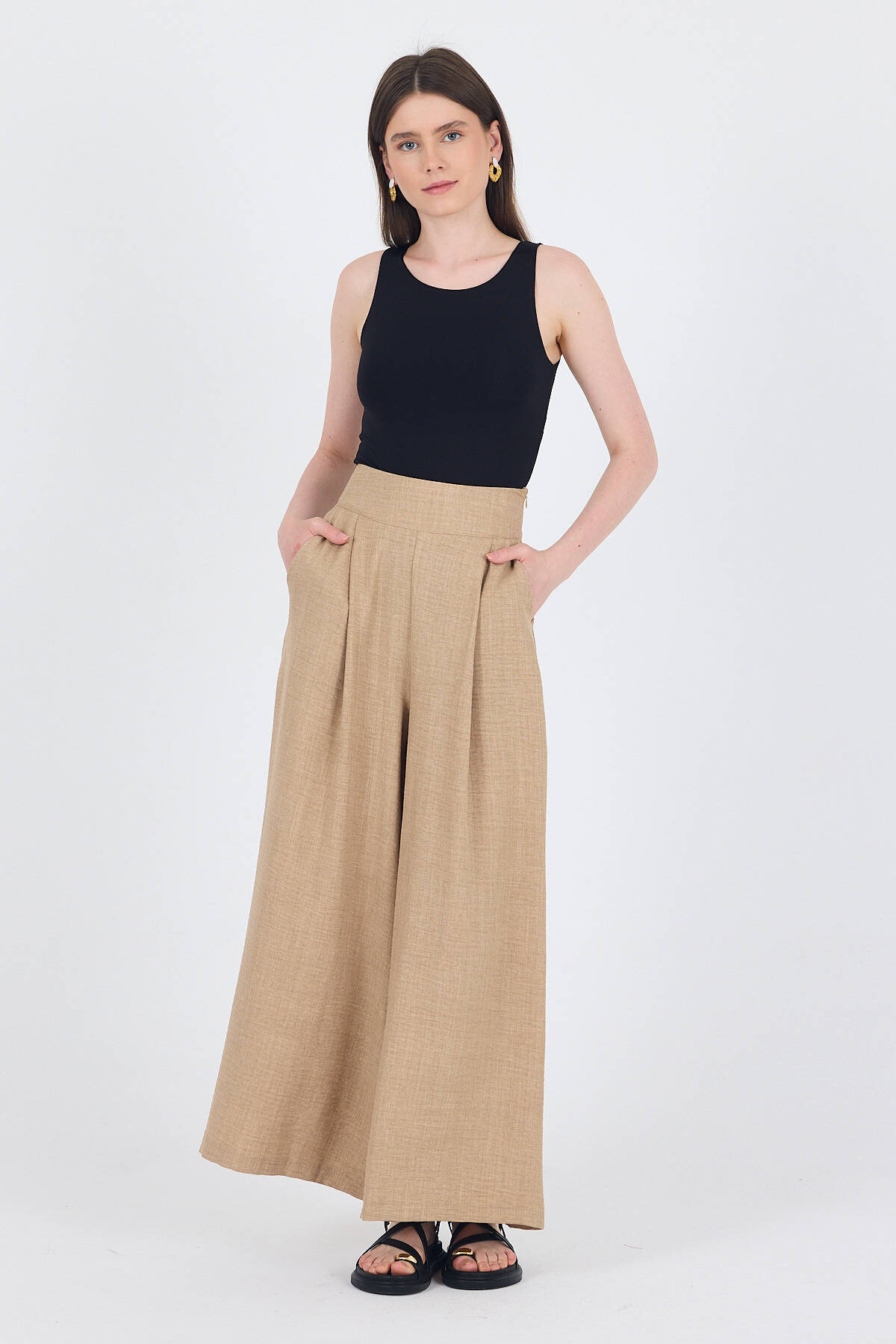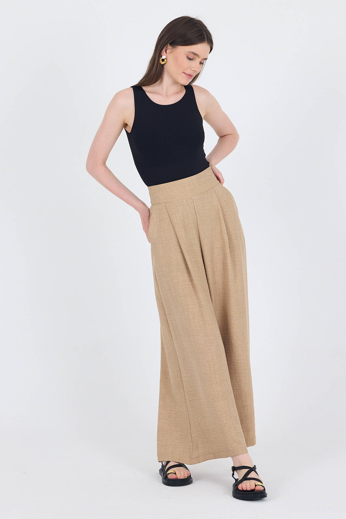 Vizon Yüksek Bel Pile Detaylı Bol Paça Pantolon 4810A