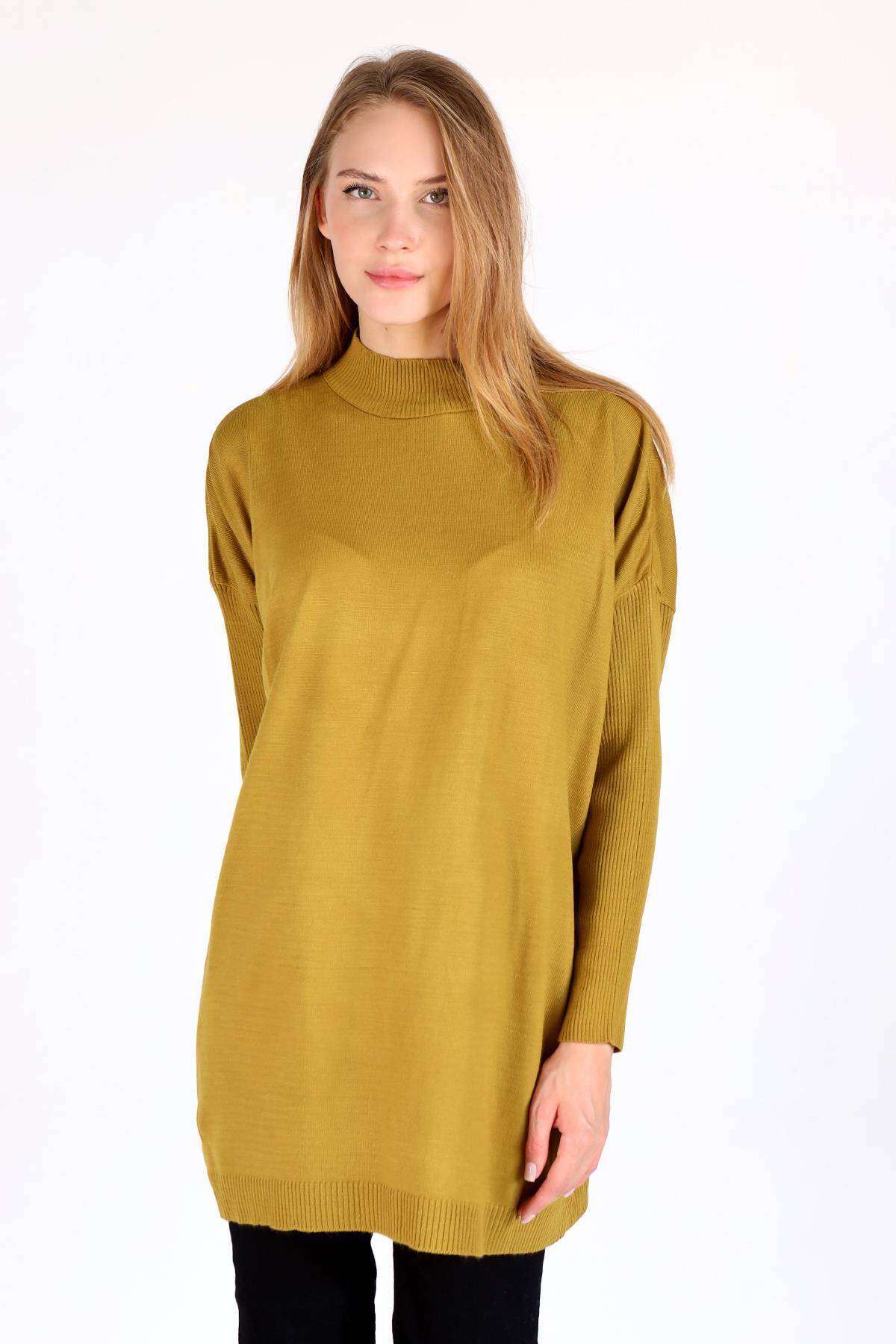 Yağ Yeşili Balıkçı Yaka Triko Tunik 5315