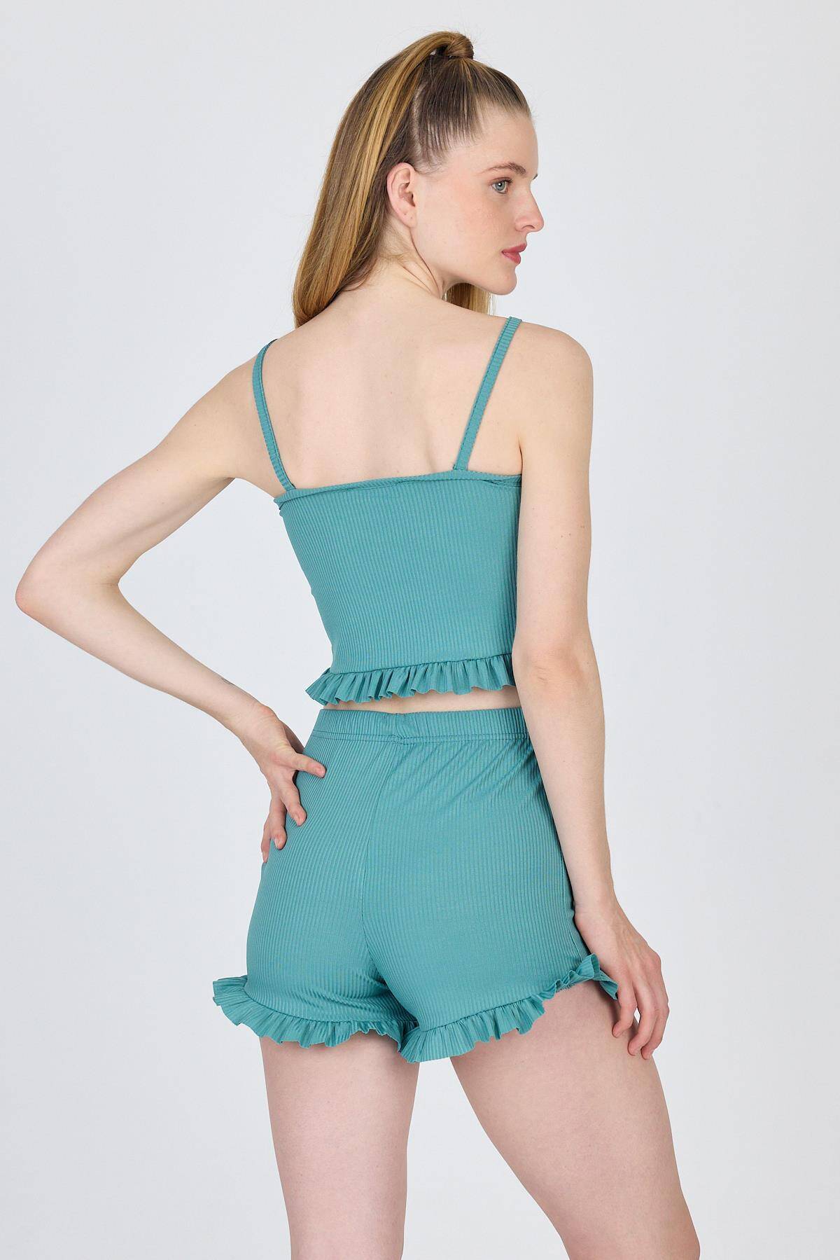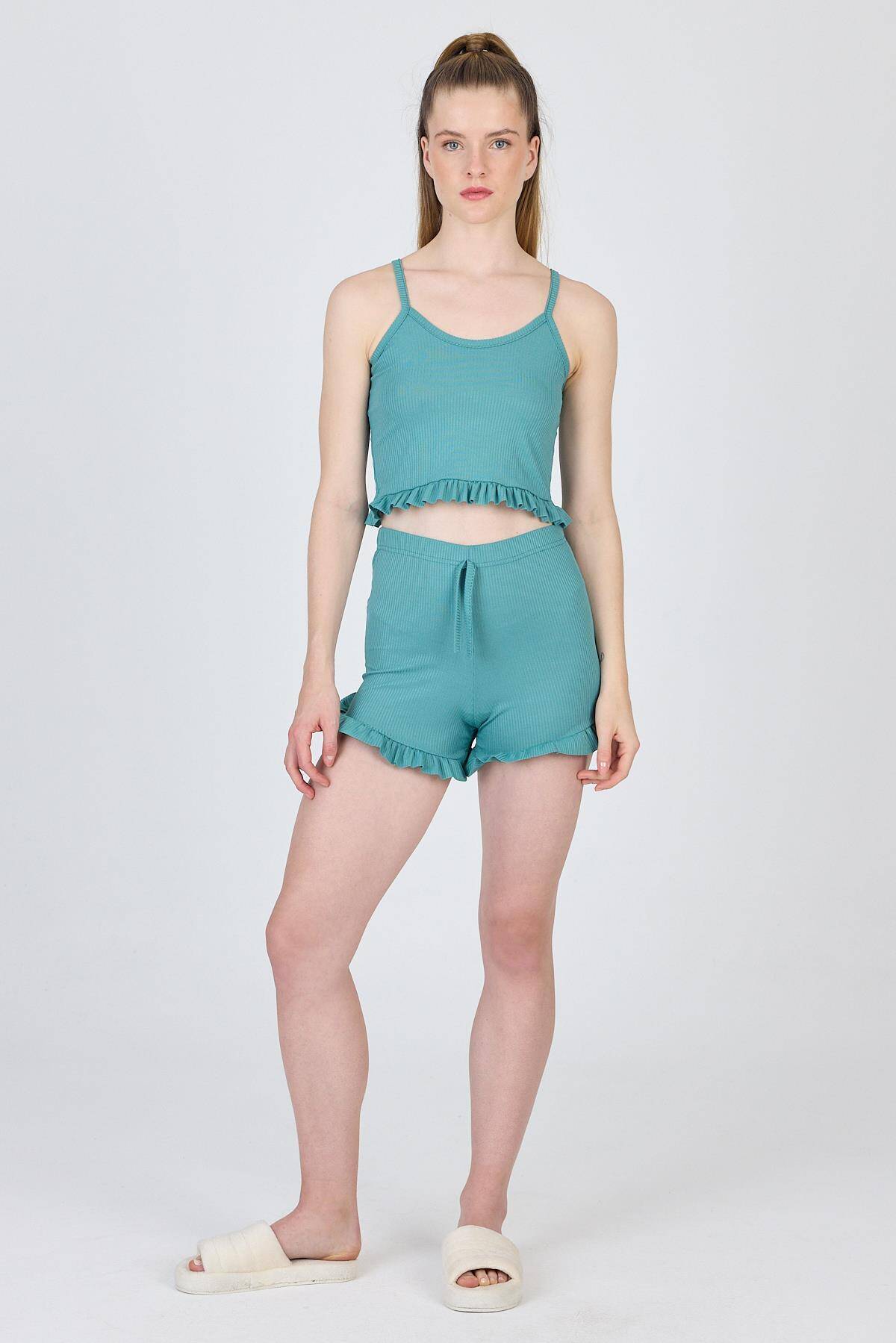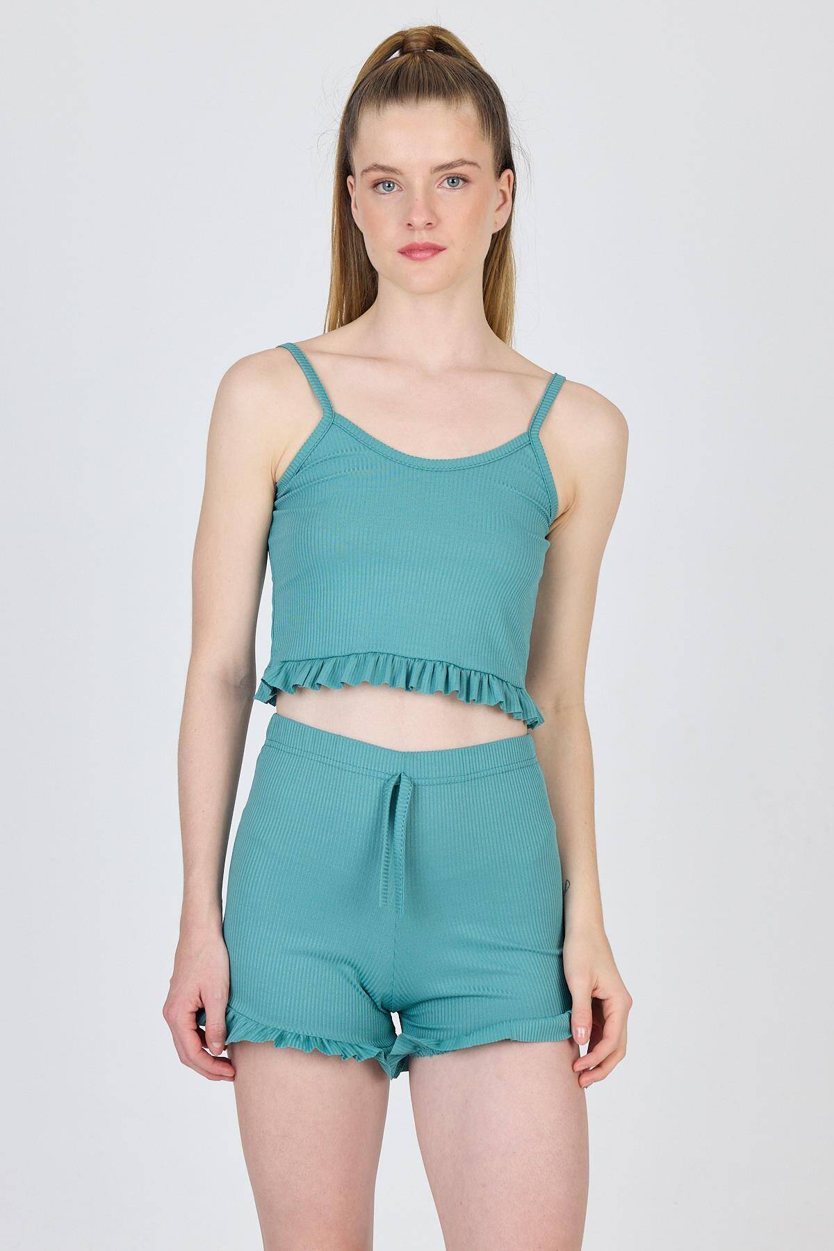 Yeşil İp Askılı Fırfırlı Şortlu Takım 0703